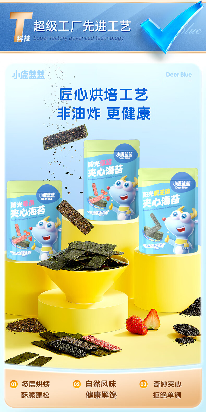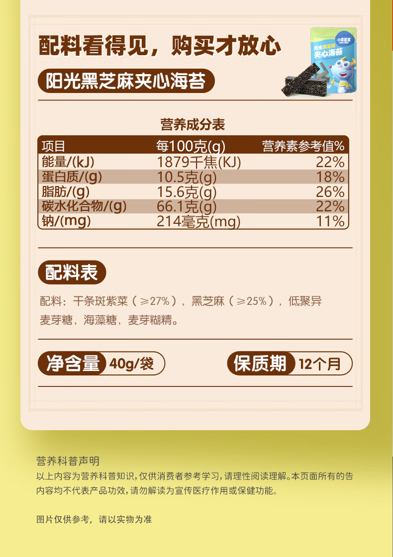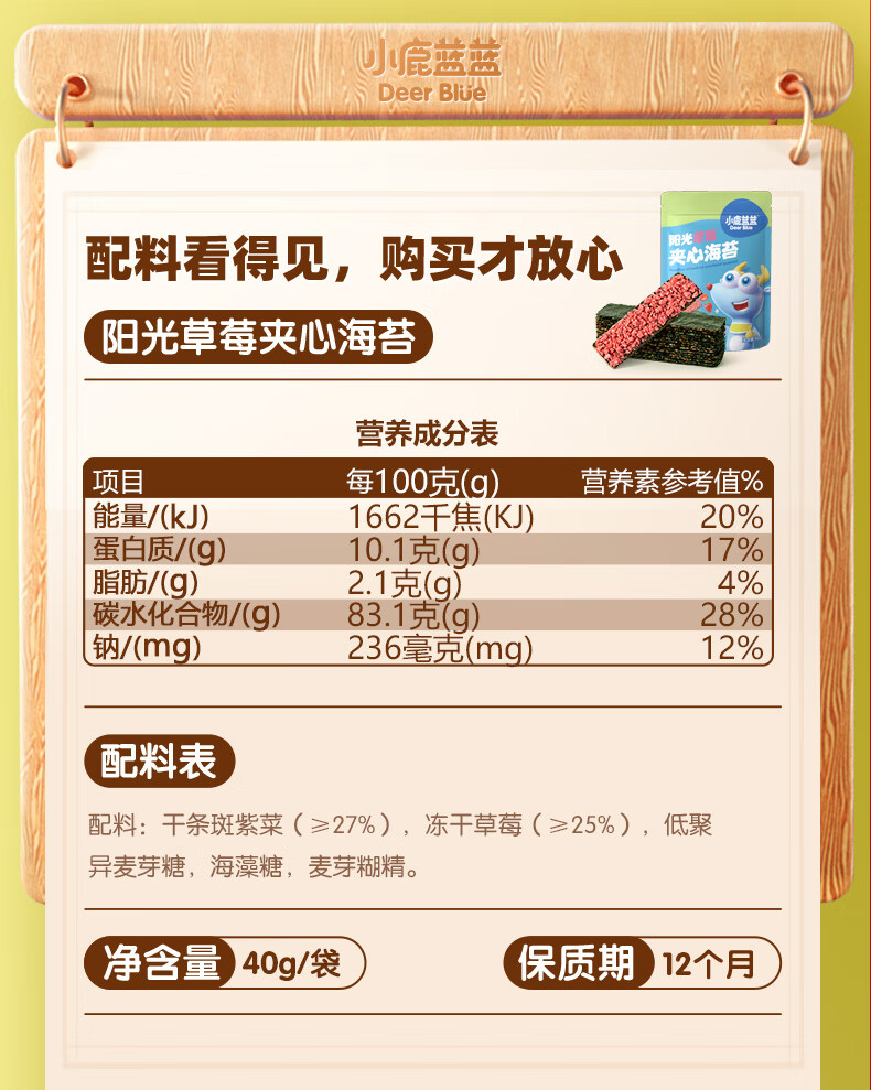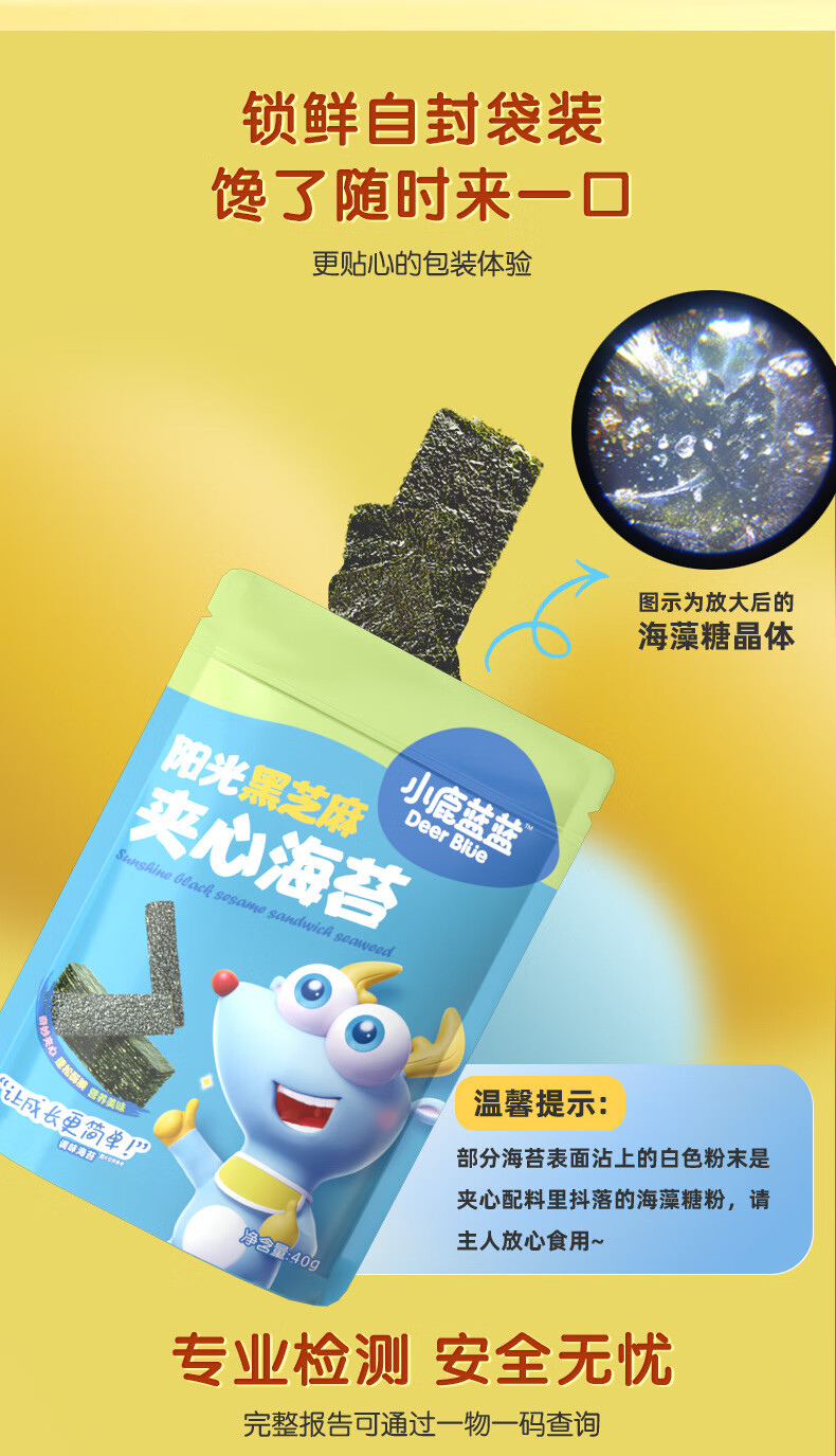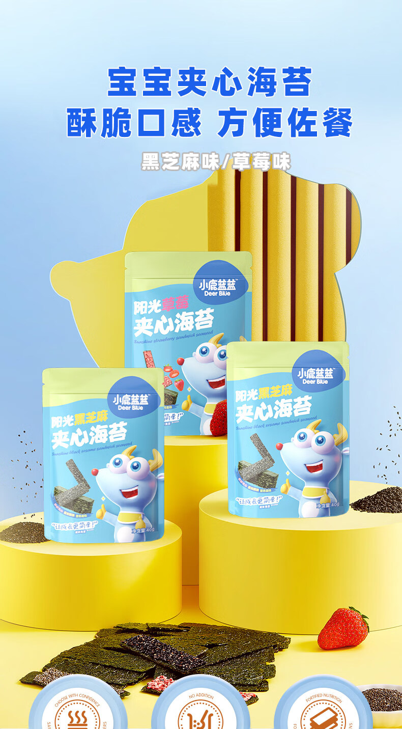 小鹿蓝蓝 高钙奶酪肉松夹心海苔脆 宝宝儿童零食肉松酥脆口感即食海苔30g
