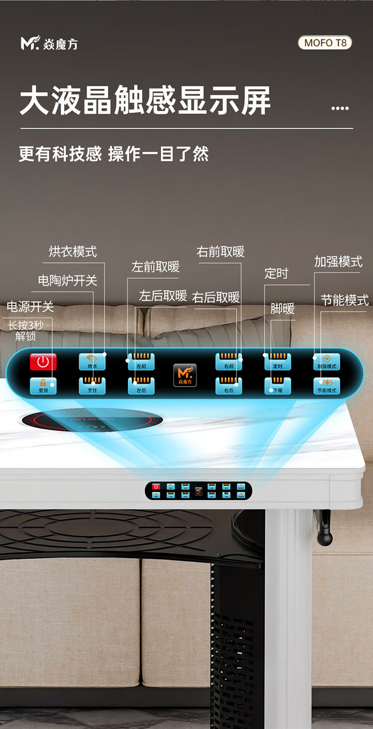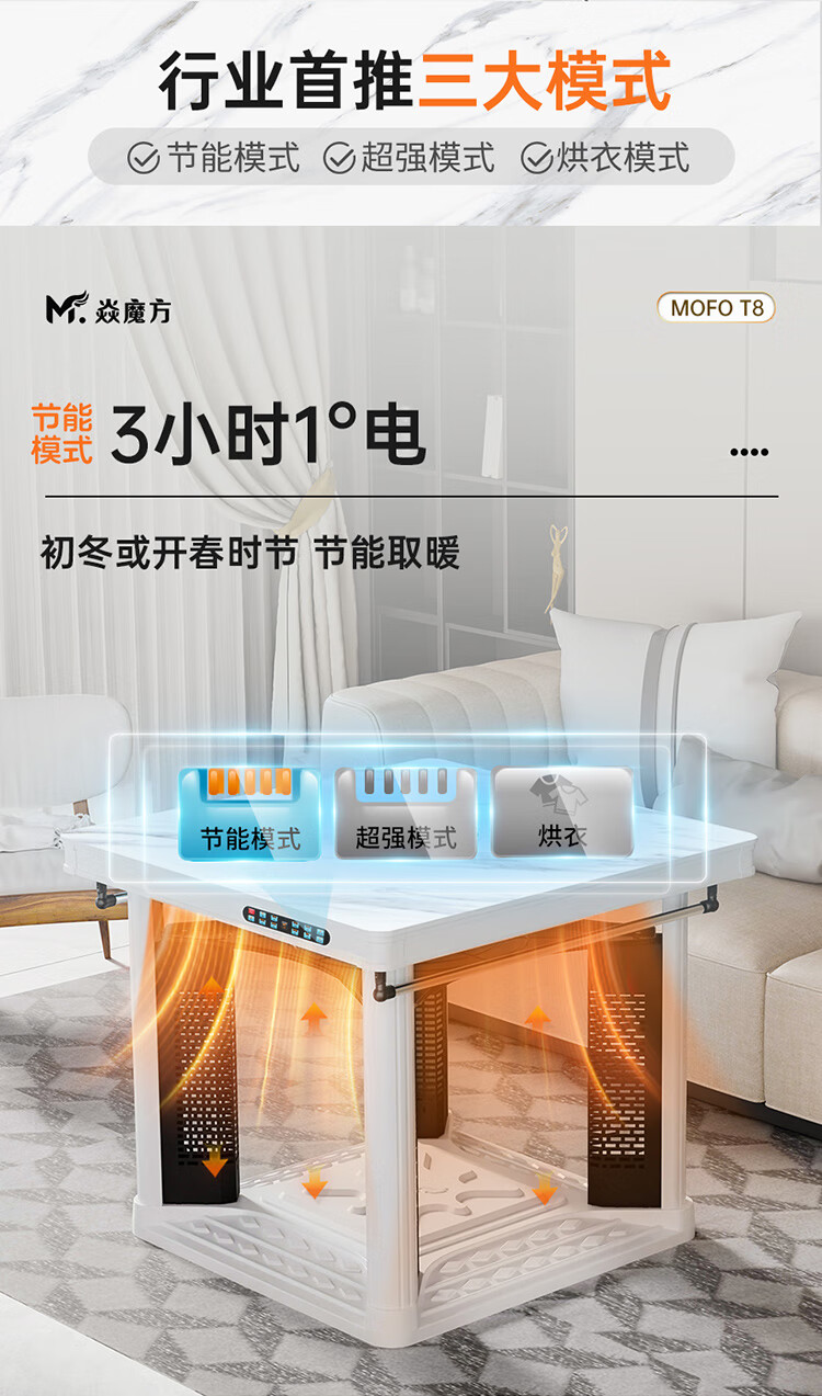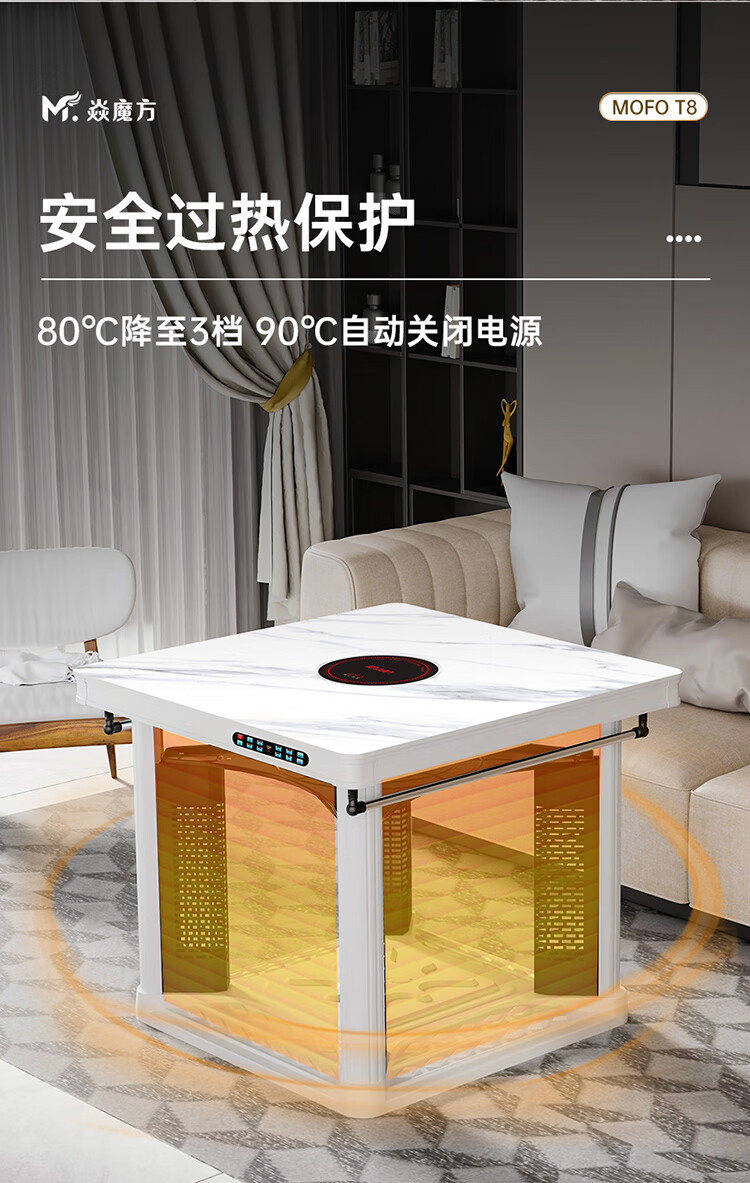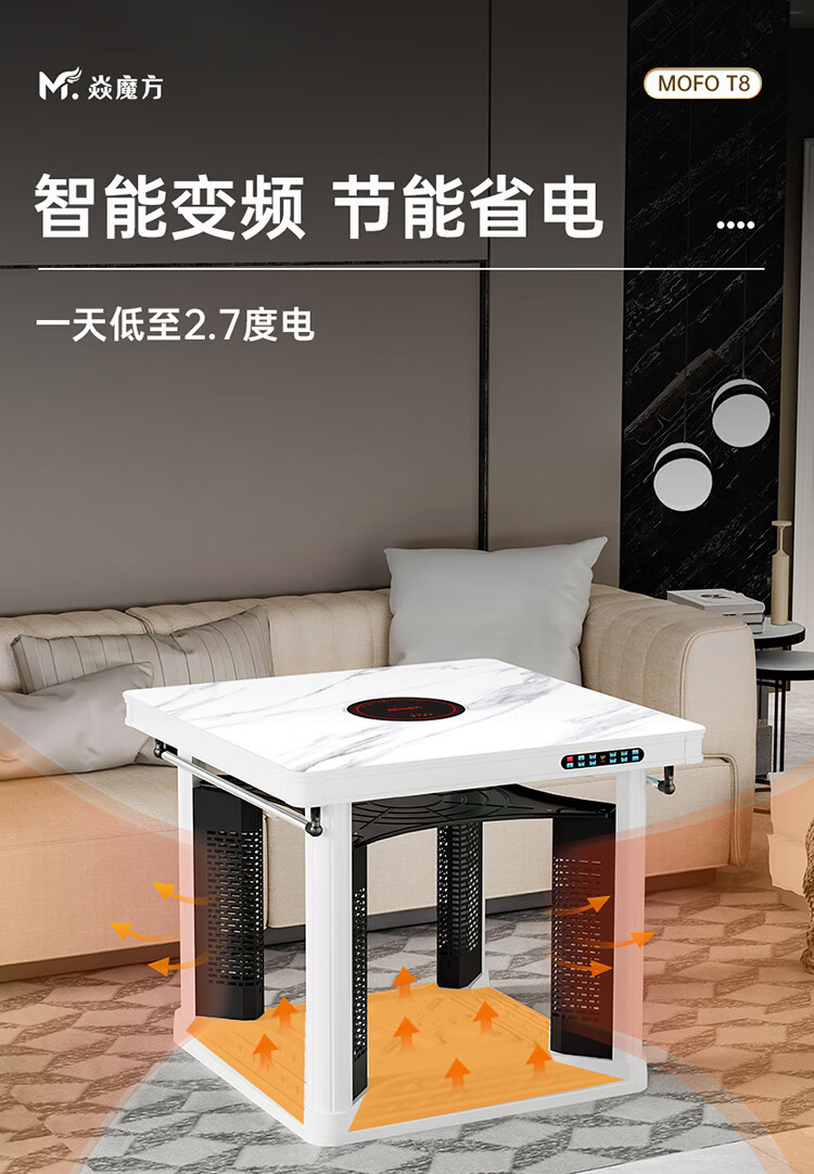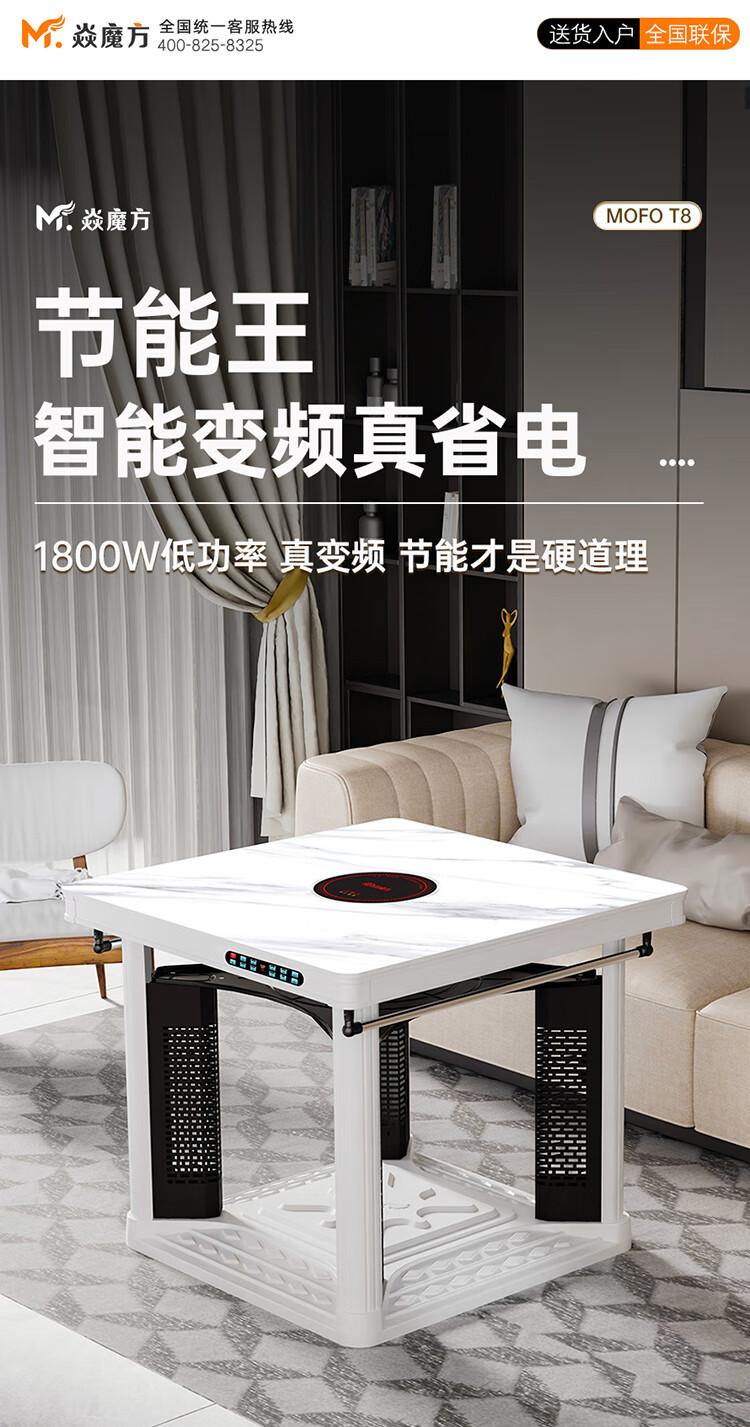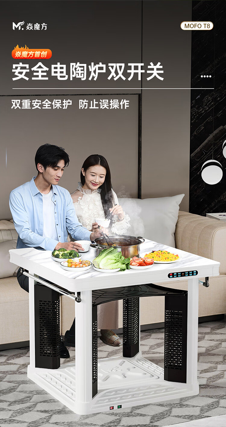 焱魔方25年新款电暖桌正方形电热桌电炉取暖桌烤火桌子家用多功能取暖器电烤桌升降电暖炉烤火炉取暖炉 80带烹饪 变频省电+双开关+超强节能烘衣