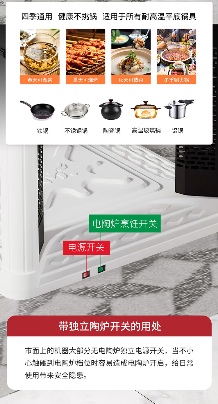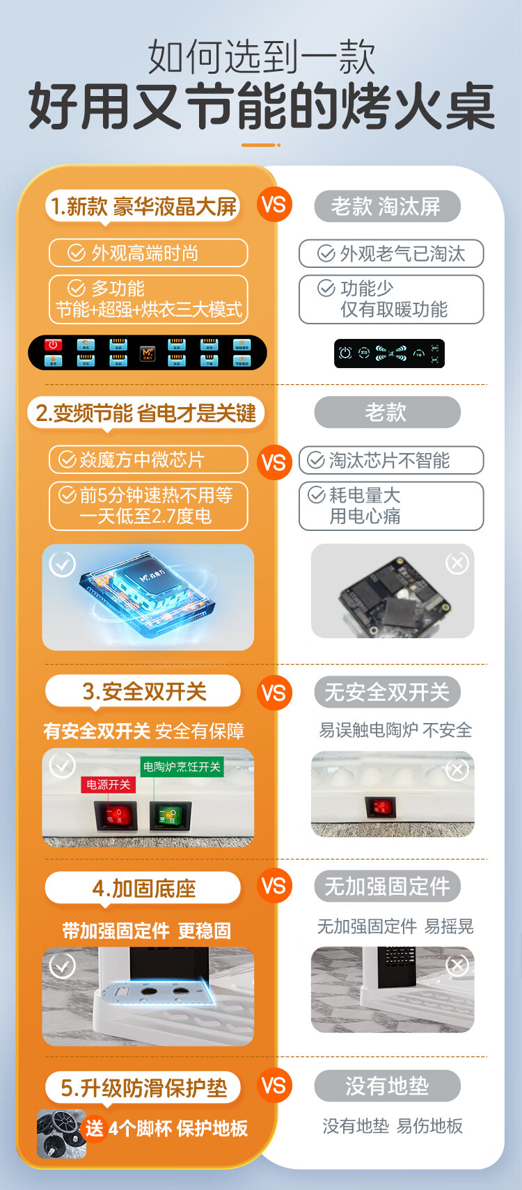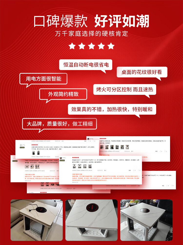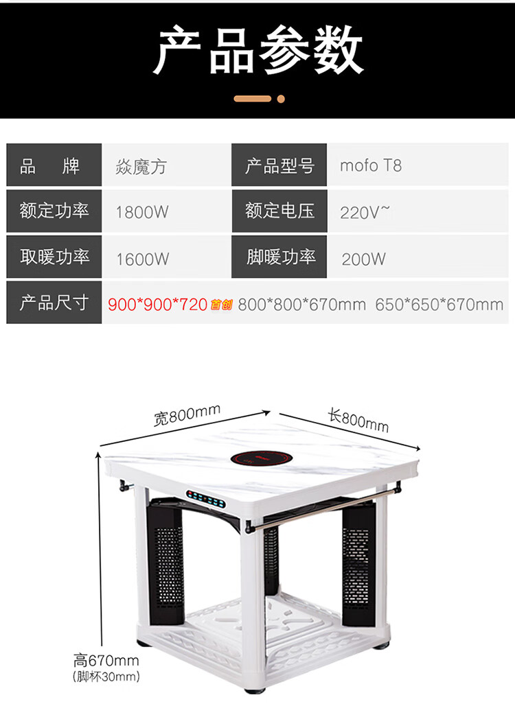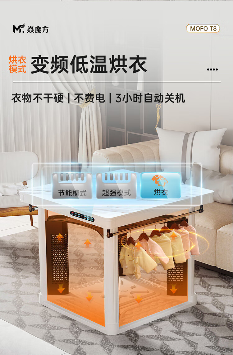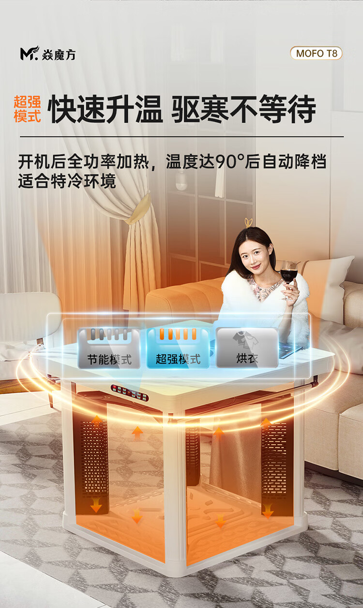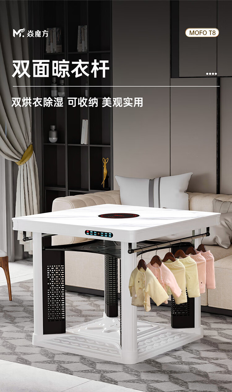 焱魔方25年新款电暖桌正方形电热桌电炉取暖桌烤火桌子家用多功能取暖器电烤桌升降电暖炉烤火炉取暖炉 80带烹饪 变频省电+双开关+超强节能烘衣