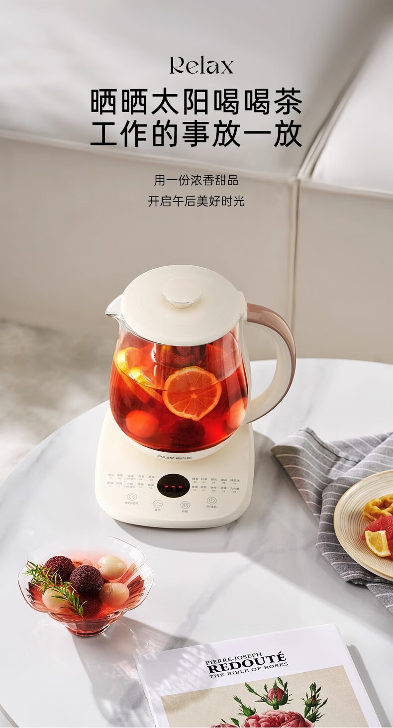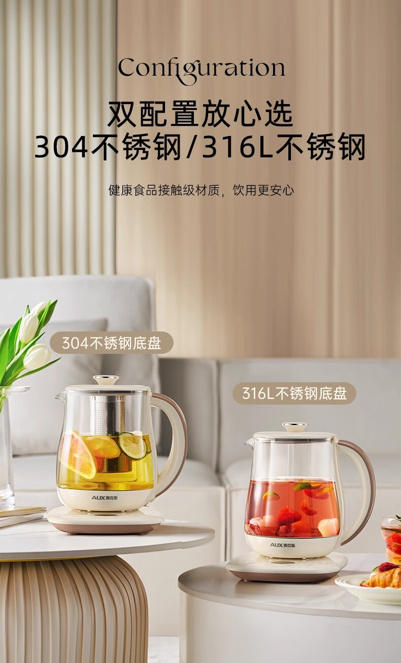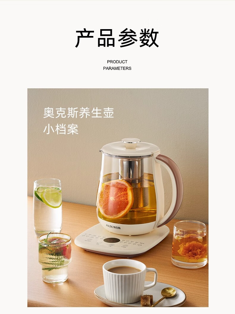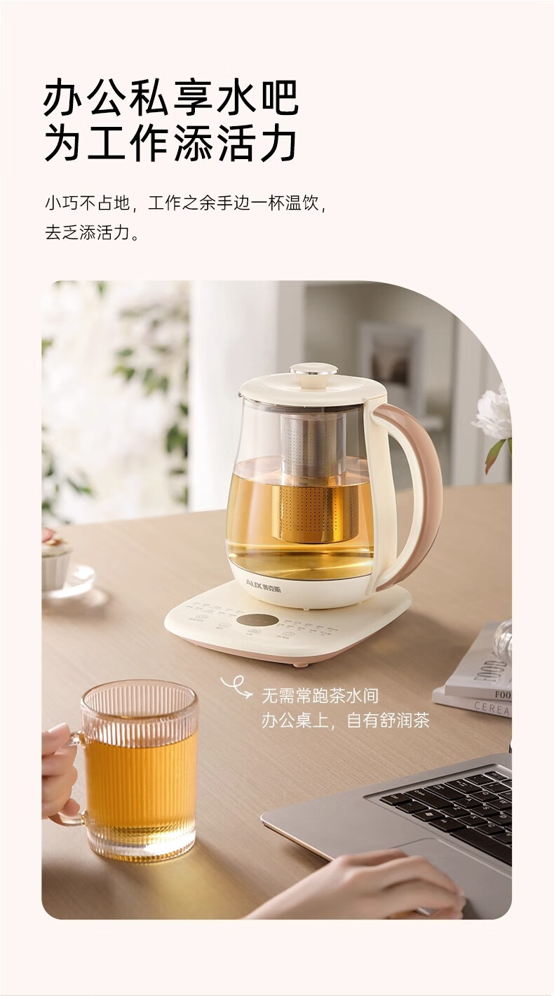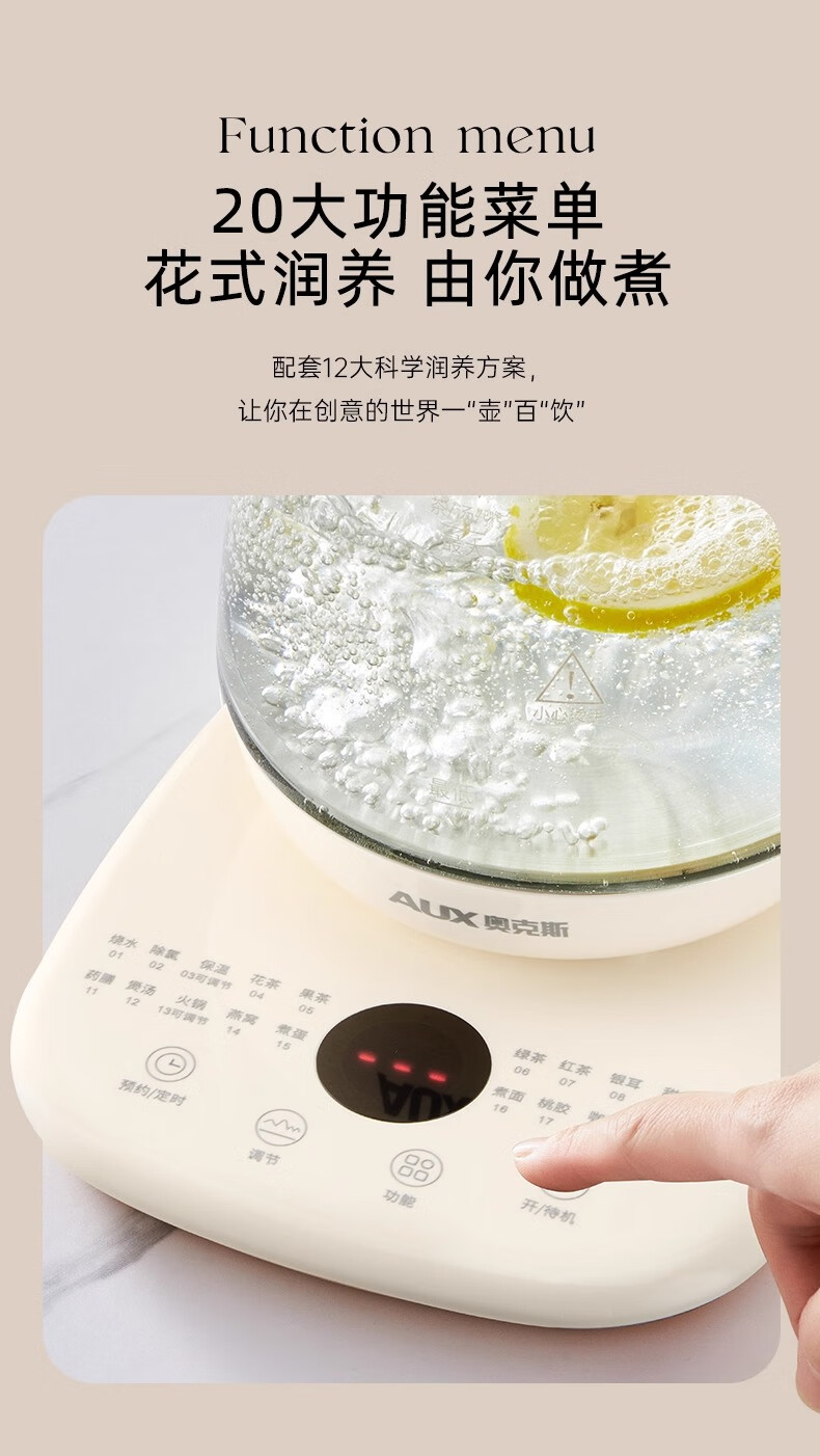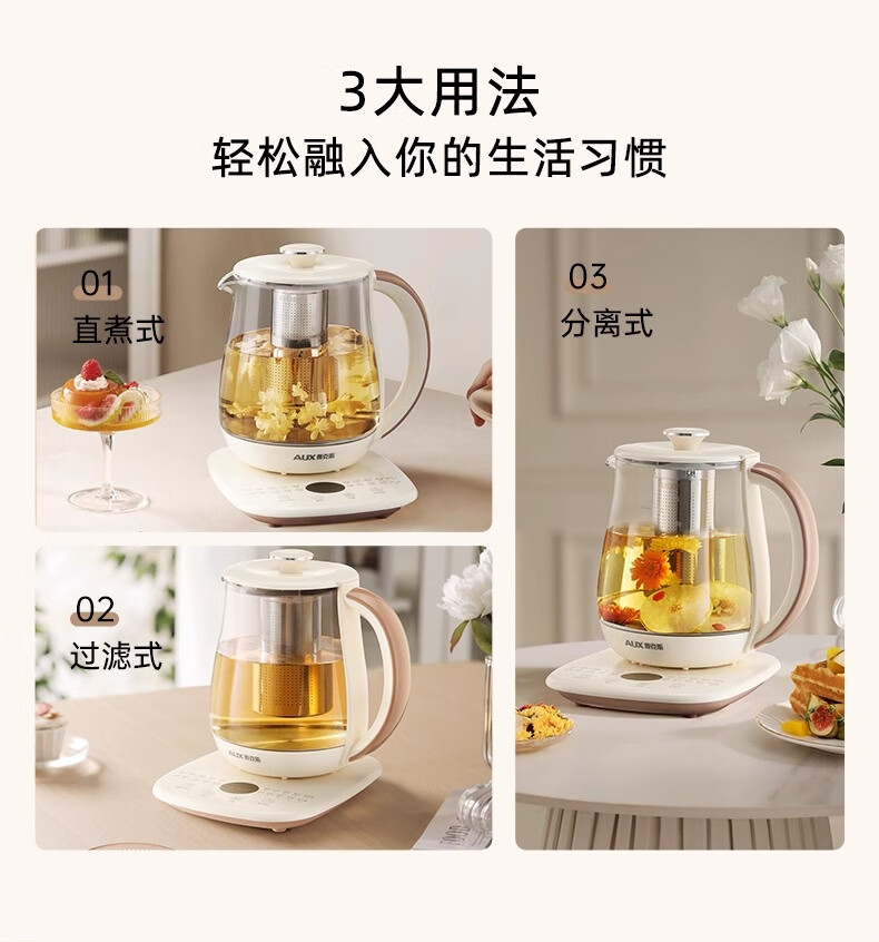 奥克斯(AUX)养生壶全自动1.5L家用煮茶壶24h预约烧水壶办公室多功能48小时智能恒温花茶壶煮茶器304底盘