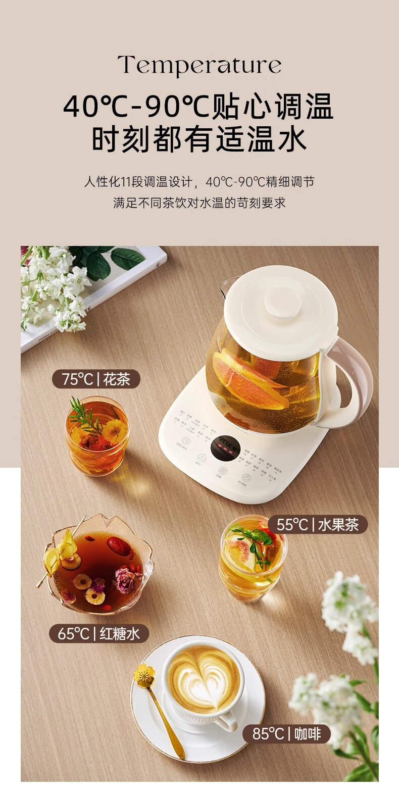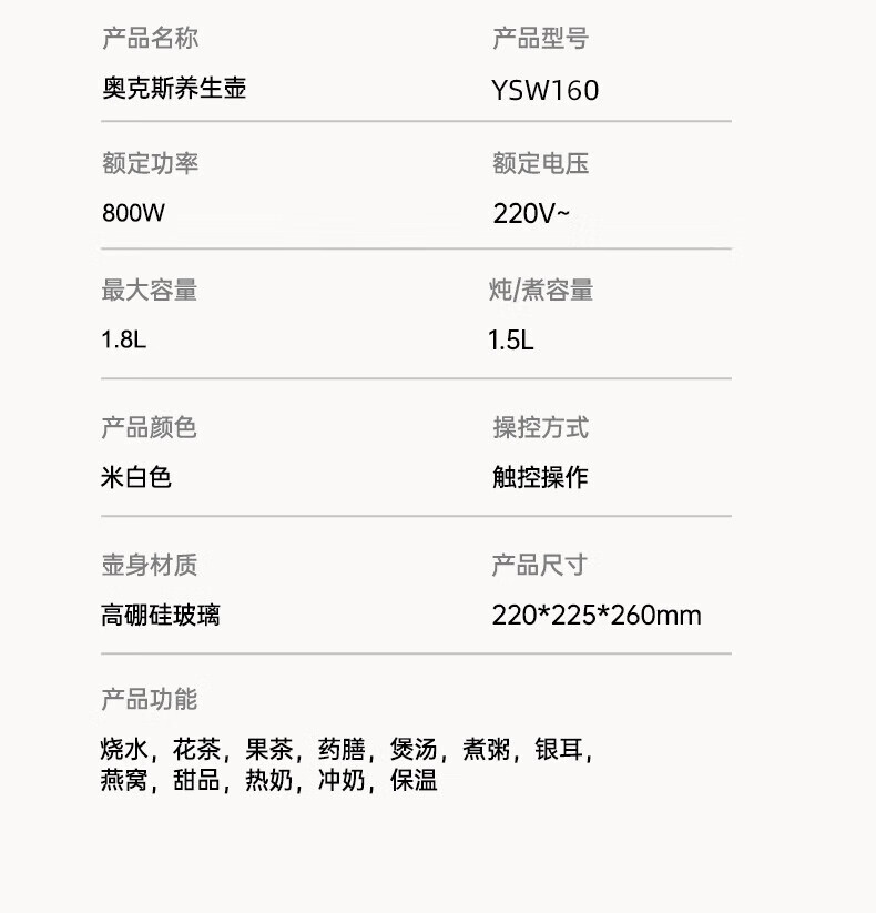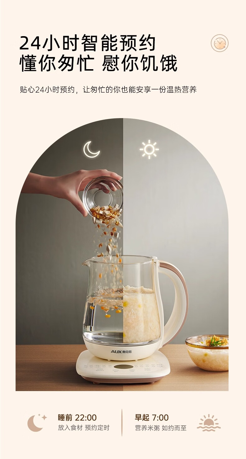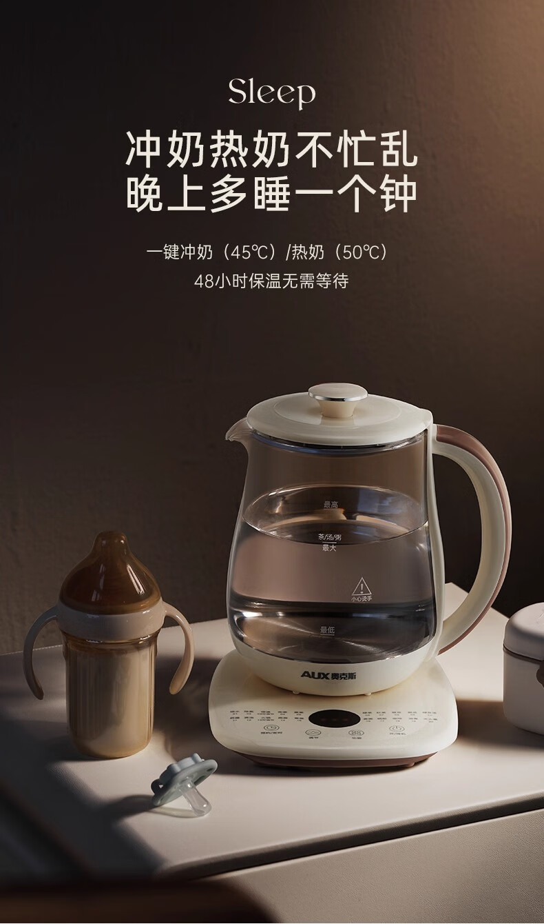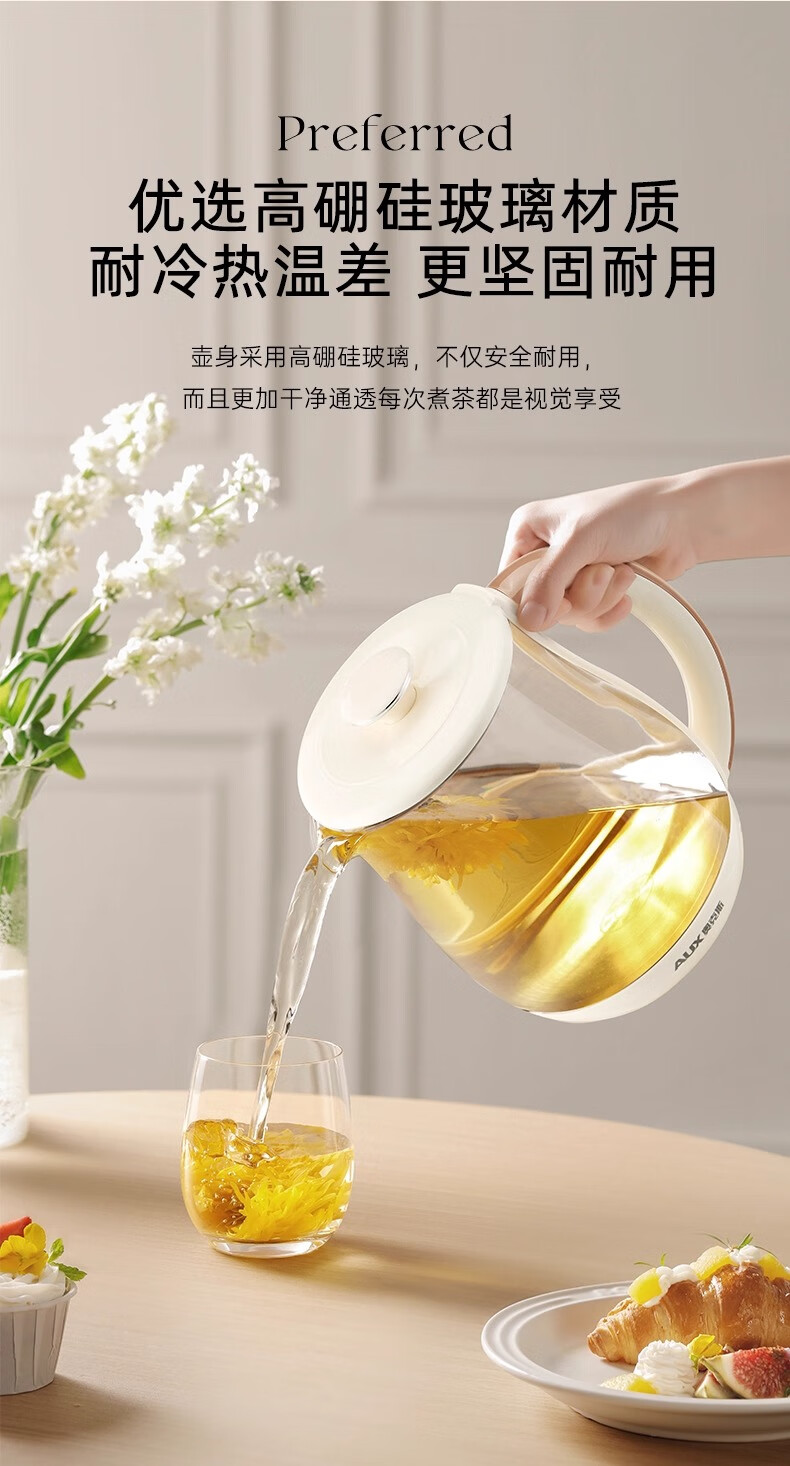 奥克斯(AUX)养生壶全自动1.5L家用煮茶壶24h预约烧水壶办公室多功能48小时智能恒温花茶壶煮茶器304底盘