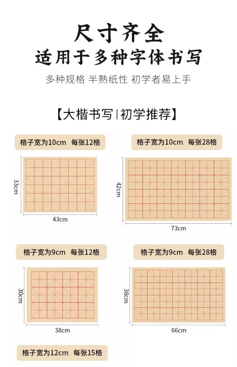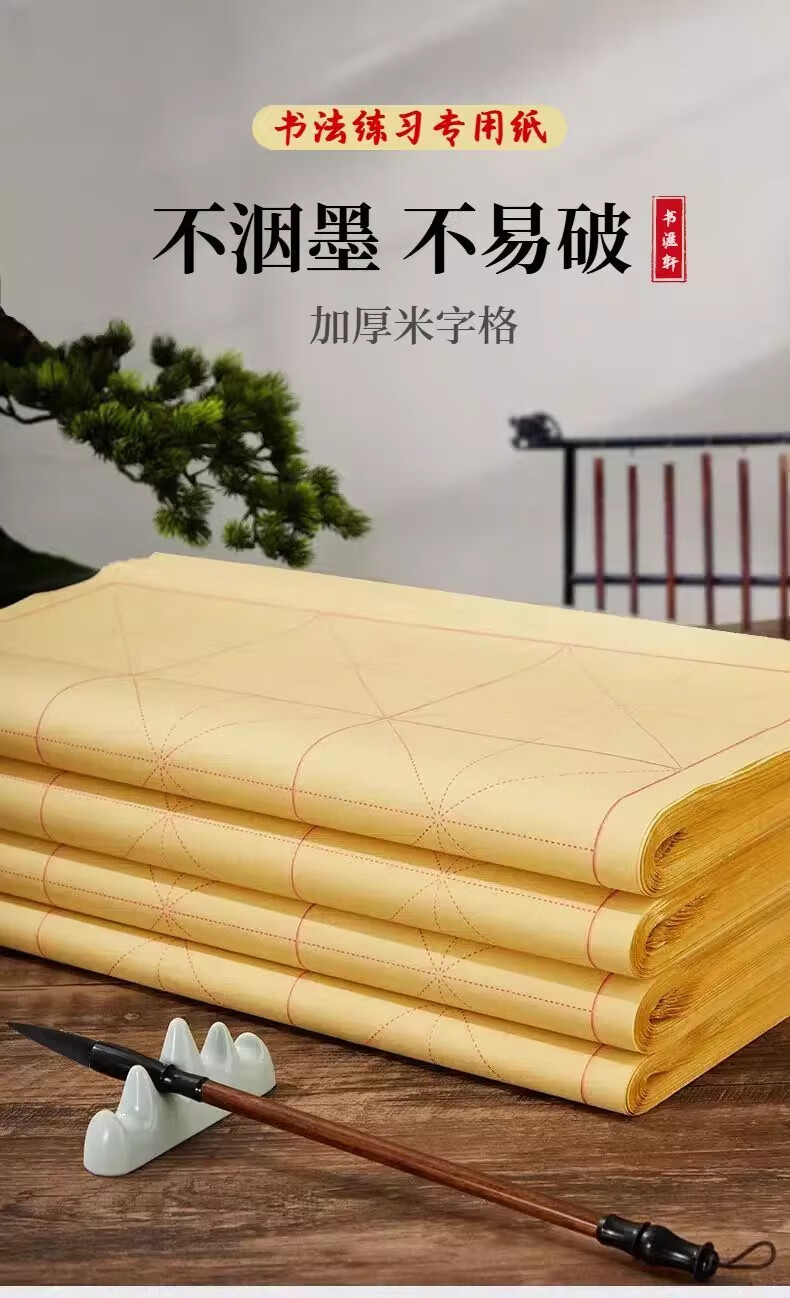书涯轩 书画宣纸 毛边纸 书法练习专用写毛笔字仿古竹浆米字格作品 竹浆毛边米字格8cm*20/70张