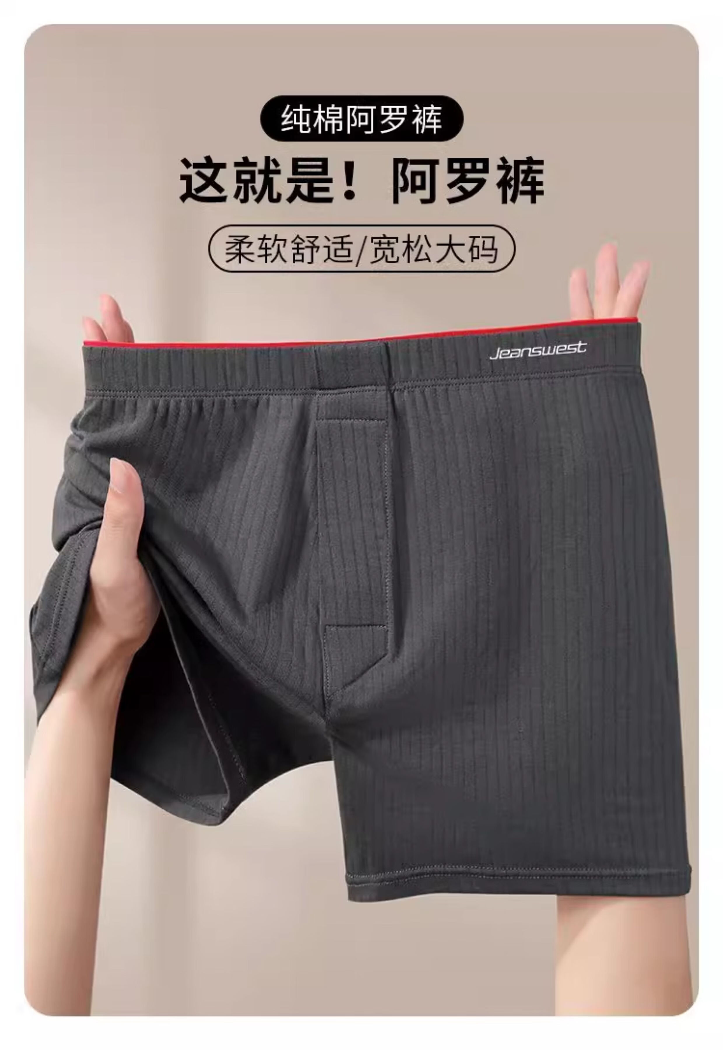 真维斯男士阿罗裤纯棉大码青少年内裤男生平角四角短裤衩宽松新款 浅灰+深灰+宝蓝+黑色 3XL 140-160斤