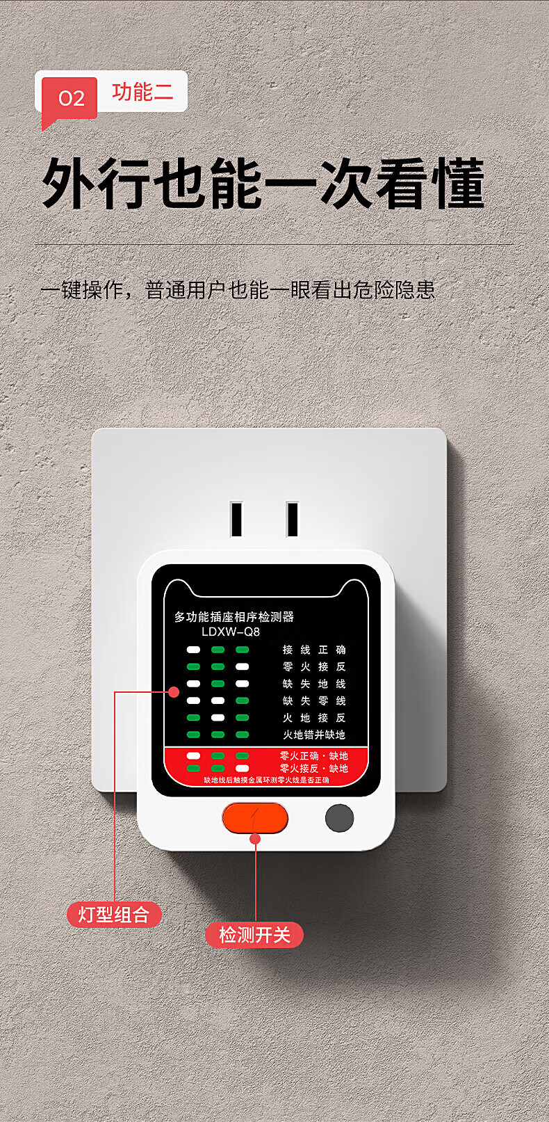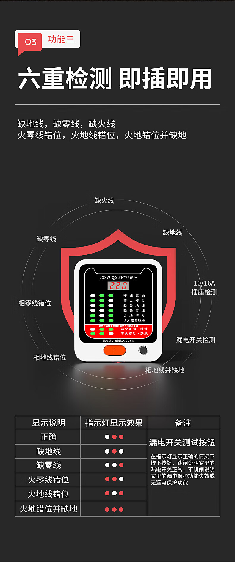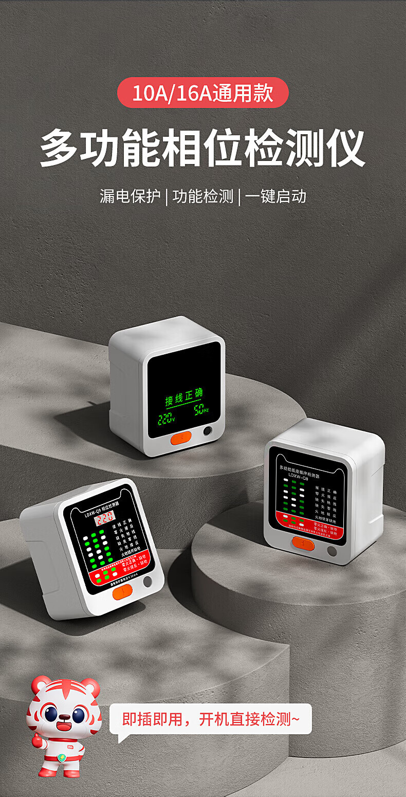 国际电工智能数显漏电相位检测仪10A/16A通用多功能线路电源性验电工 特惠款-相位检测仪