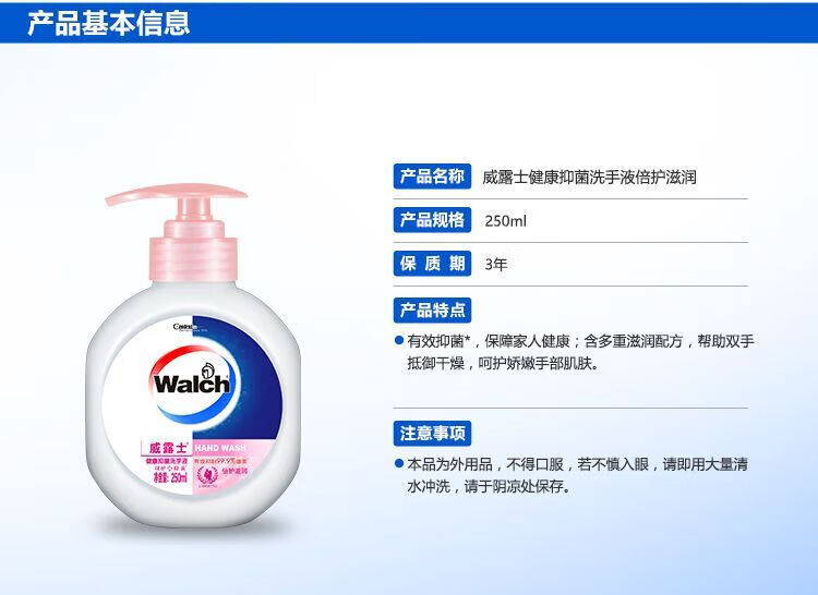 Walch威露士洗手液倍护滋润250ml2瓶抑菌99.9%呵护双手学生开学宿舍装T 倍护滋润250ml*2瓶