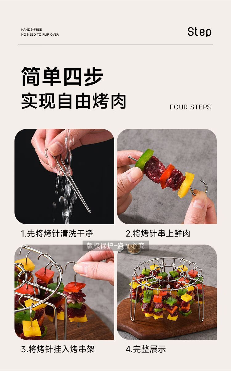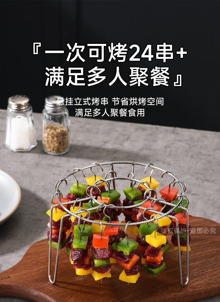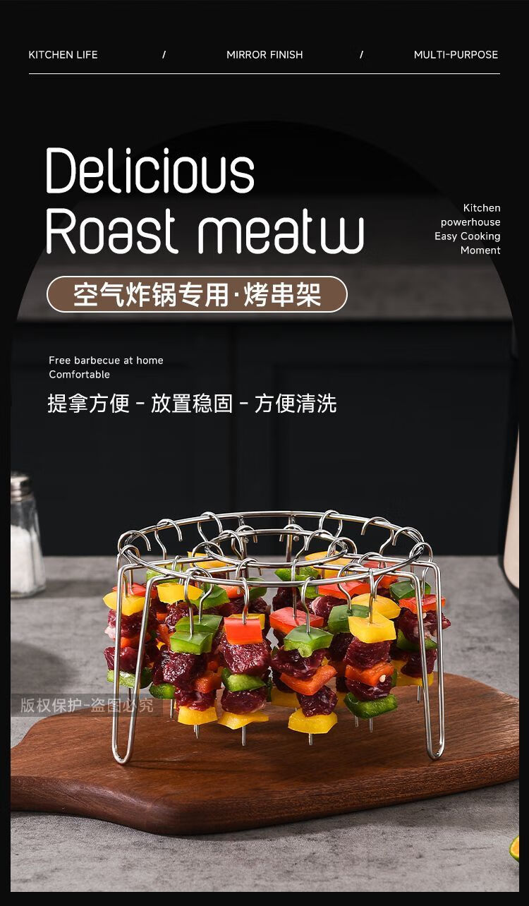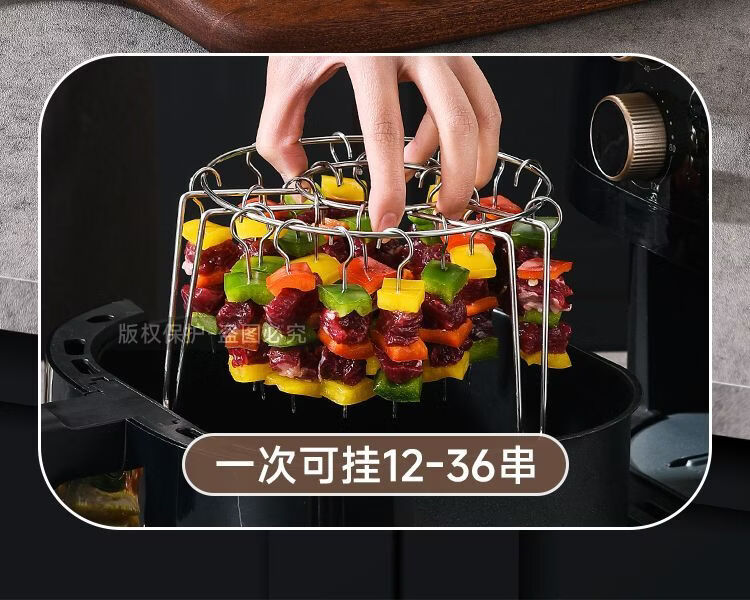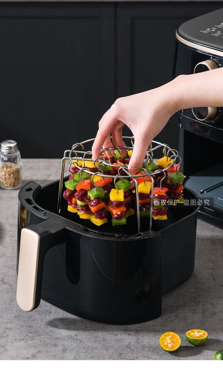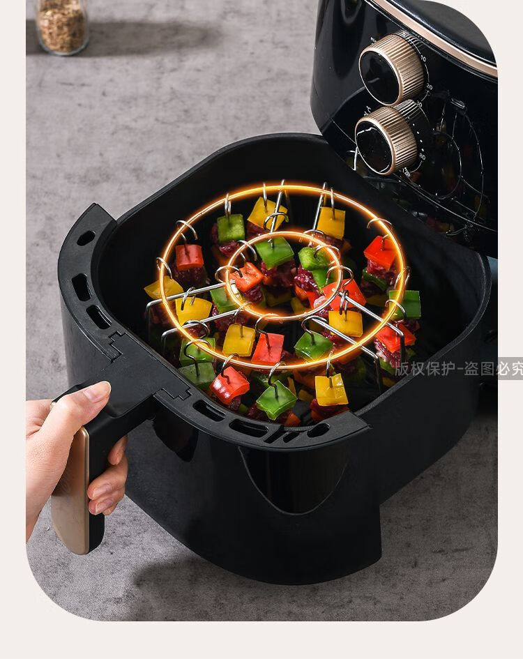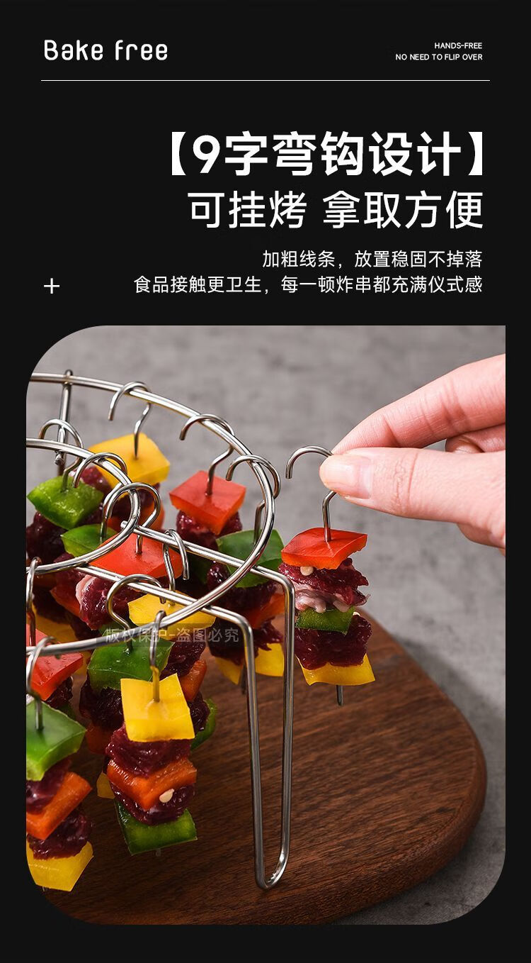 简漾【烤60串】空气炸锅新款专用烧烤架圆形吊挂烤串家庭厨房户外用 圆形烤架1个+12支烤针