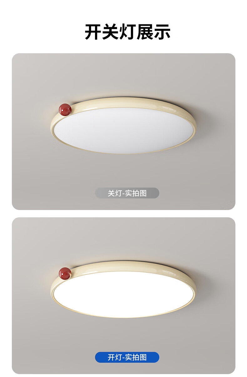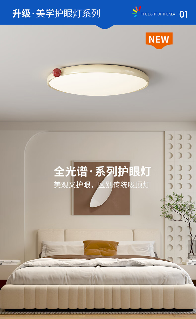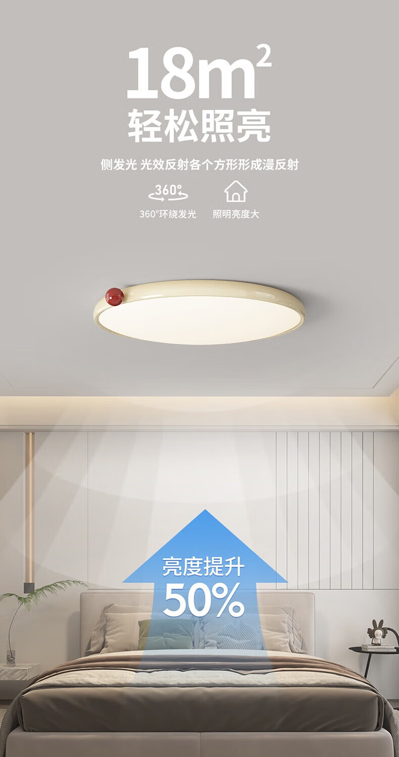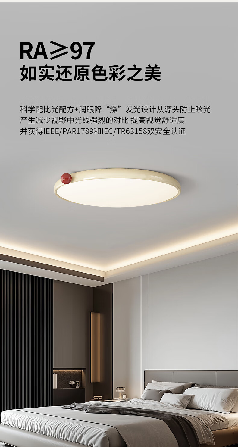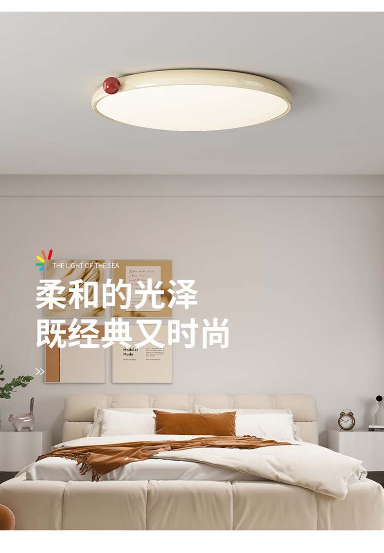 源氏木语全光谱奶油风卧室吸顶灯儿童房温馨护眼灯侘寂风超薄主卧小奶豆灯 40CM全光谱护眼高亮-三色变光