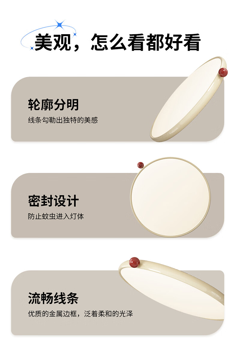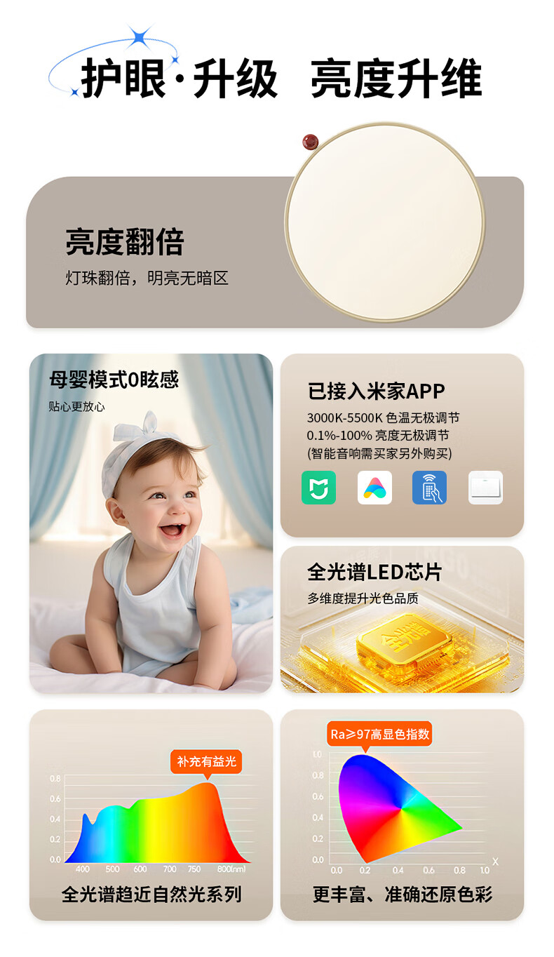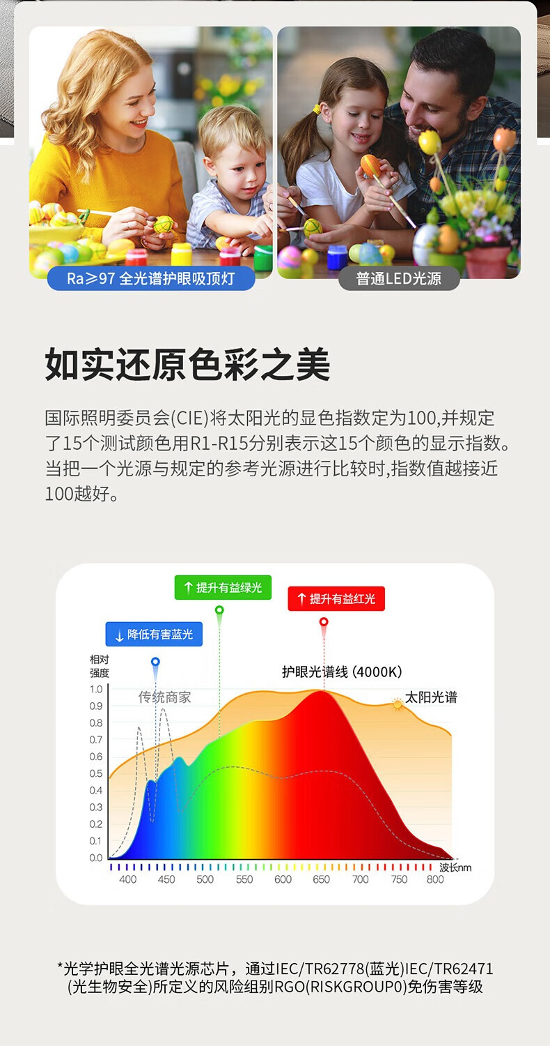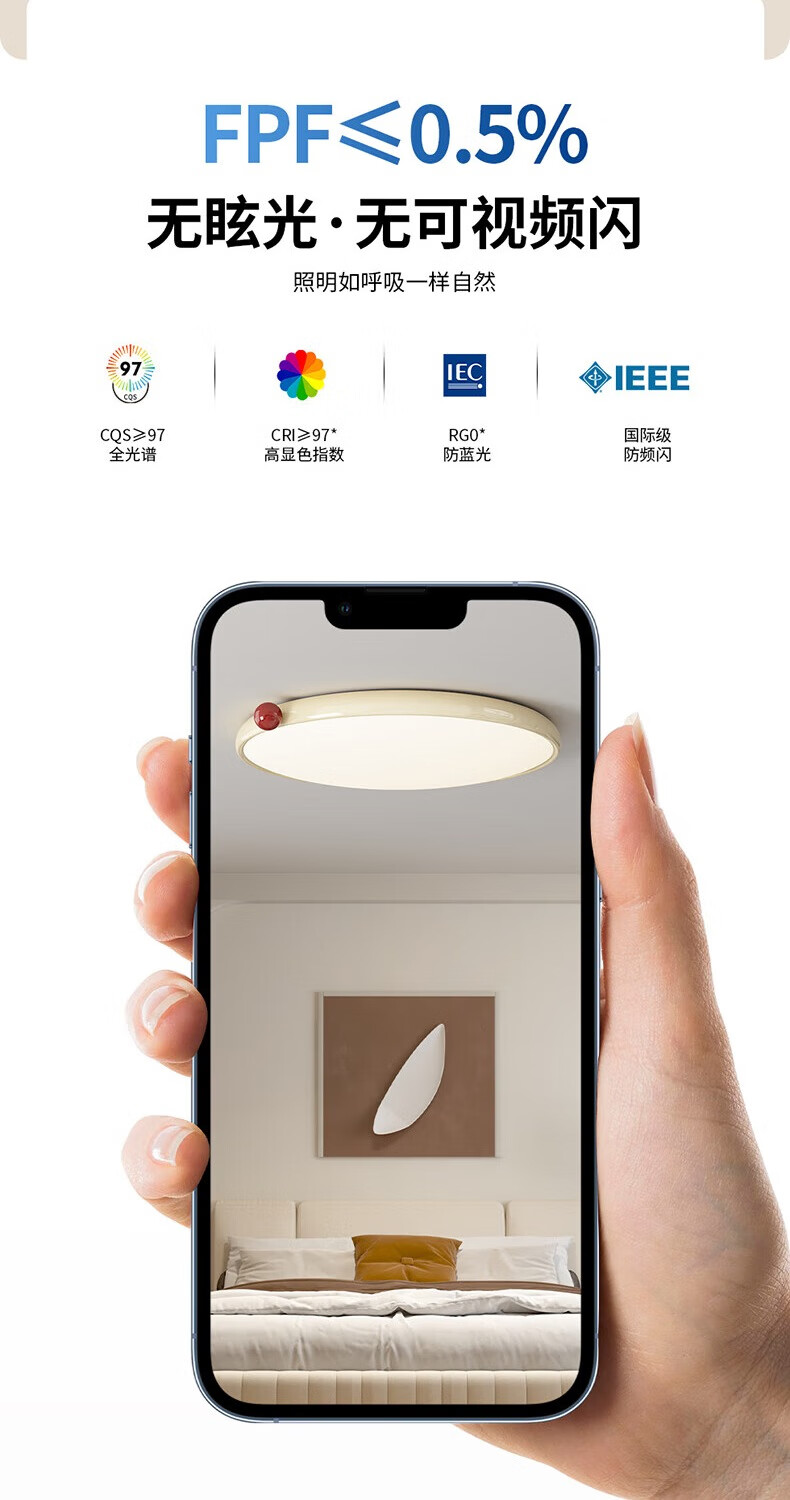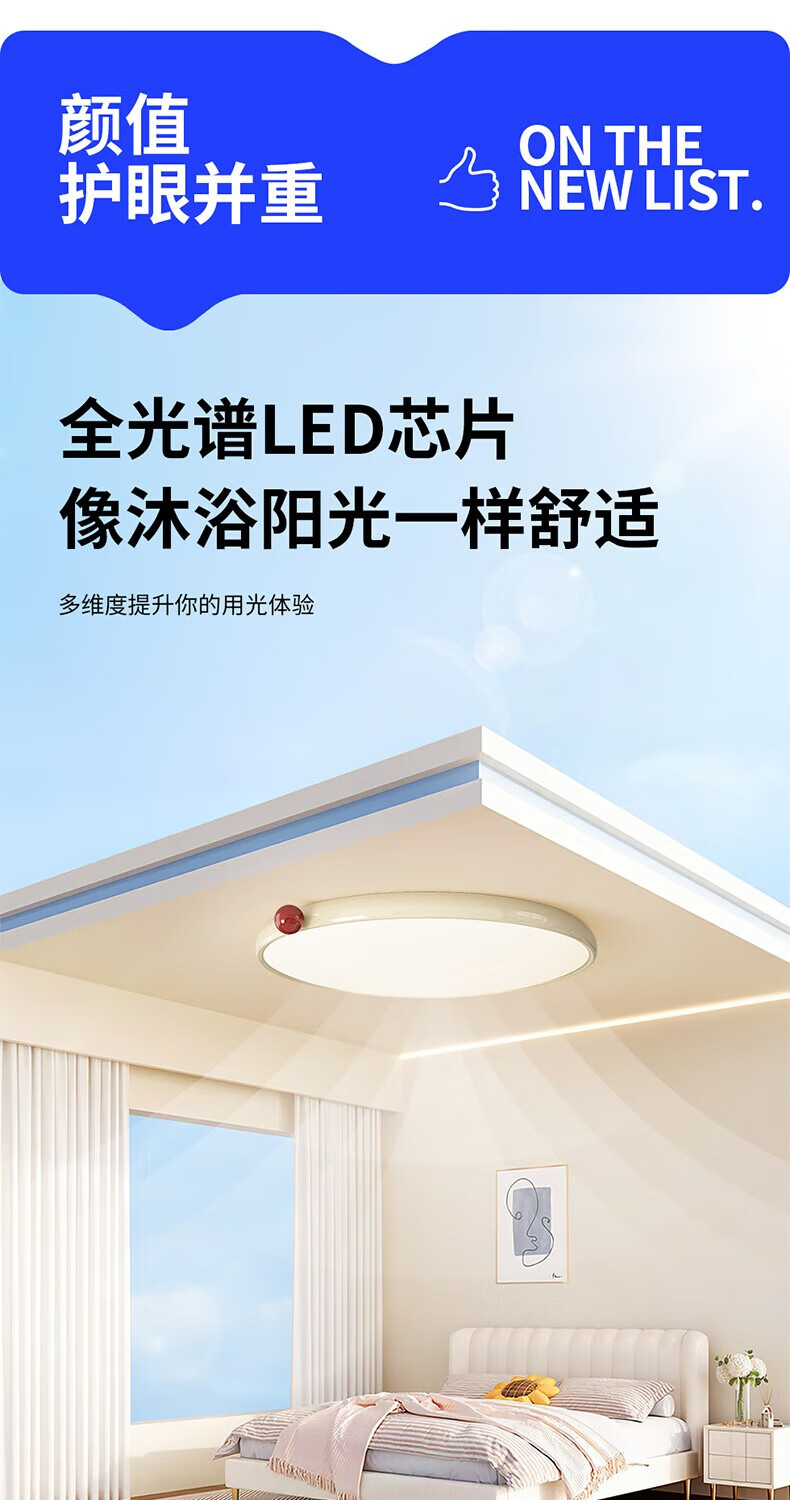 源氏木语全光谱奶油风卧室吸顶灯儿童房温馨护眼灯侘寂风超薄主卧小奶豆灯 40CM全光谱护眼高亮-三色变光