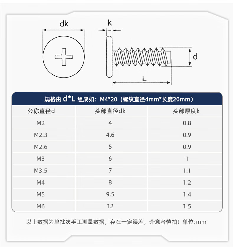 天卓五金304不锈钢CB扁平头十字平尾自攻螺丝薄头平头螺钉M2M3M4M5M6mm M2*3*4头-500个304
