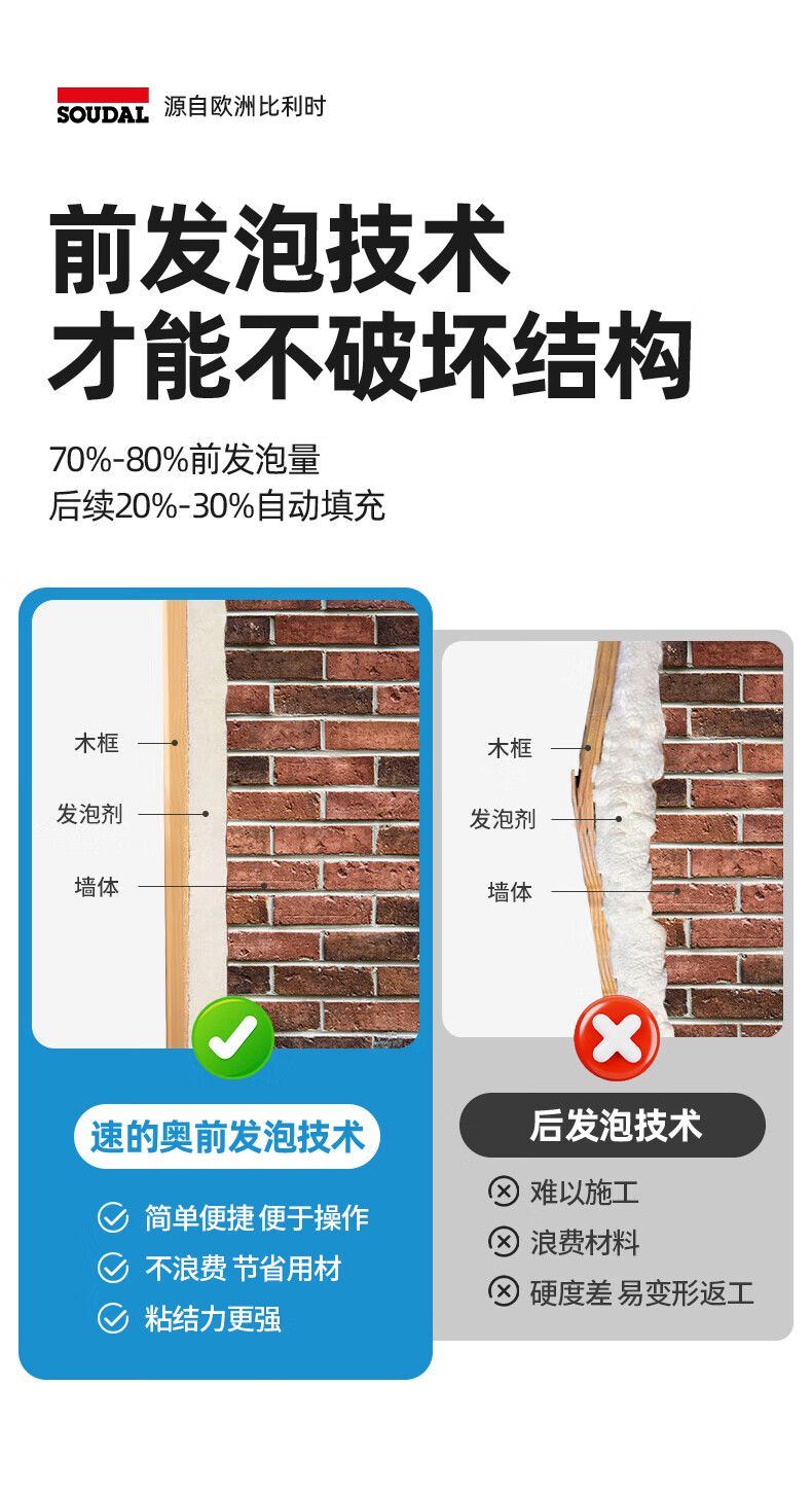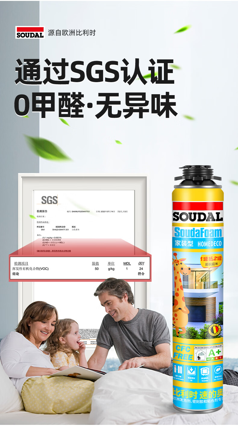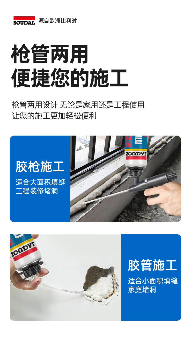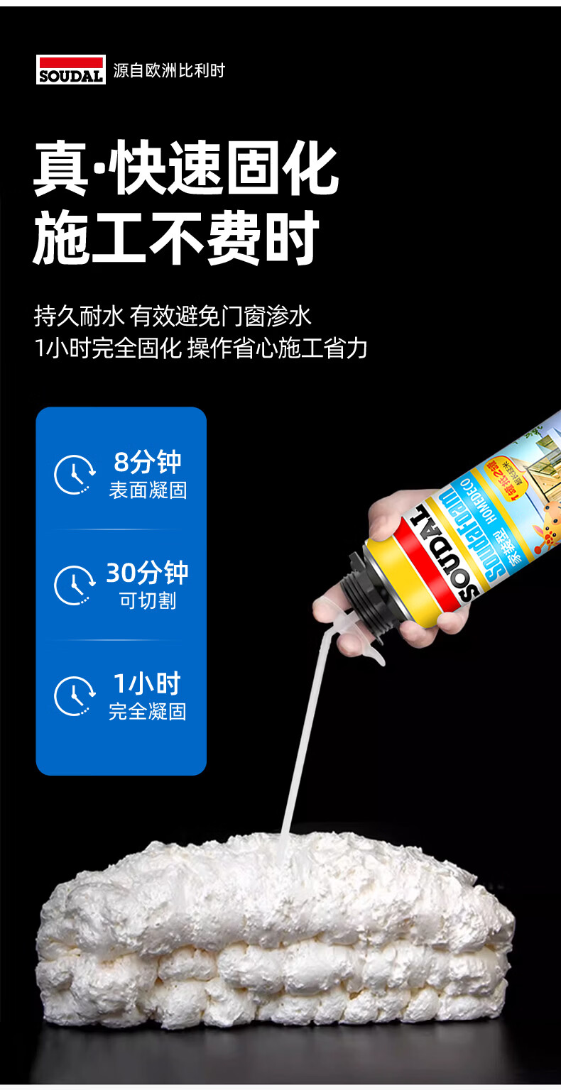 速的奥(SOUDAL)长颈鹿发泡胶隔热隔音聚氨酯喷涂粘结泡沫填充堵缝剂 A1质量 1000g/瓶 大容量·1瓶 比利时皇家指定品牌