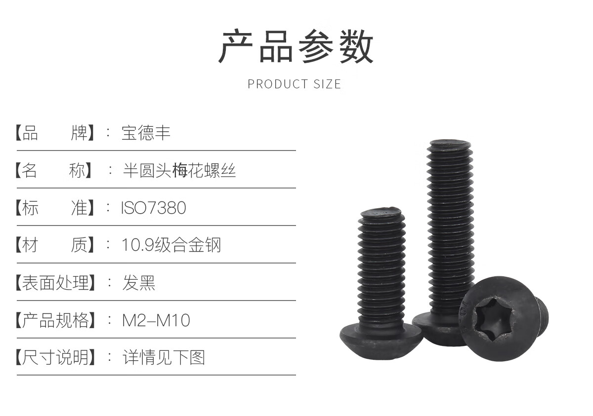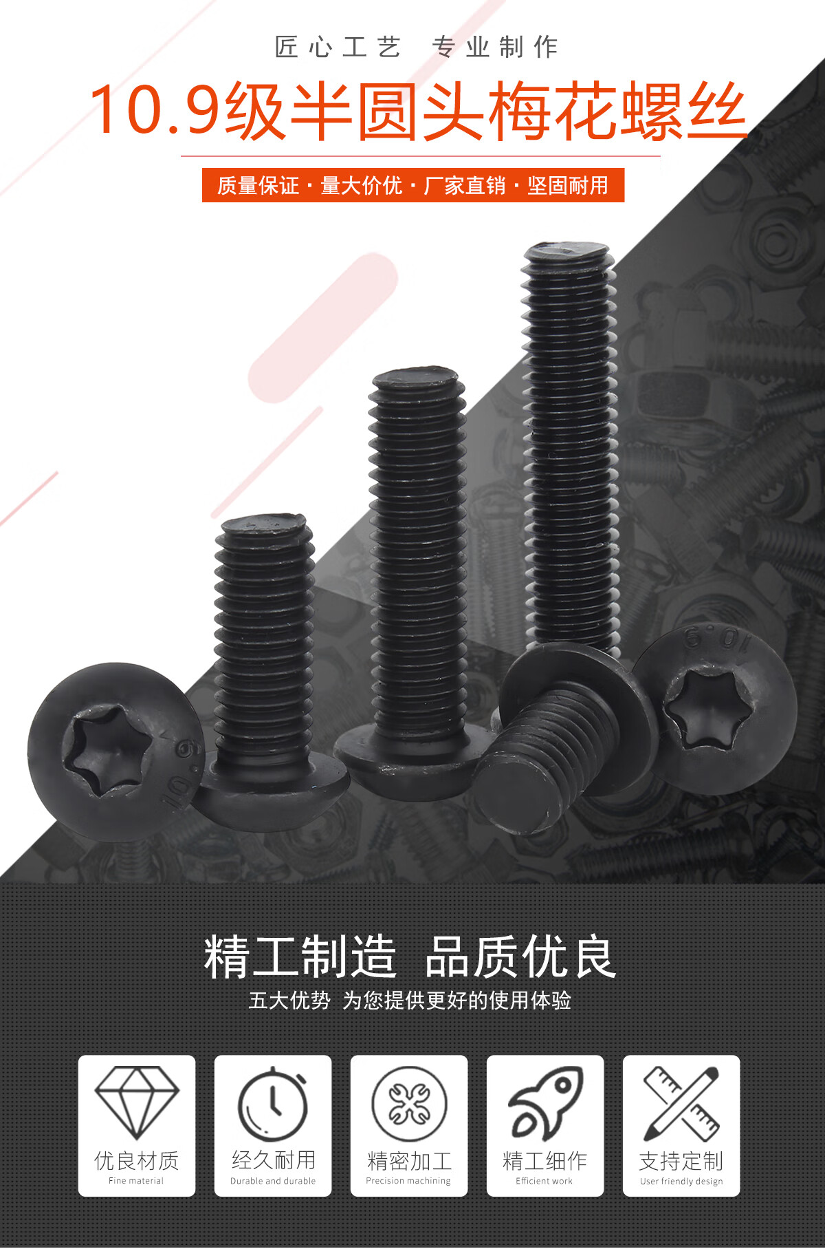 宝德丰10.9级防盗螺丝高强度梅花孔半圆头盘头内六角螺钉圆杯M5M6M8M10 M2x3(200只)