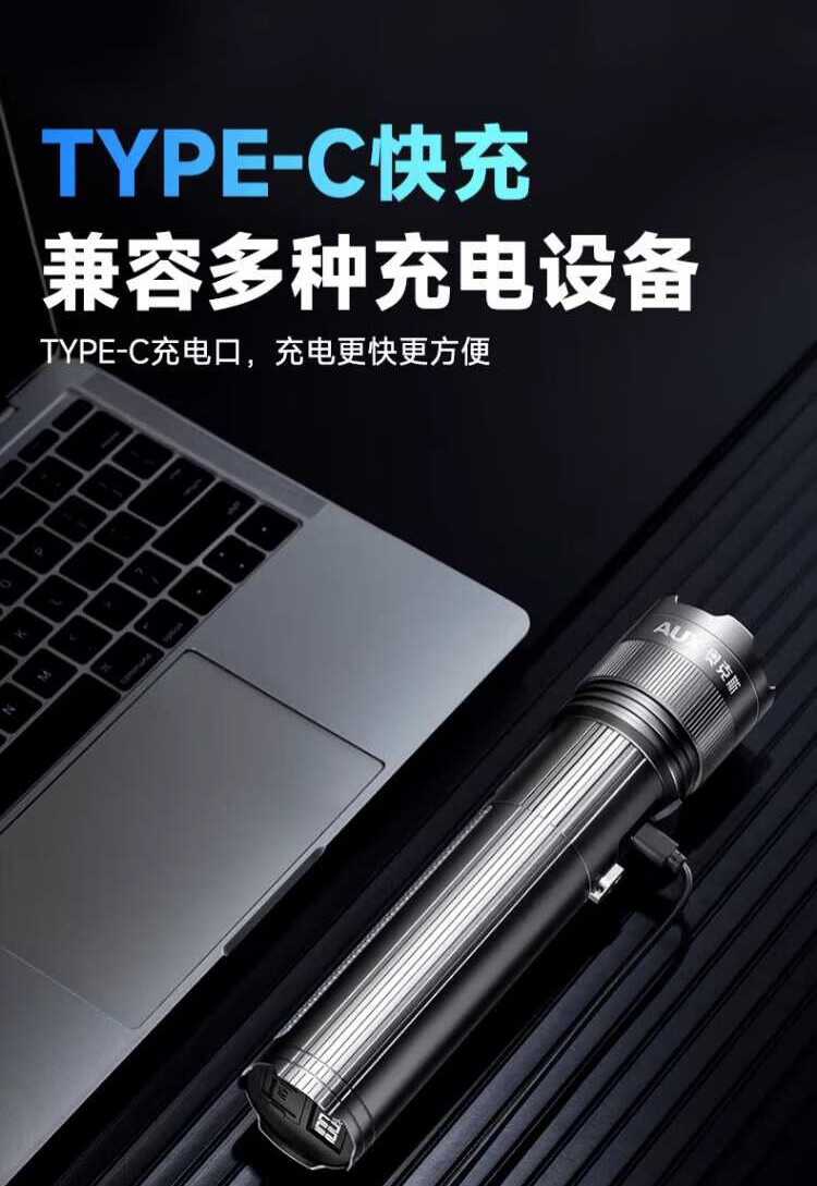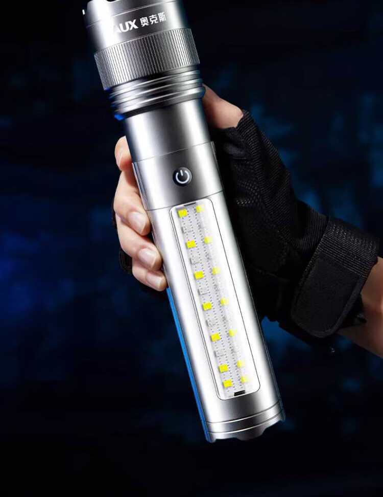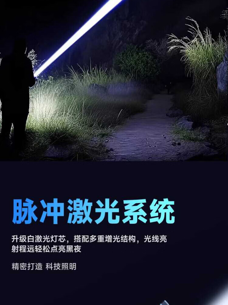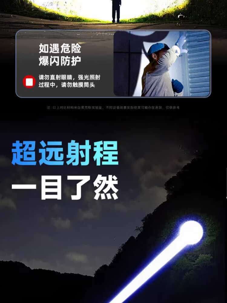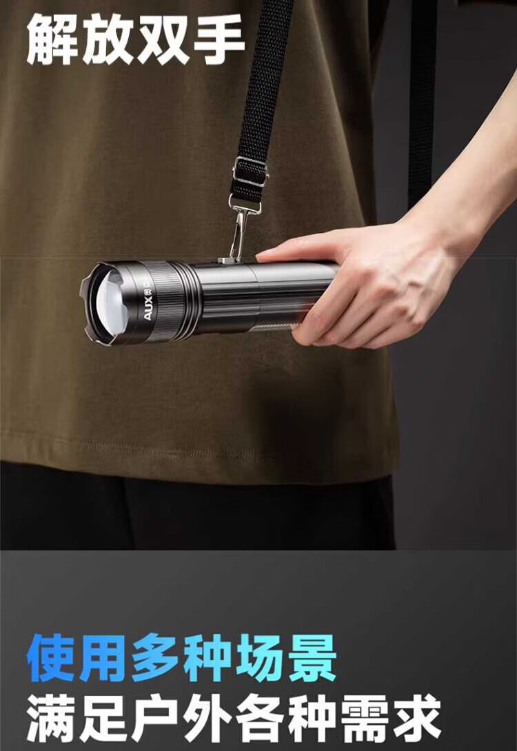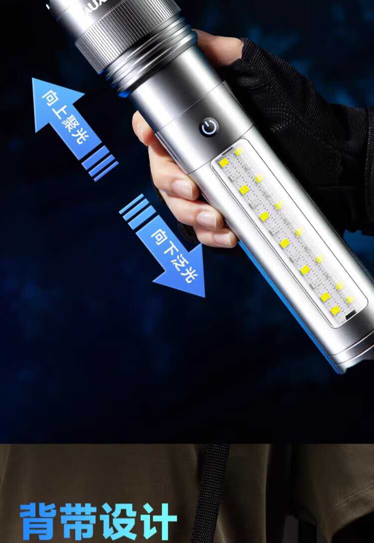 奥克斯(AUX)银龙强光手电筒超亮白激光户外镭射巡逻家用远射长续航大功率手电 【新银龙max+三色镜片】超大锂电+12000毫安+背带绳