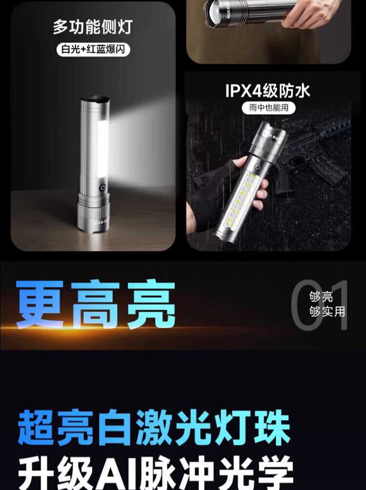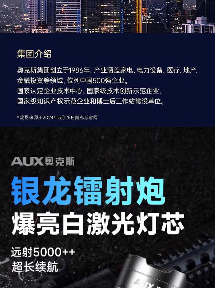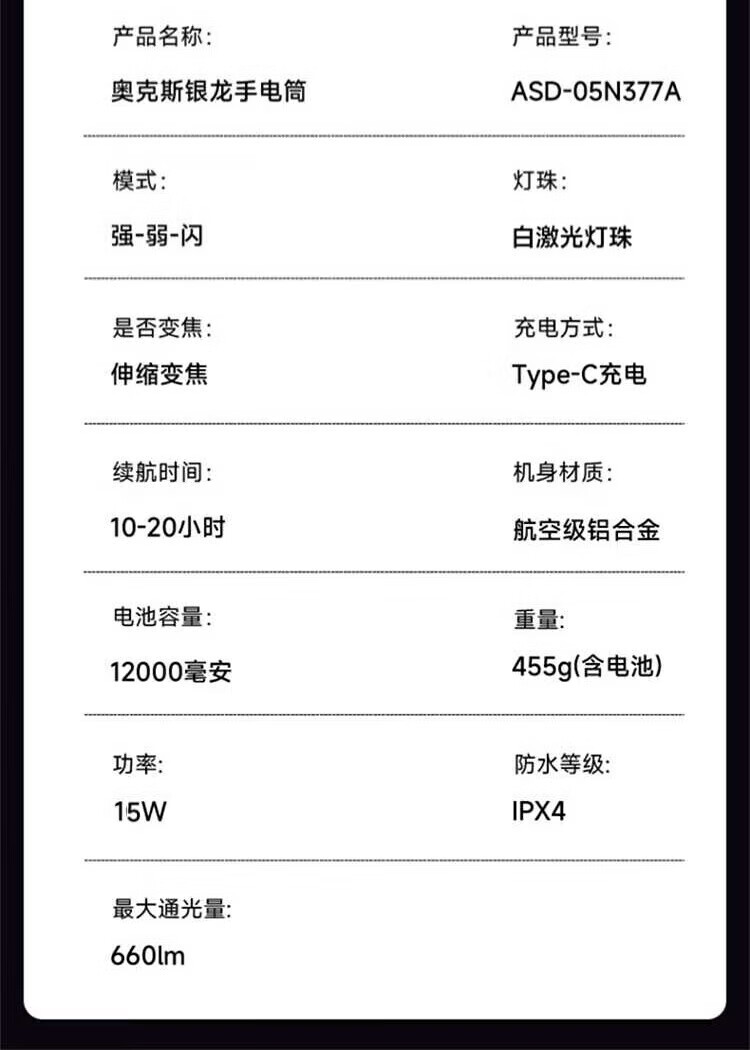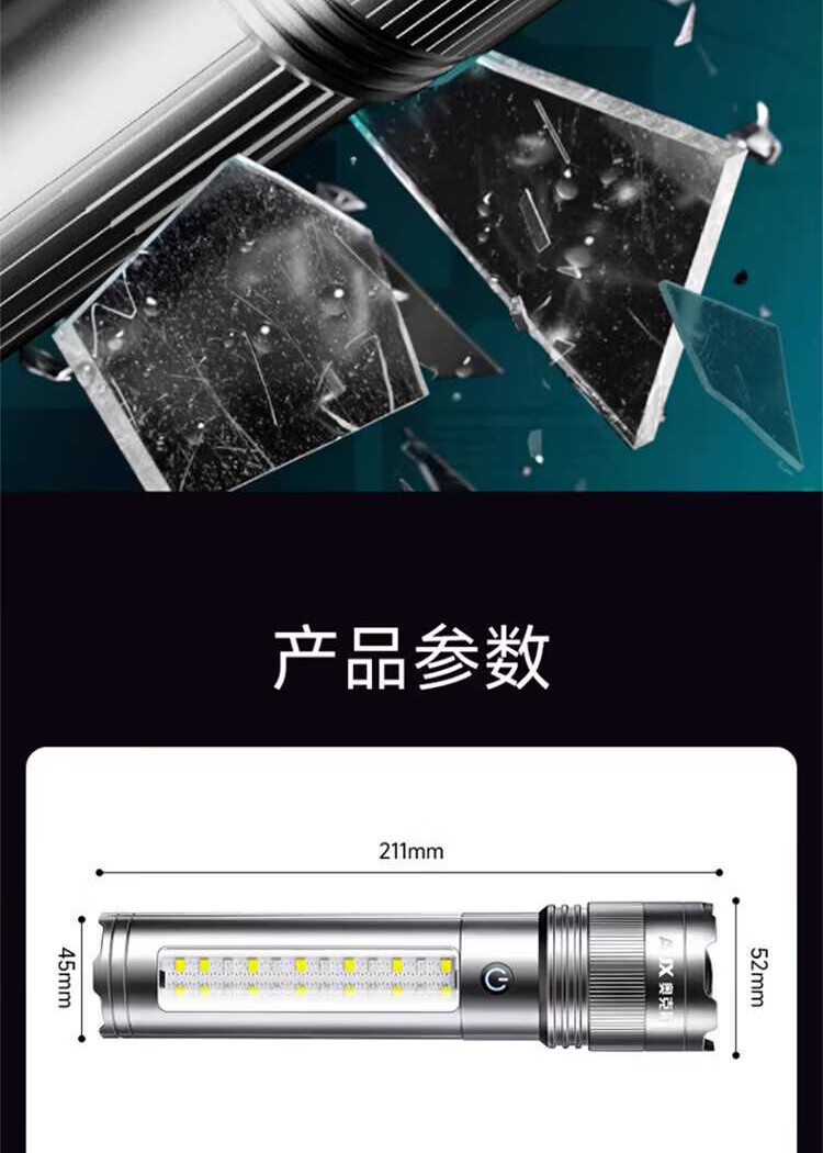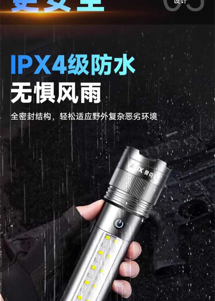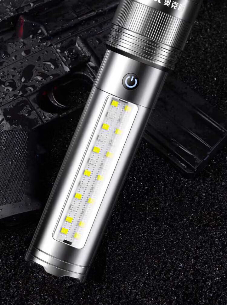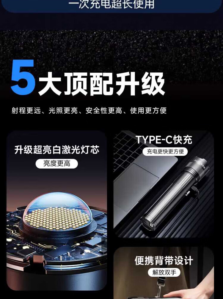 奥克斯(AUX)银龙强光手电筒超亮白激光户外镭射巡逻家用远射长续航大功率手电 【新银龙max+三色镜片】超大锂电+12000毫安+背带绳