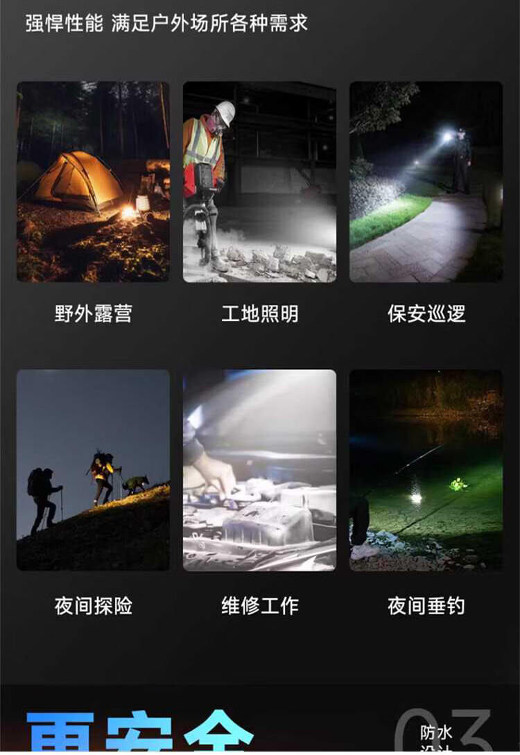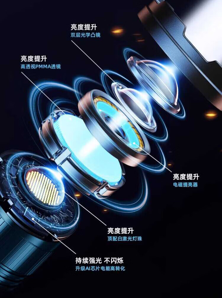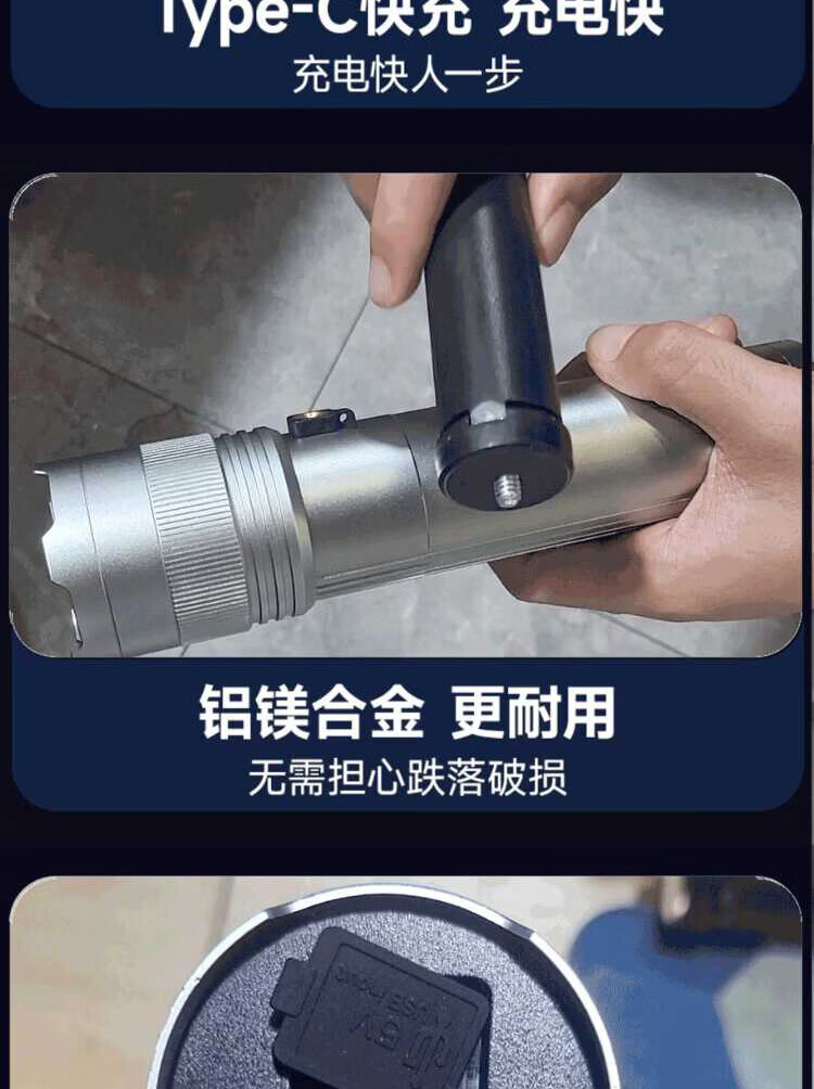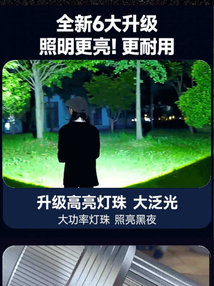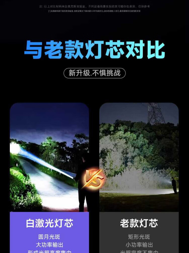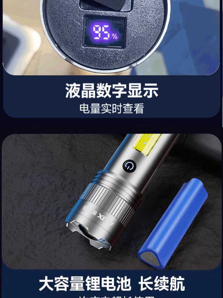 奥克斯(AUX)银龙强光手电筒超亮白激光户外镭射巡逻家用远射长续航大功率手电 【新银龙max+三色镜片】超大锂电+12000毫安+背带绳