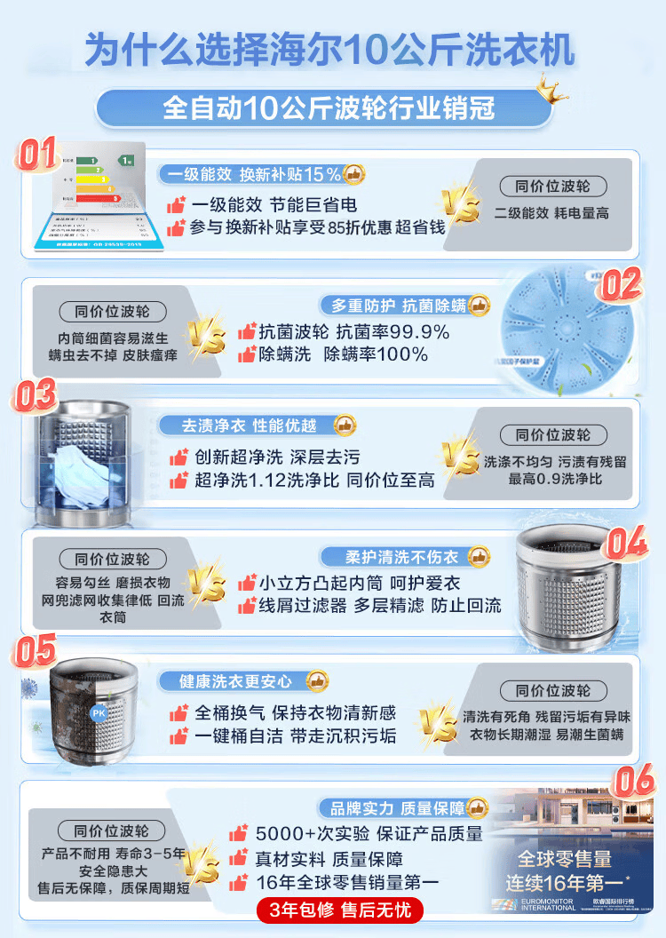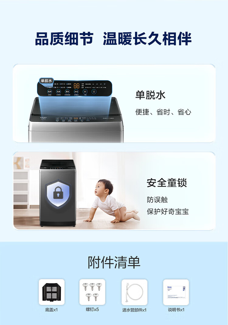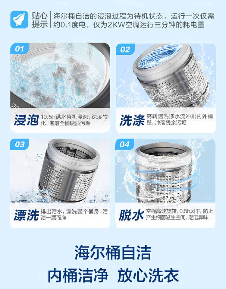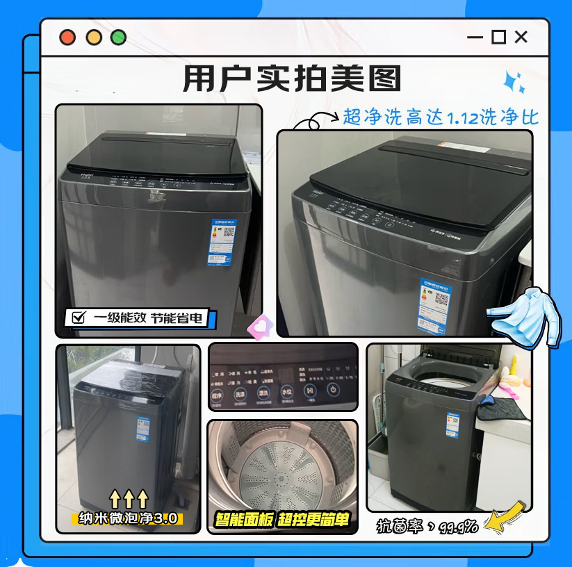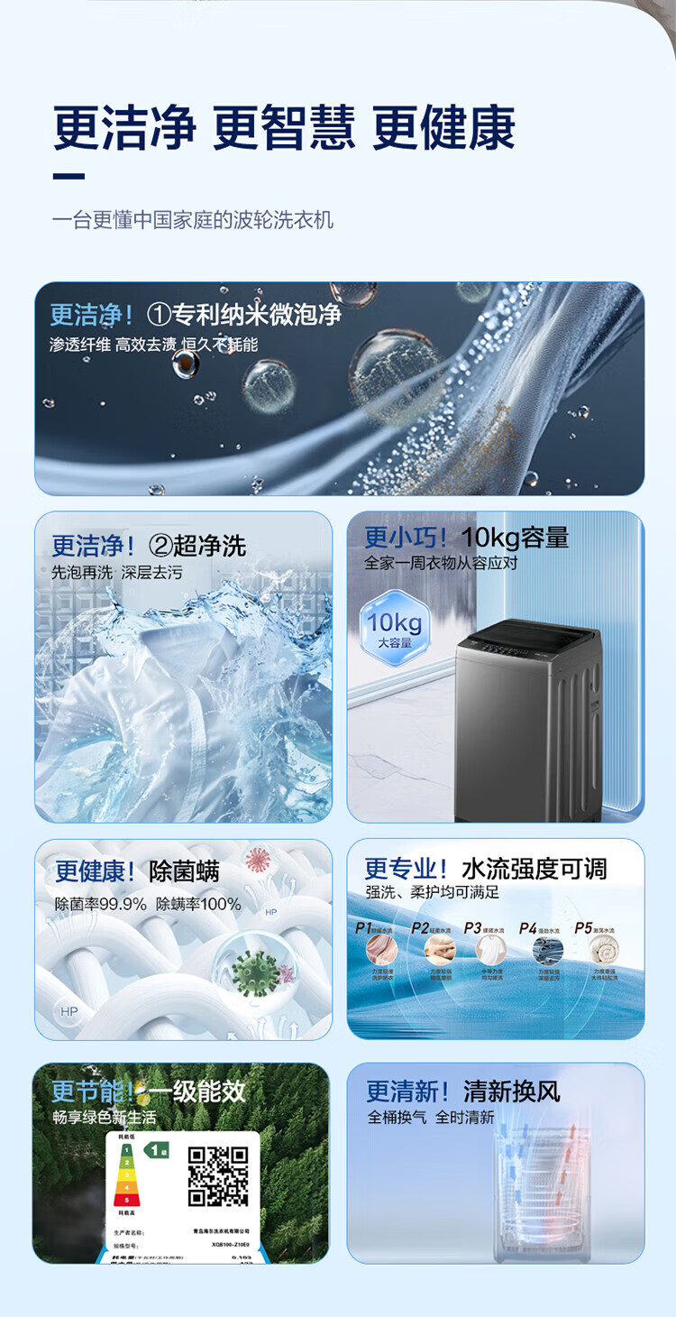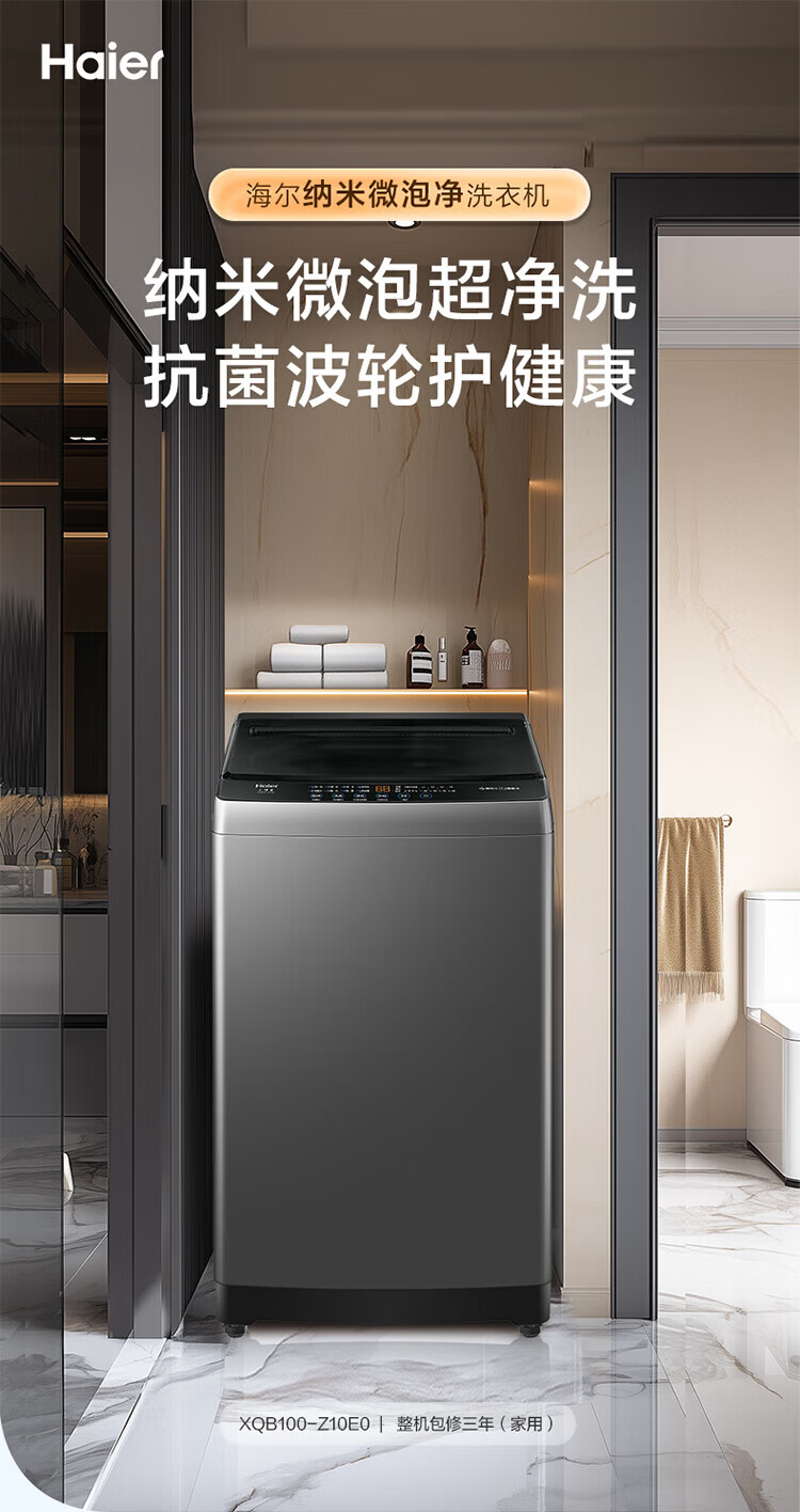海尔(Haier)波轮洗衣机家用10KG租房全自动纳米微泡超净洗高洗净比抗菌波轮 一级能效深层去污除螨 补贴15% 纳米微泡净+超净洗抗菌+预约 波轮 10kg