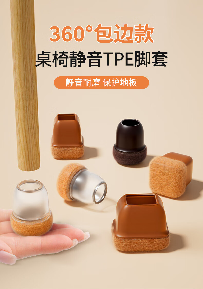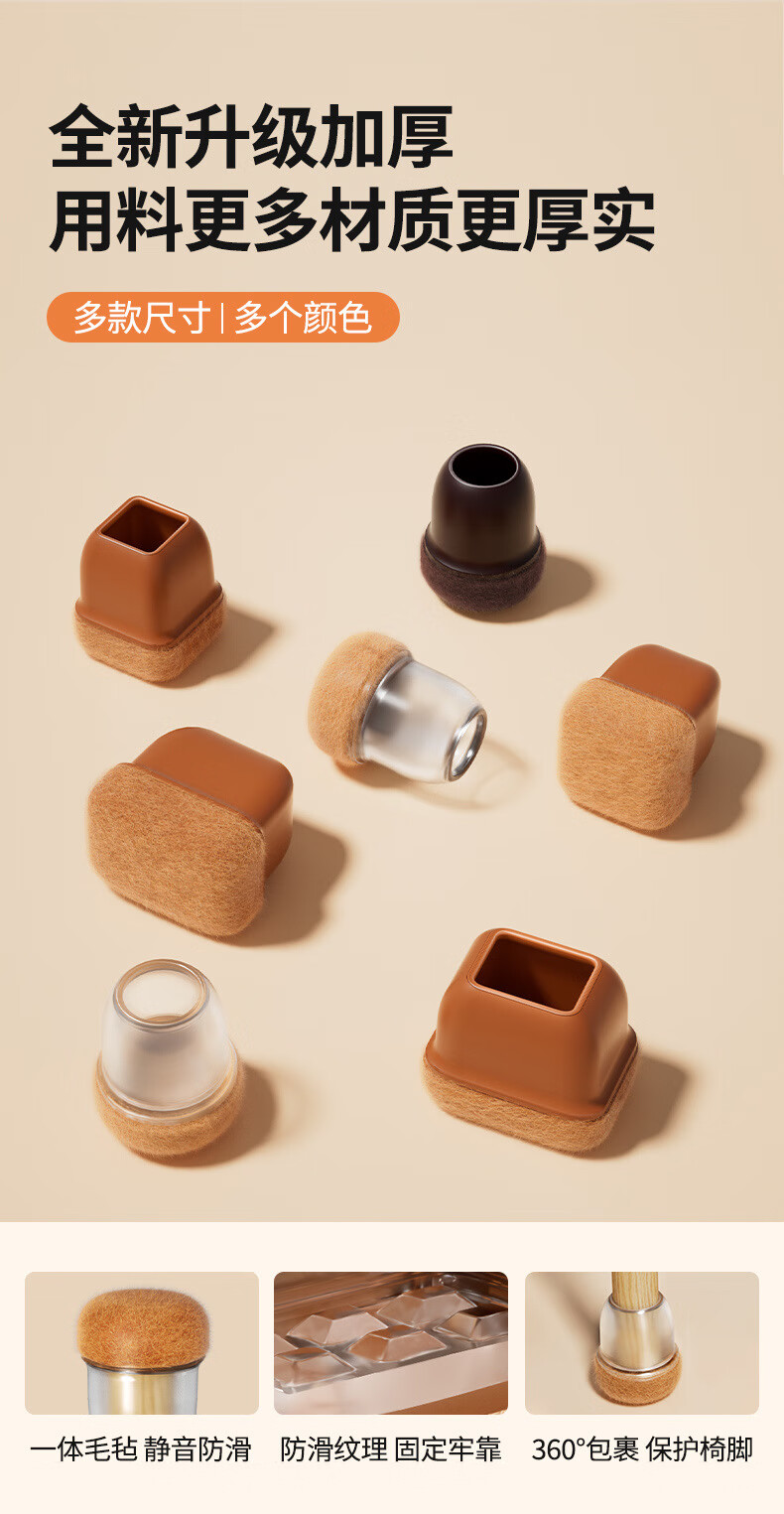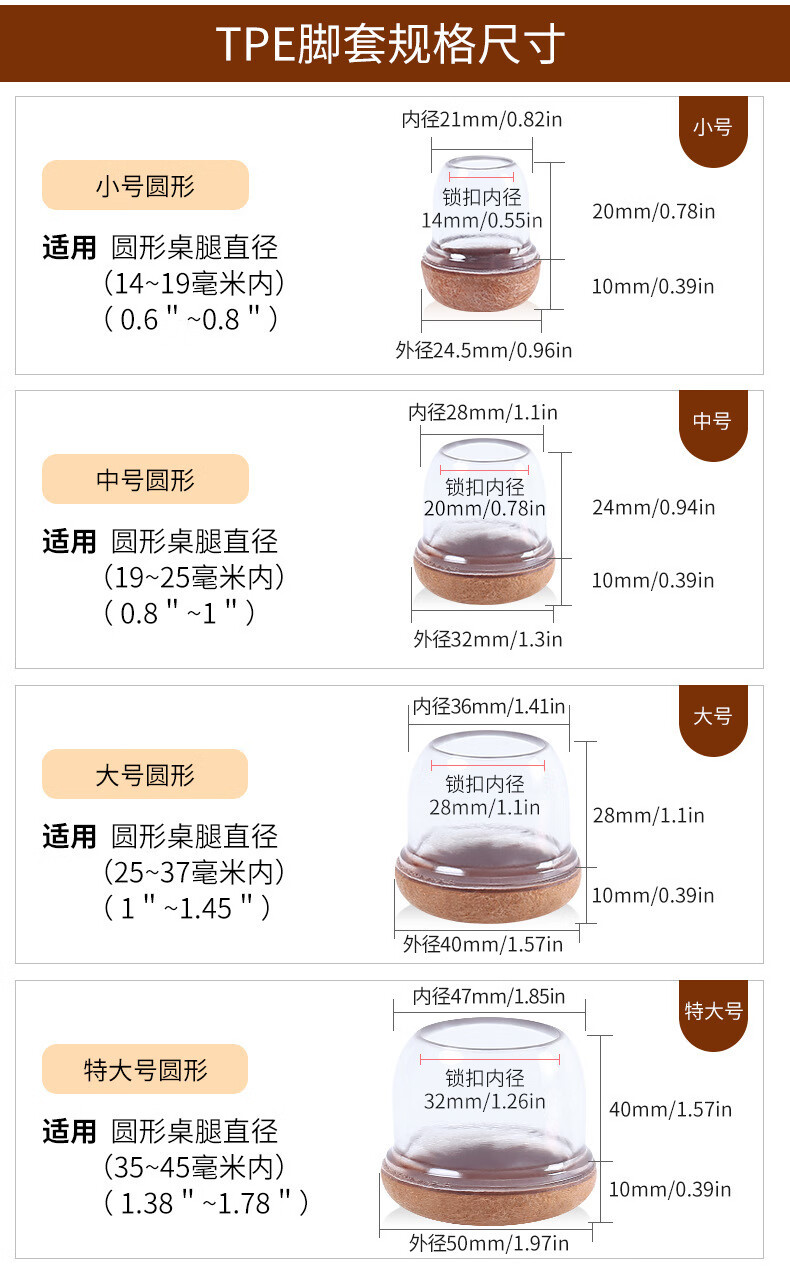 椅子静音脚垫桌椅脚套加厚耐磨家具脚垫降噪椅子脚套凳子腿保护套 1.25寸大号棕色 圆形-8个装