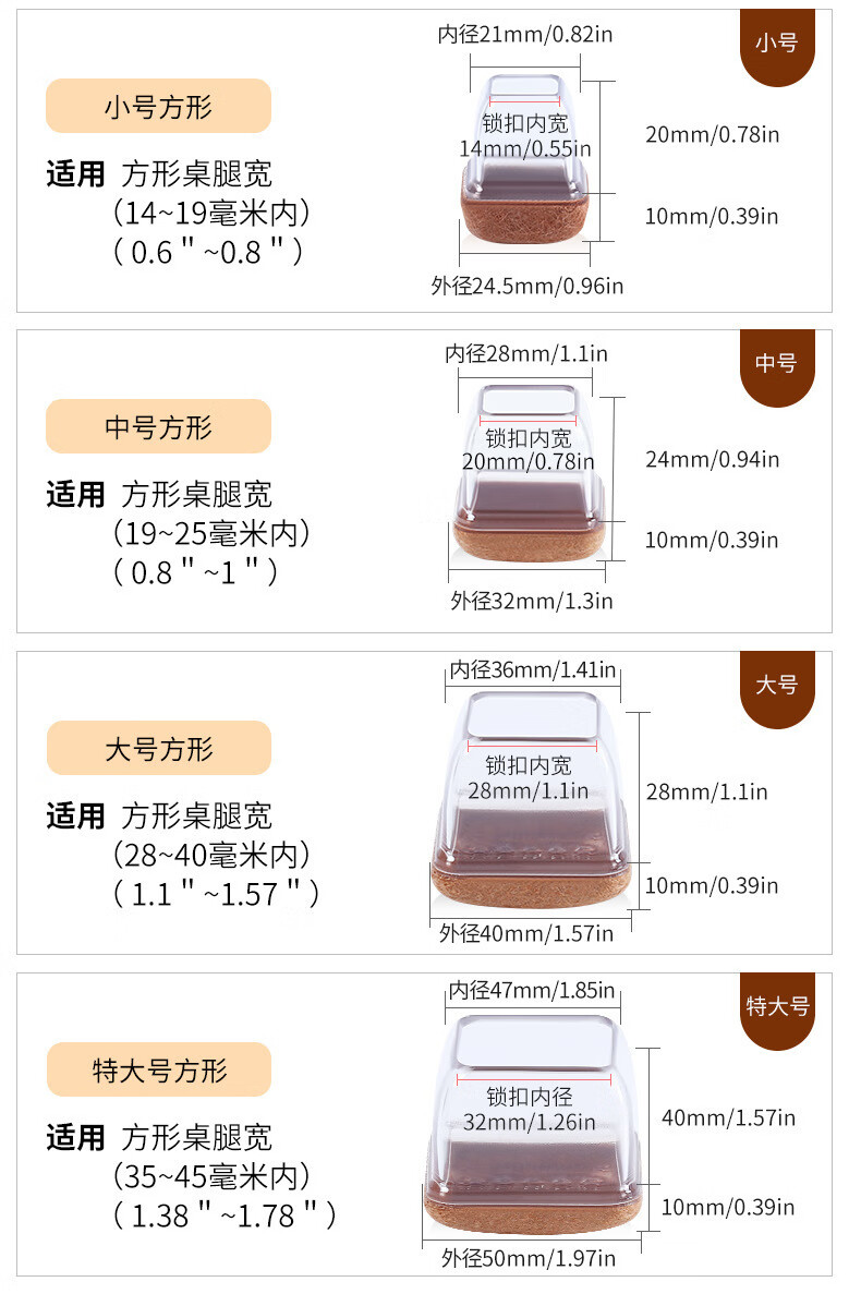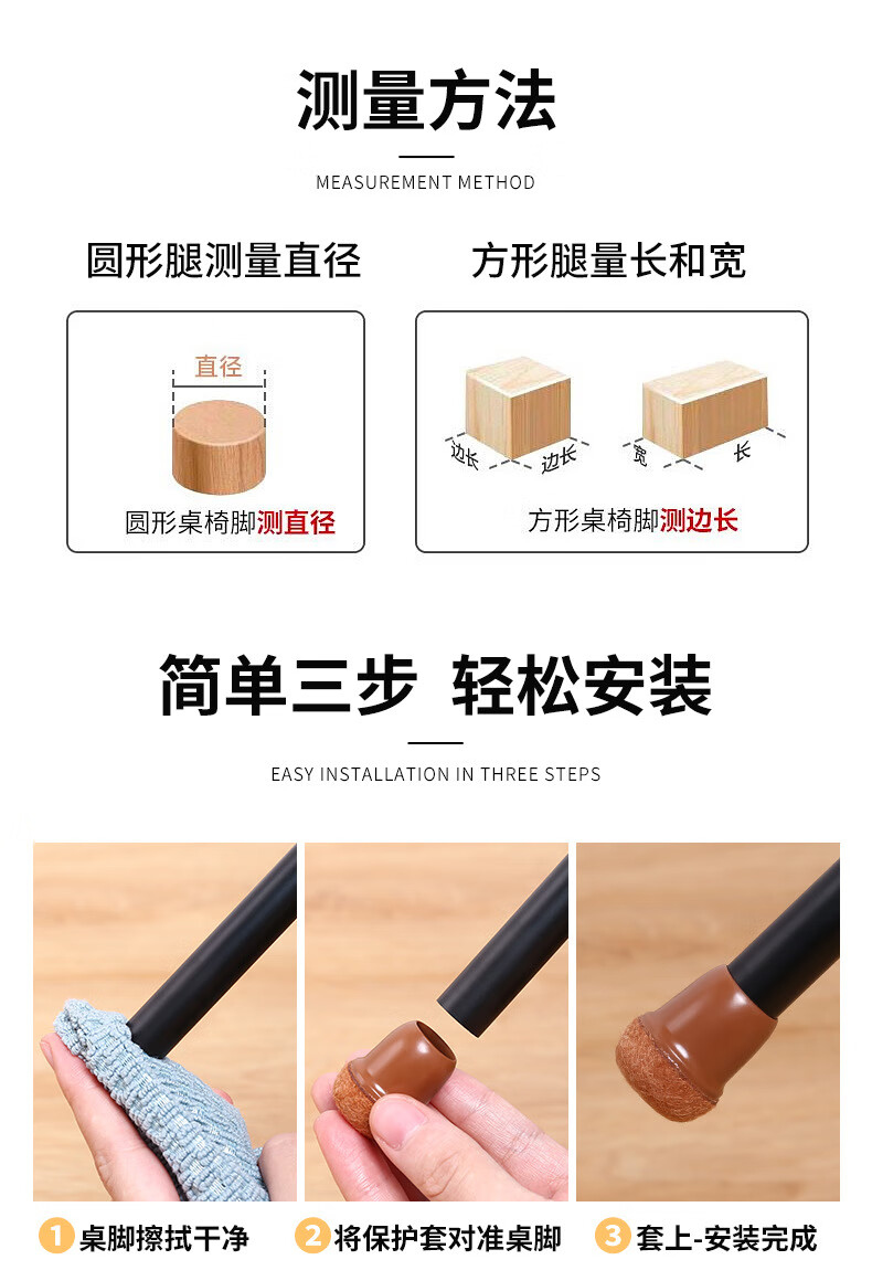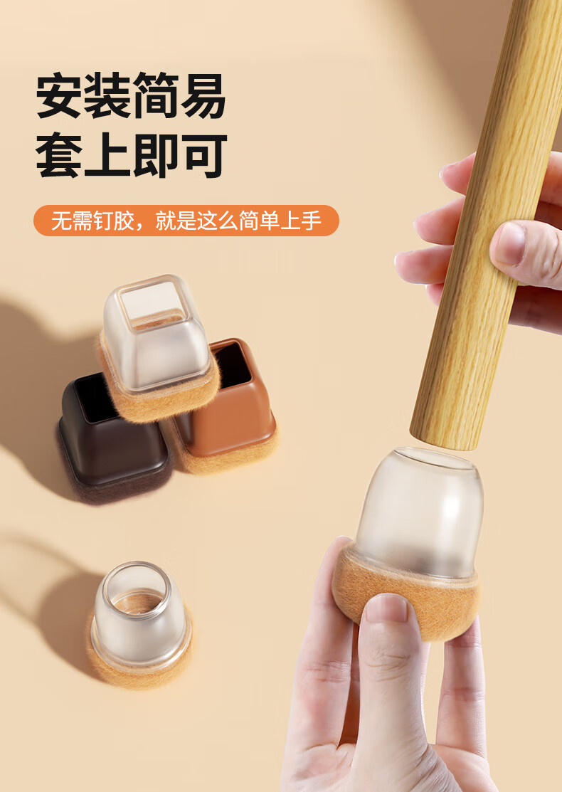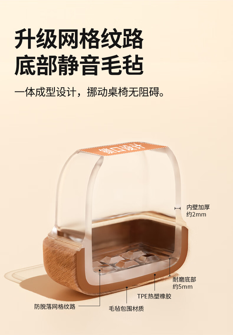 椅子静音脚垫桌椅脚套加厚耐磨家具脚垫降噪椅子脚套凳子腿保护套 1.25寸大号棕色 圆形-8个装