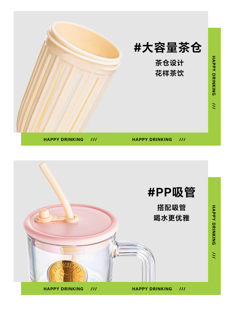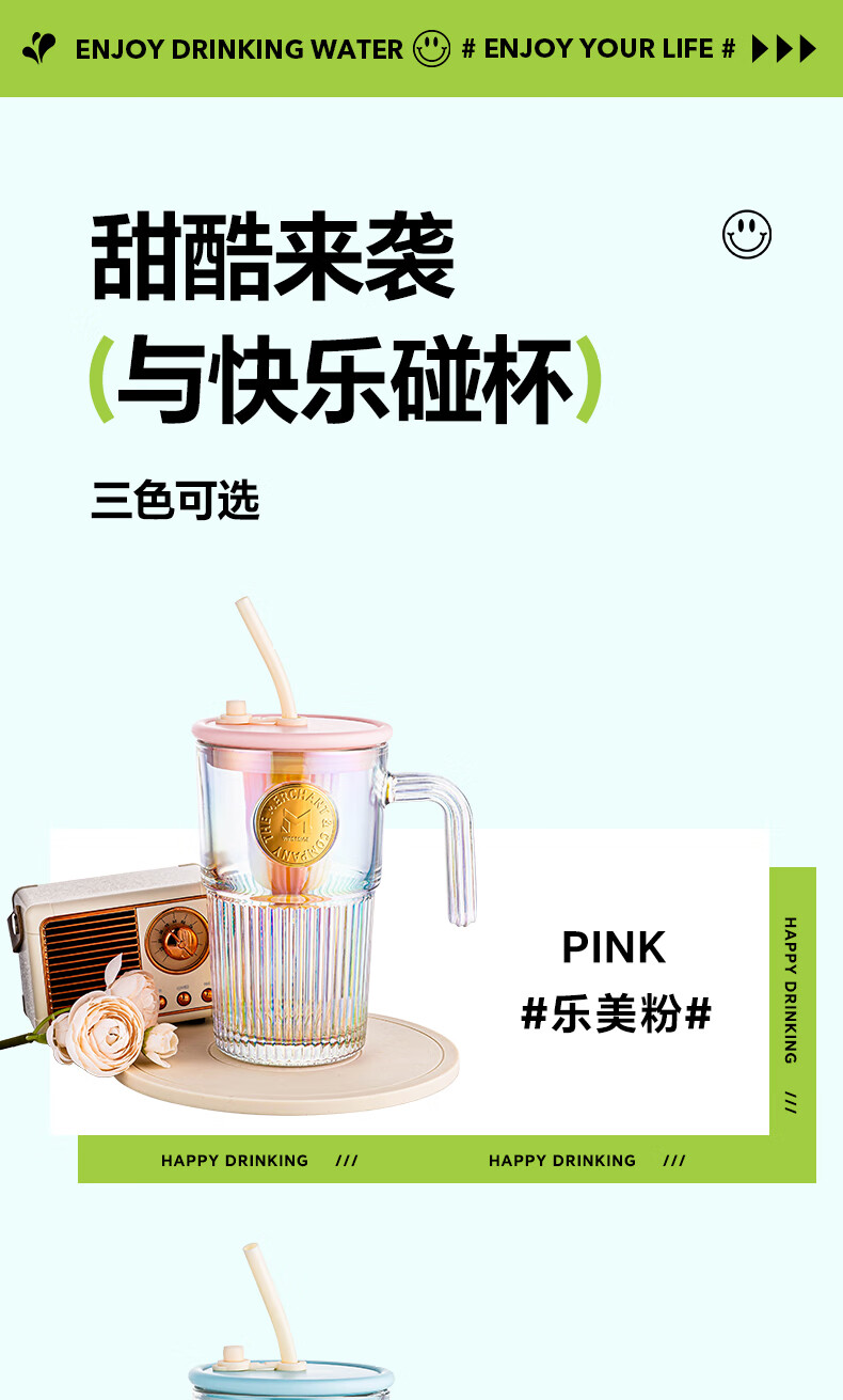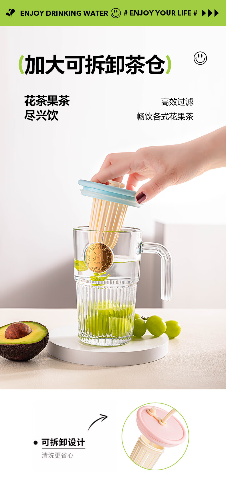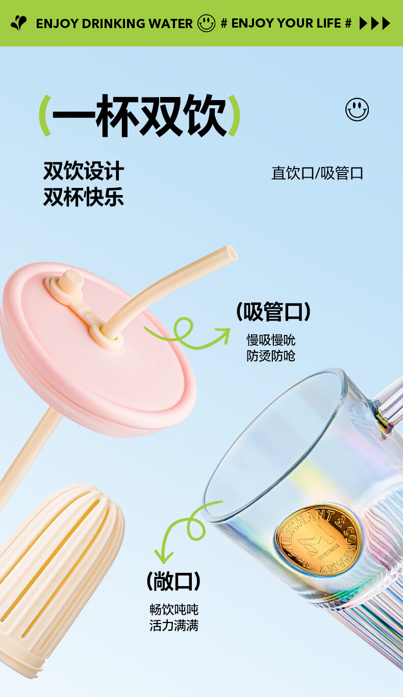 乐唯诗(LOVWISH)ins风大容量带盖带吸管竖条纹玻璃杯高颜值冷饮杯果汁咖啡杯水杯 乐美吸管杯【琥珀】530ml1只