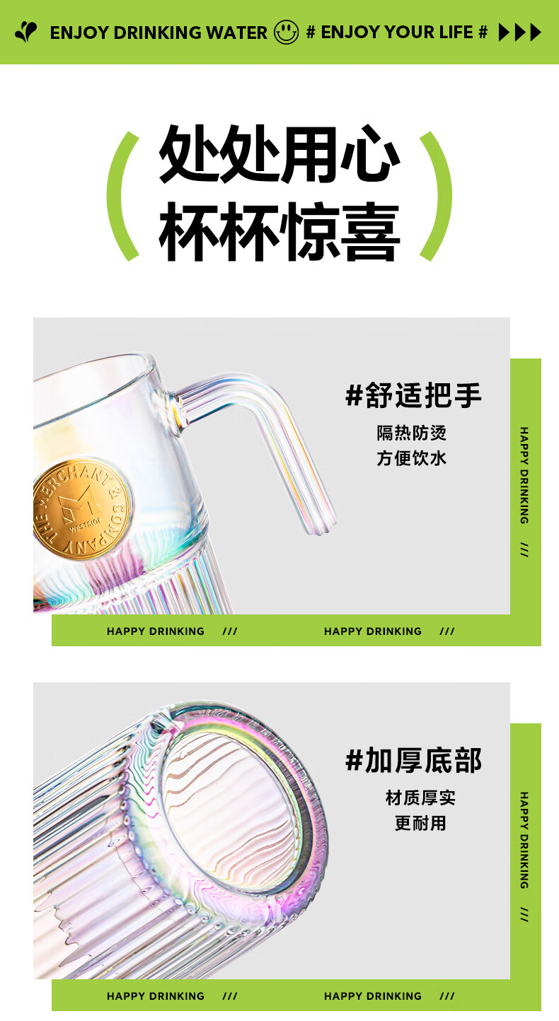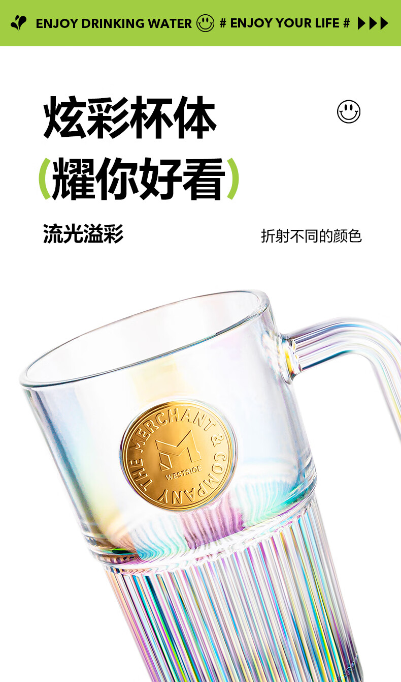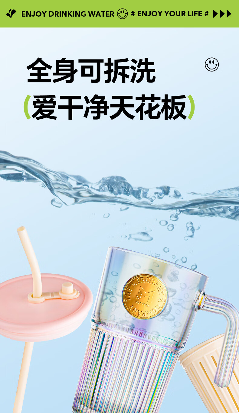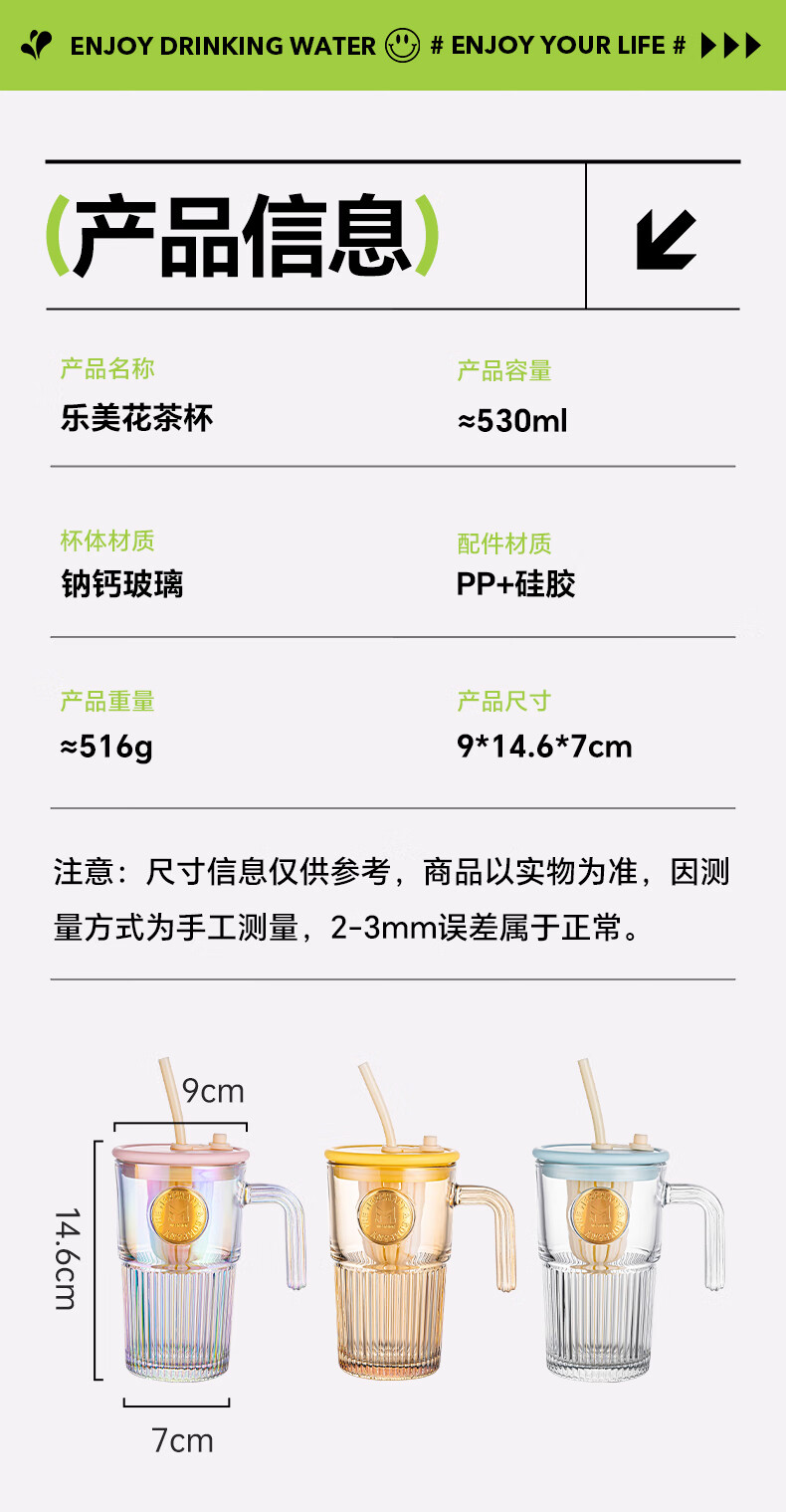乐唯诗(LOVWISH)ins风大容量带盖带吸管竖条纹玻璃杯高颜值冷饮杯果汁咖啡杯水杯 乐美吸管杯【琥珀】530ml1只