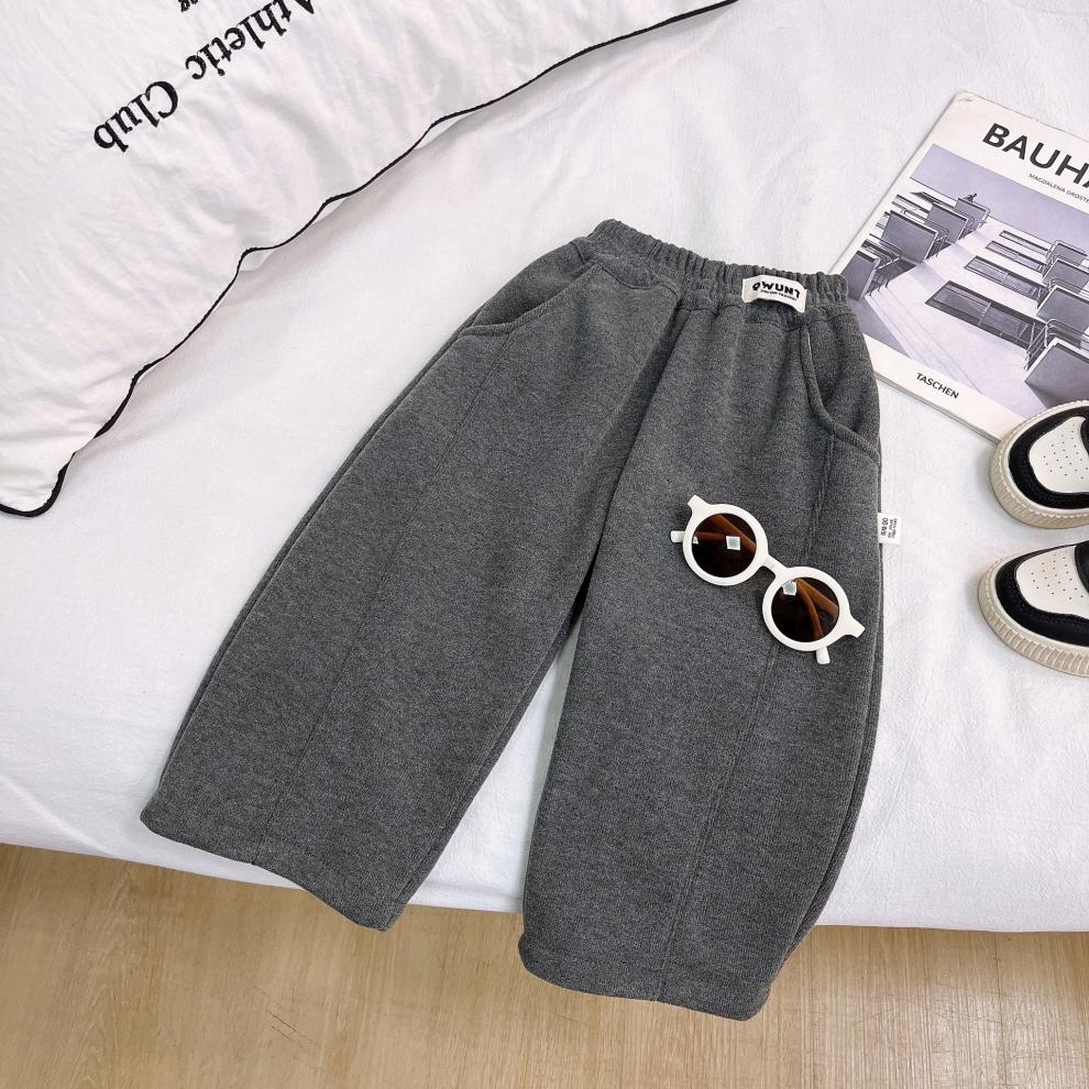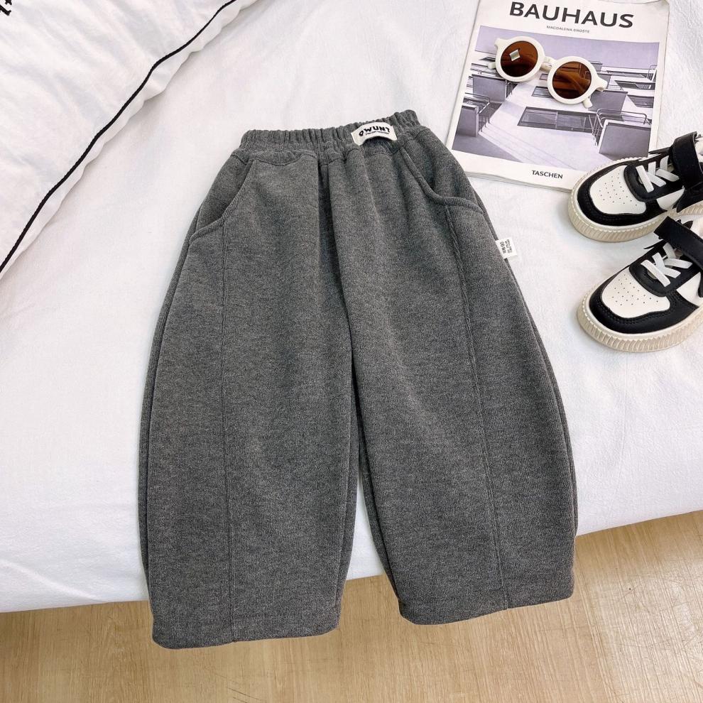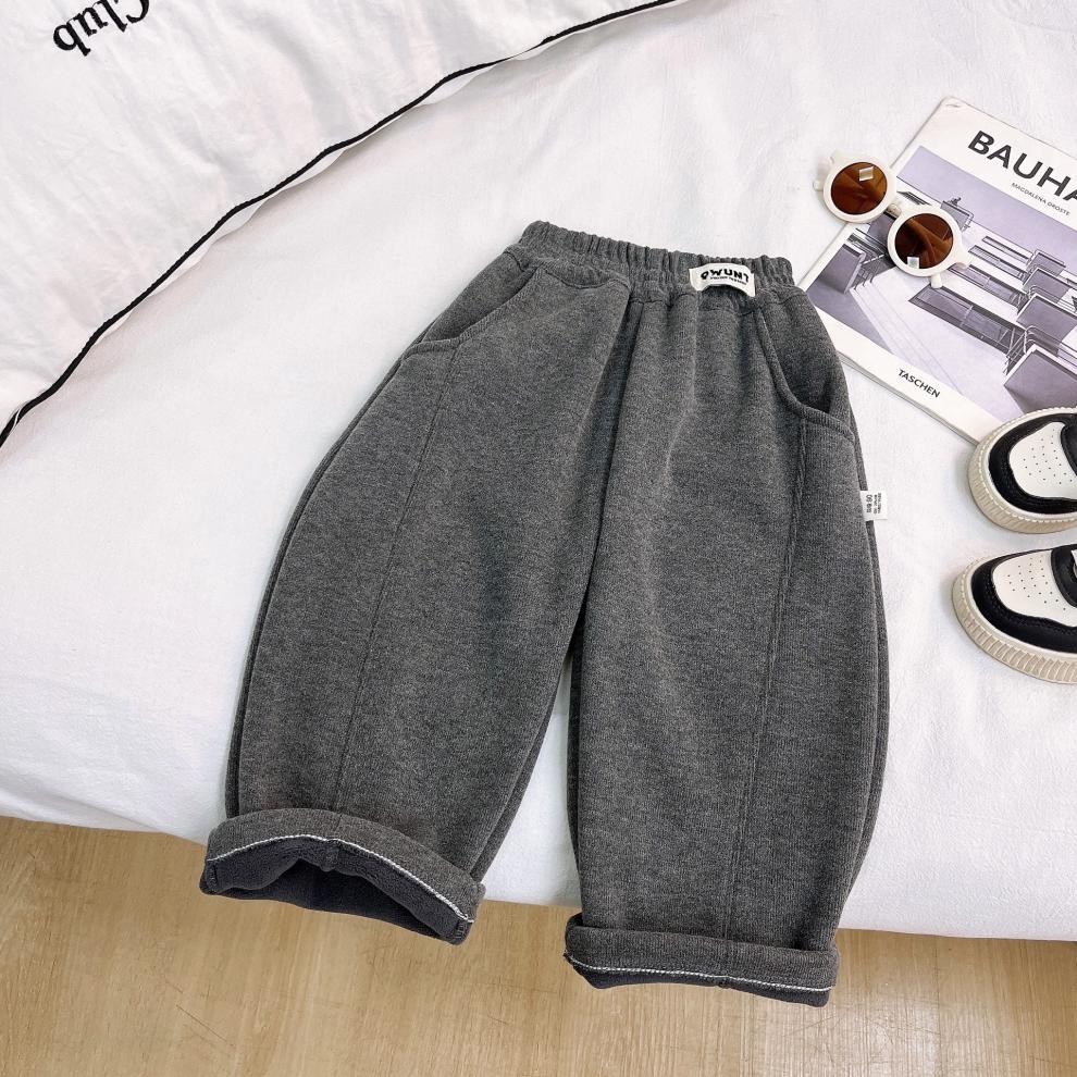 小猪班纳(PEPCO)冬季儿童裤子2025秋季新款韩版男童纯色宽松休闲裤宝宝洋气阔腿裤 糯米绒弯刀裤 90 cm