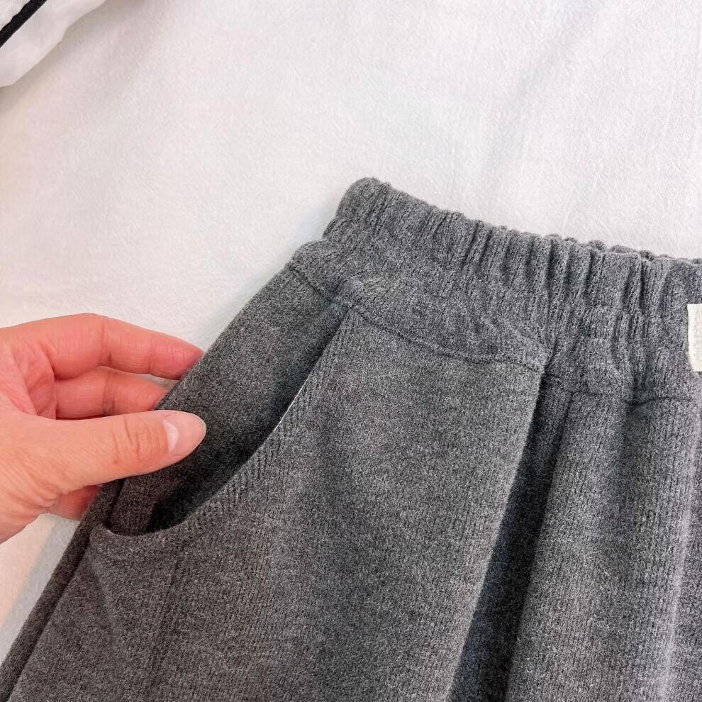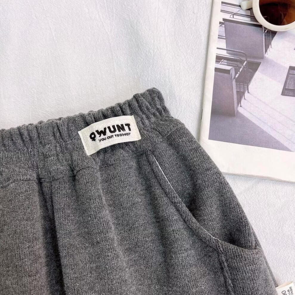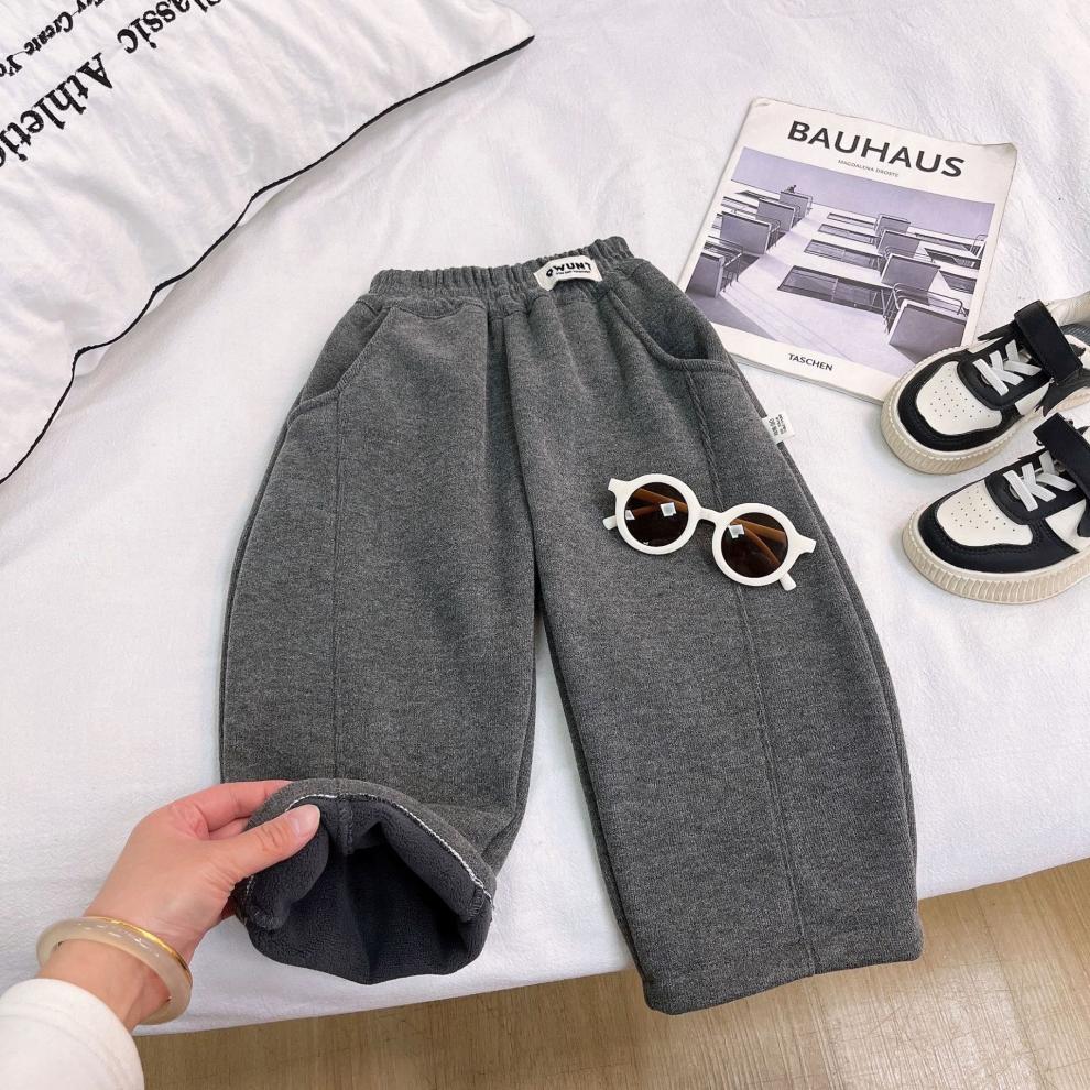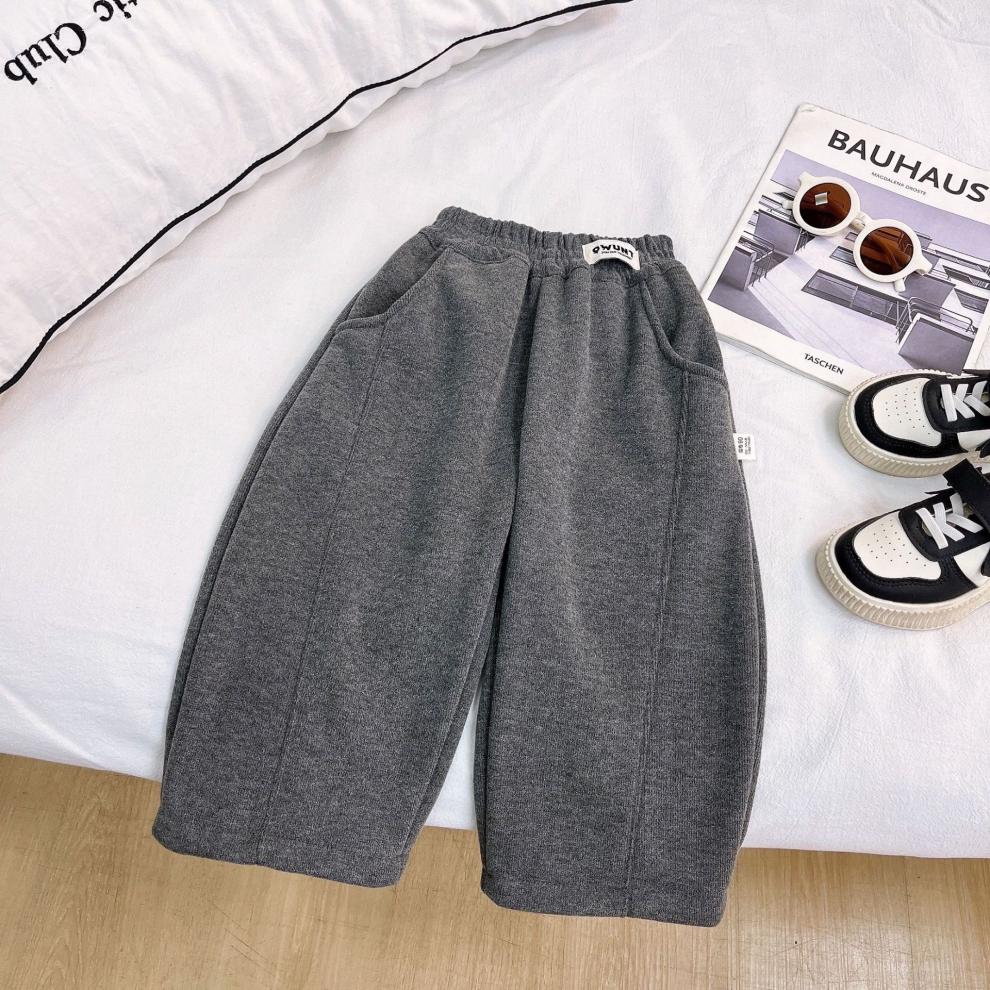 小猪班纳(PEPCO)冬季儿童裤子2025秋季新款韩版男童纯色宽松休闲裤宝宝洋气阔腿裤 糯米绒弯刀裤 90 cm