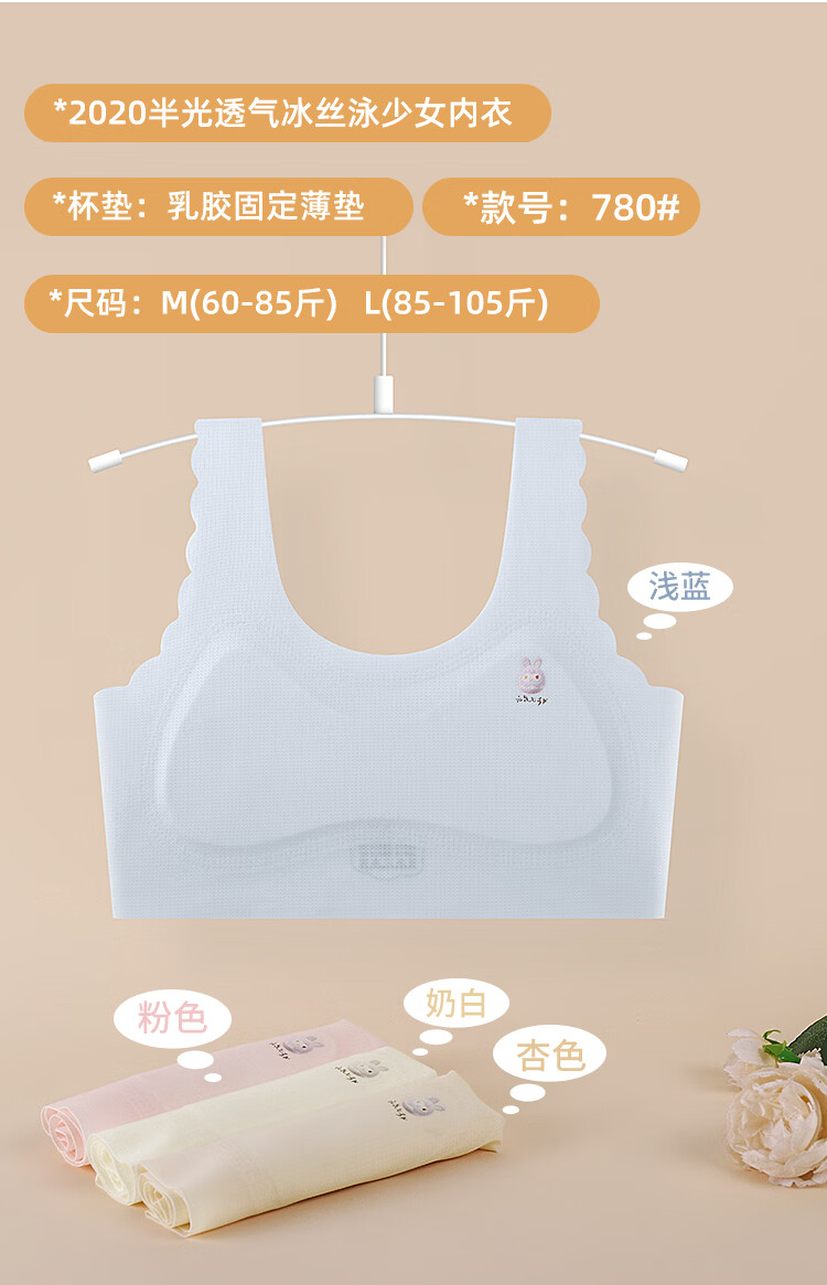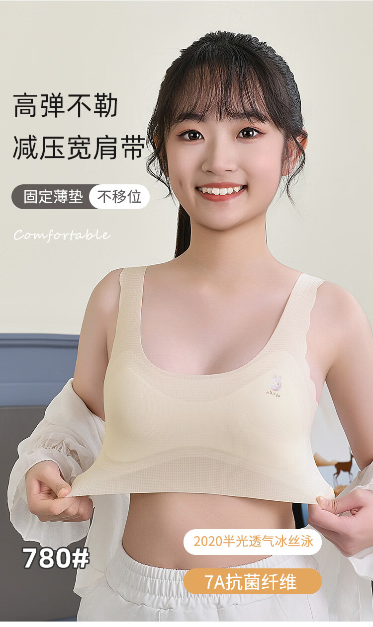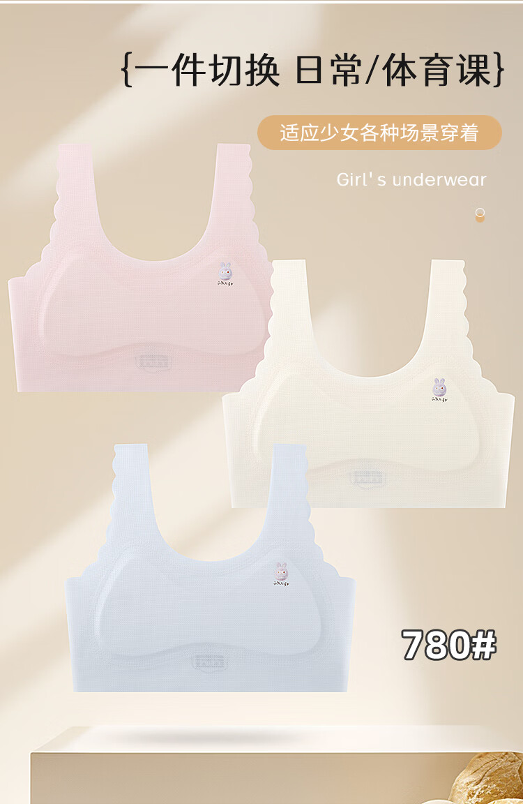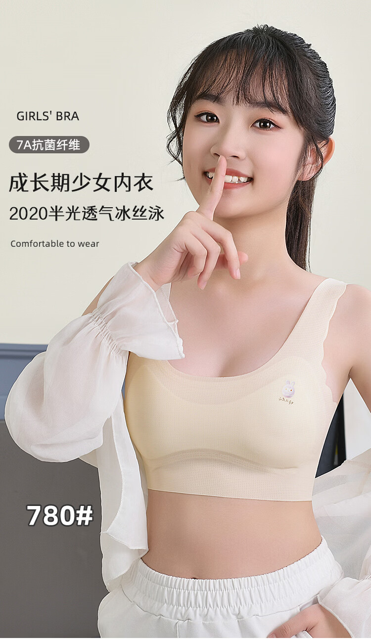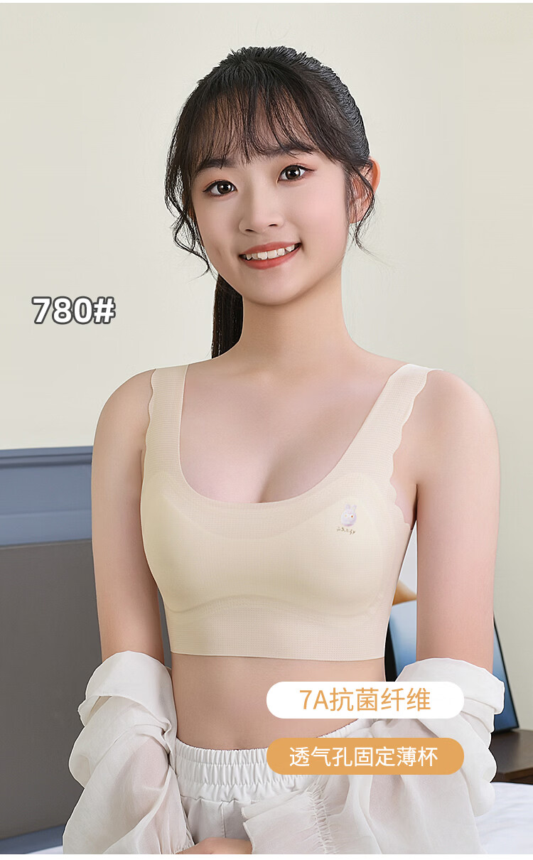 猫人初中生内衣女学生运动文胸女大童发育期女孩高中生少女背心7A抗菌 粉色 M 【推荐60-85斤】
