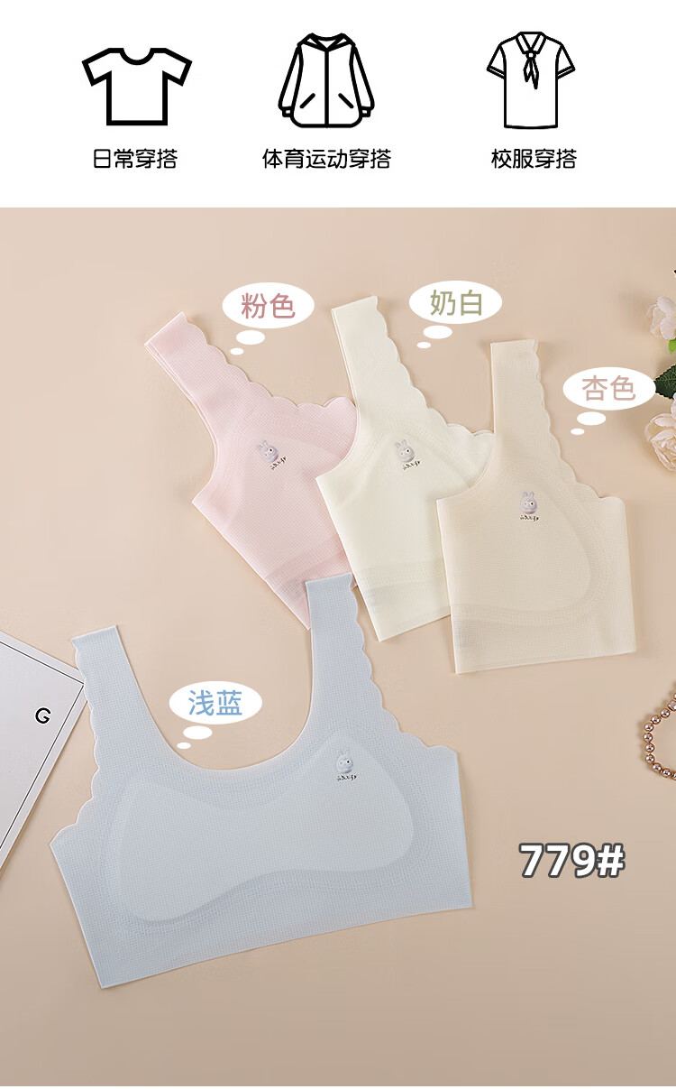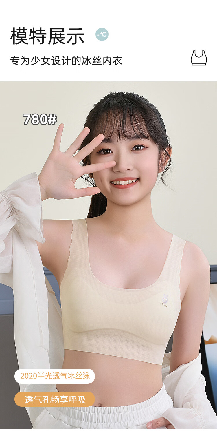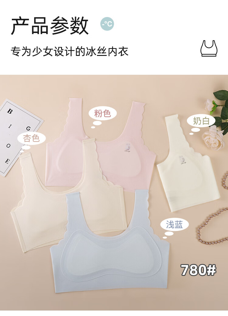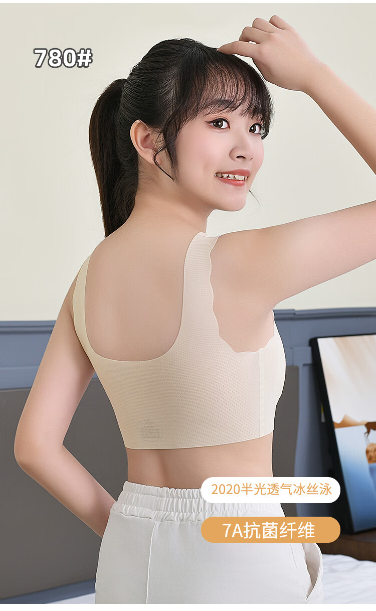 猫人初中生内衣女学生运动文胸女大童发育期女孩高中生少女背心7A抗菌 粉色 M 【推荐60-85斤】