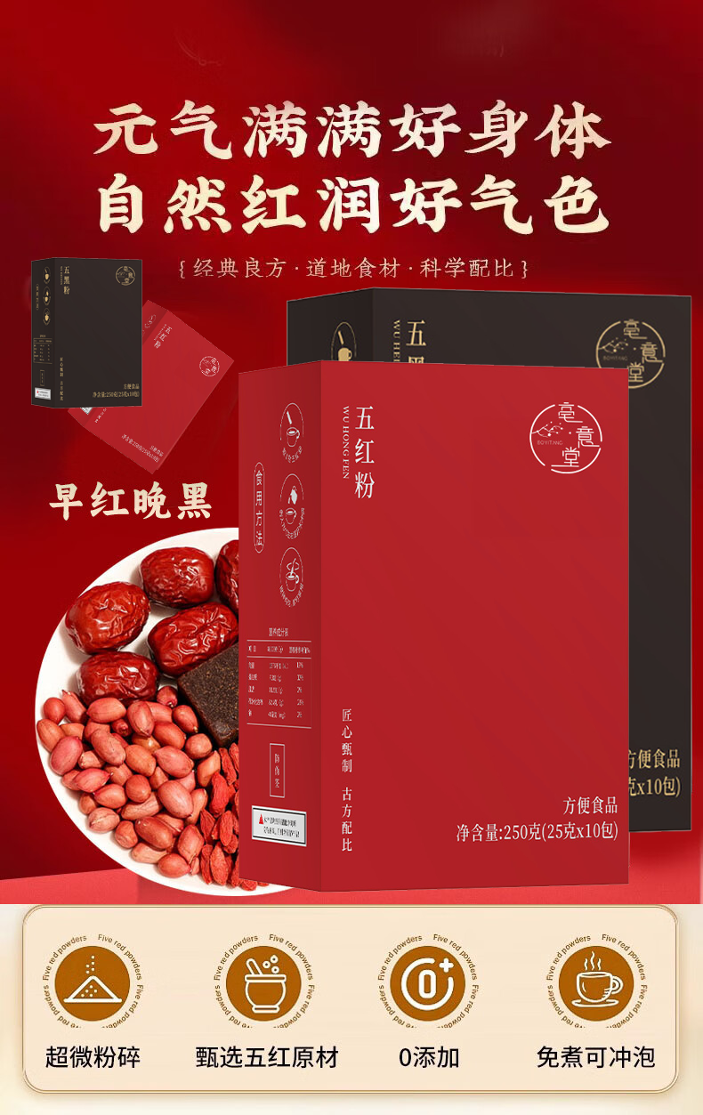 五红粉阿胶补气血女补气养血五黑粉提高免疫力睡眠养发 早红晚黑组合装(五红粉5盒+五黑粉5盒)