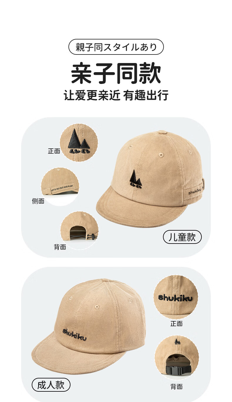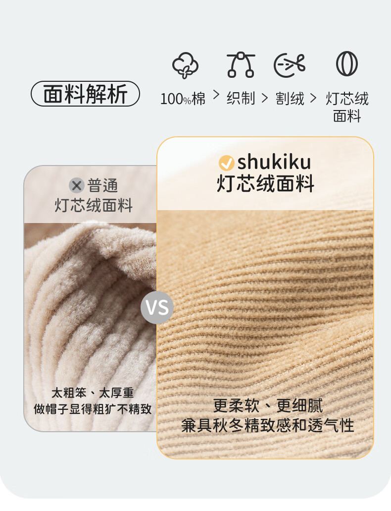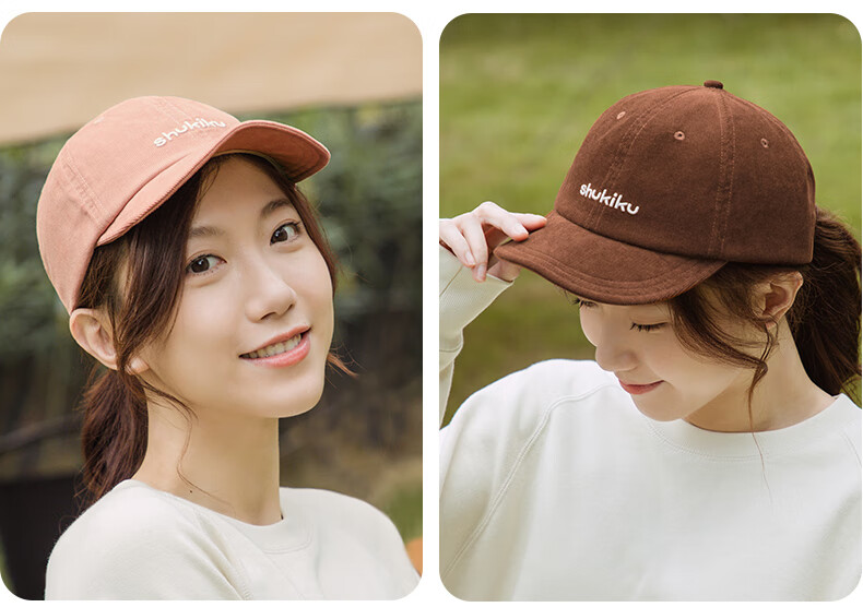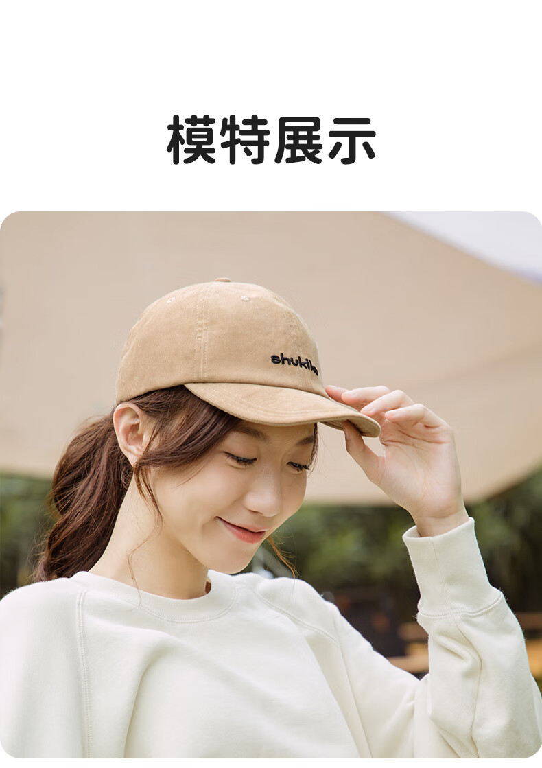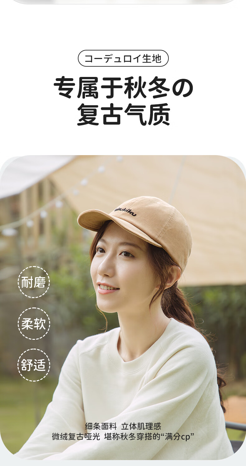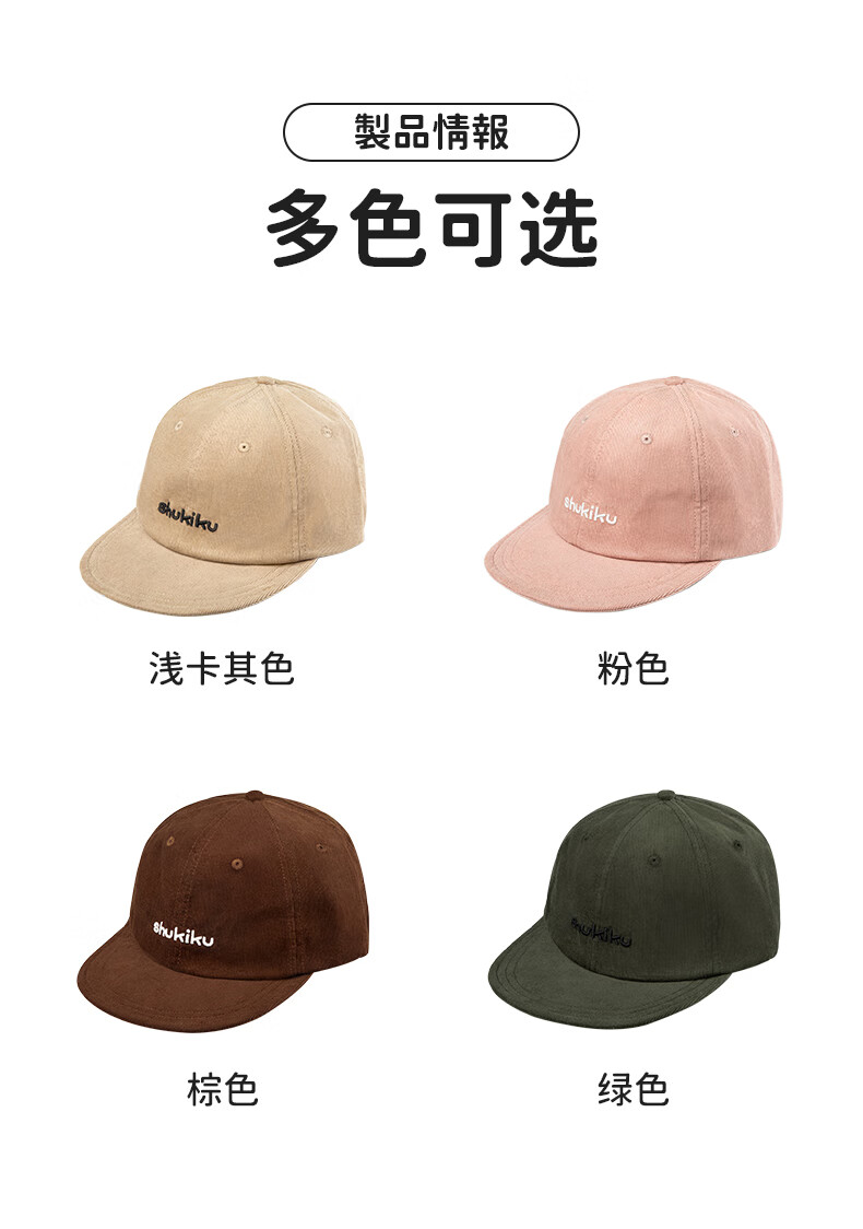 SHUKIKU鸭舌帽女春秋季时尚抗静电显脸小灯芯绒棒球帽 浅卡其