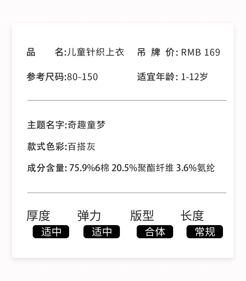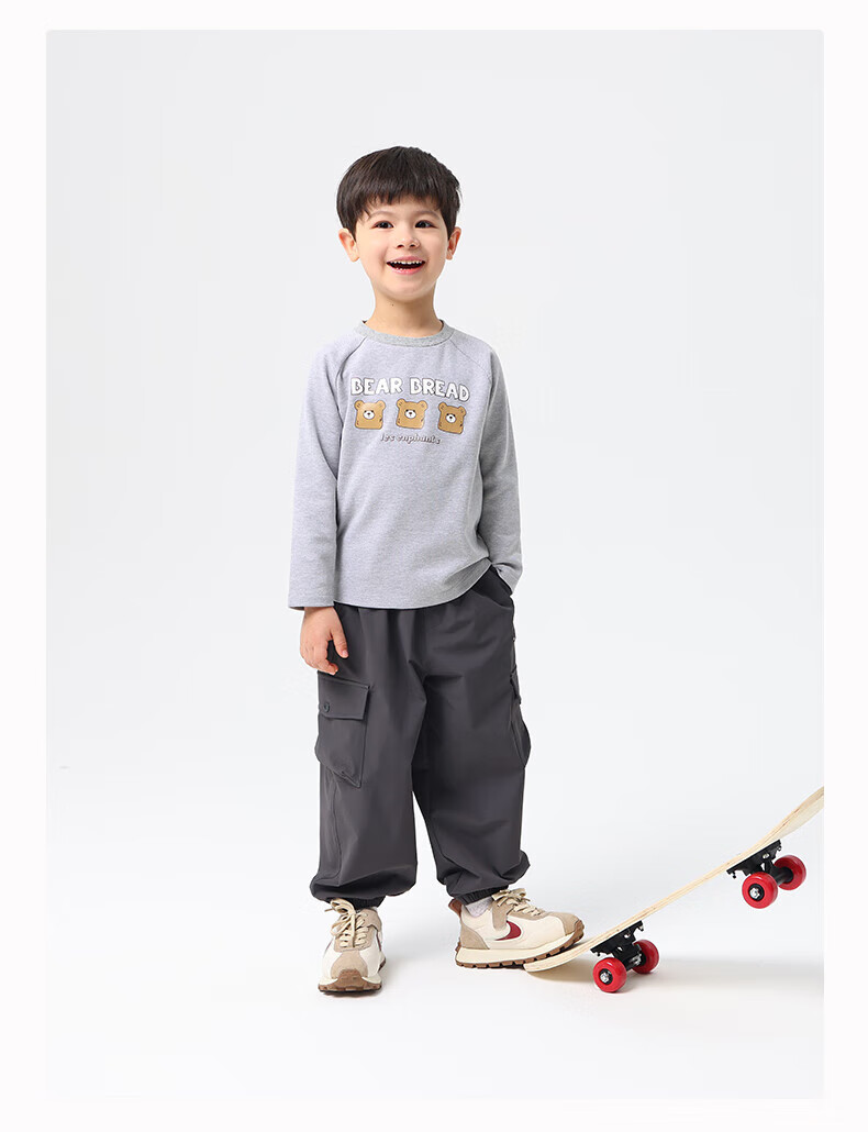 丽婴房儿童印花长袖T恤男童长袖上衣宝宝卫衣秋季上衣卫衣 百搭灰 120 cm