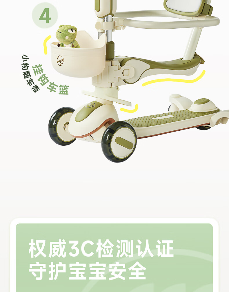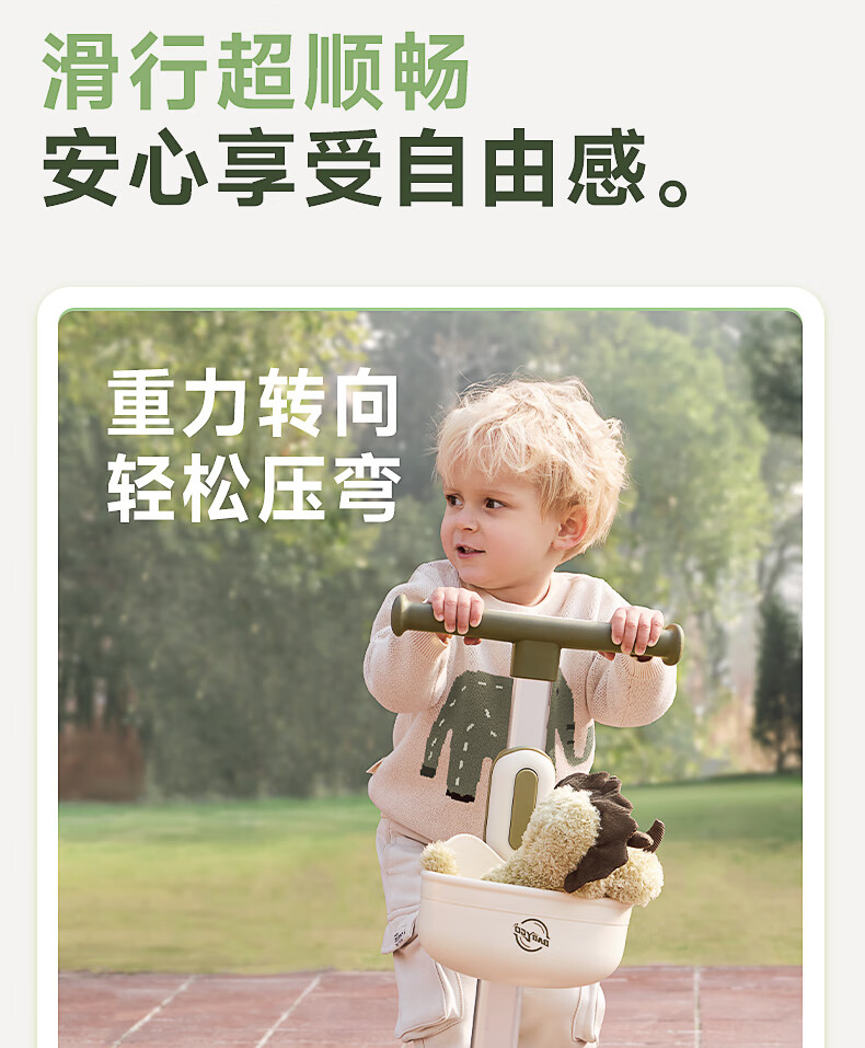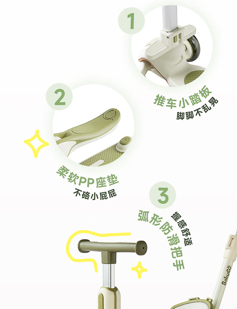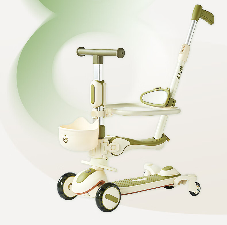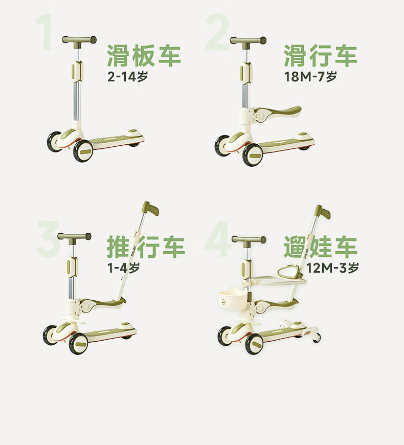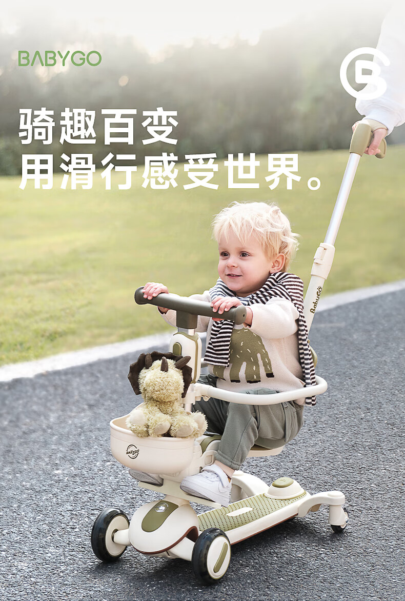 BG-BABYGO儿童滑板车1-3-6岁小孩宝宝踏板平衡车多功能滑滑溜溜车 【四合一推行款】山岚绿