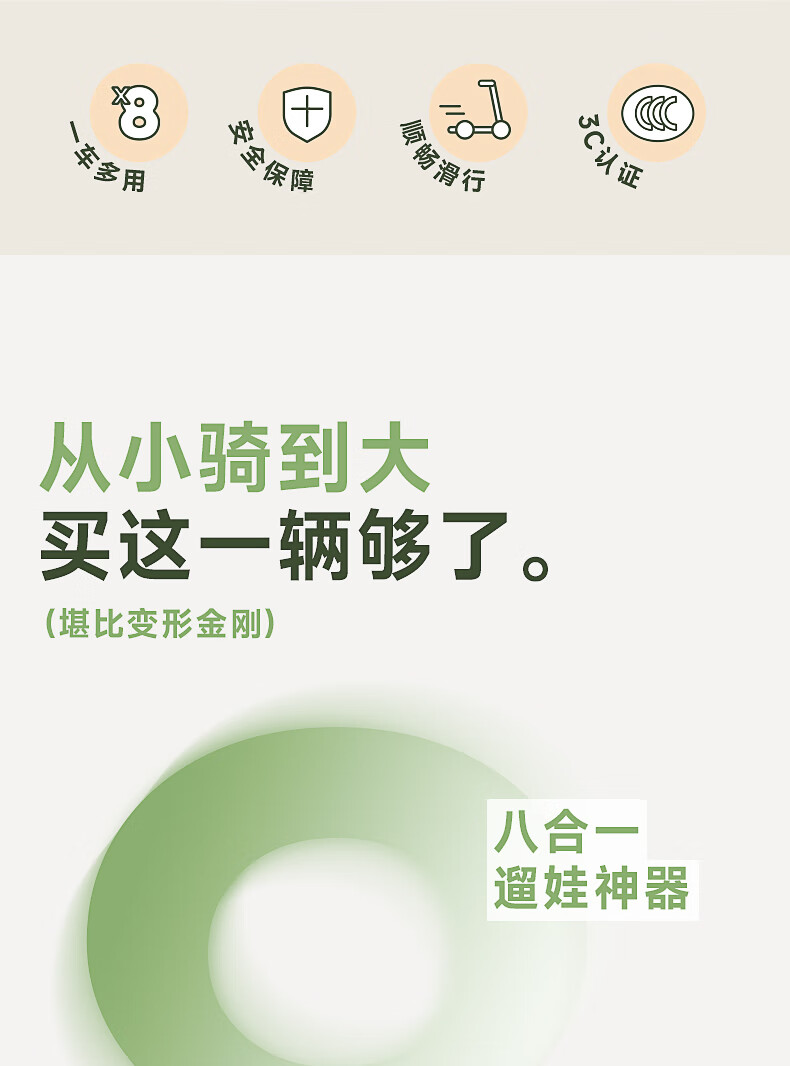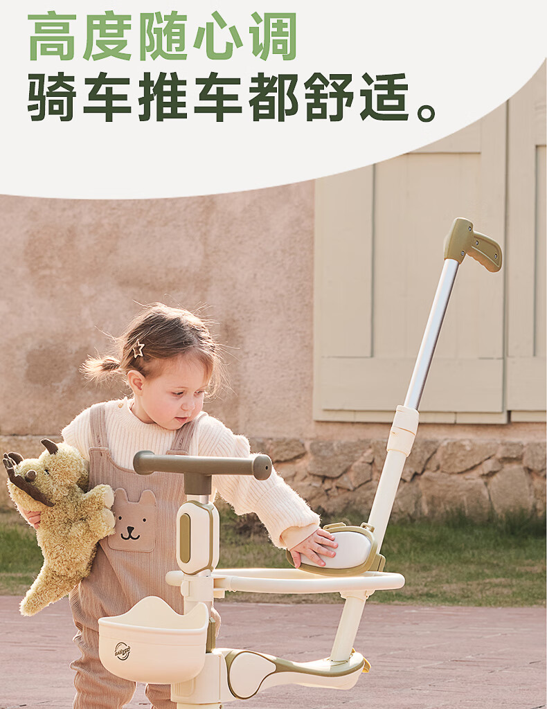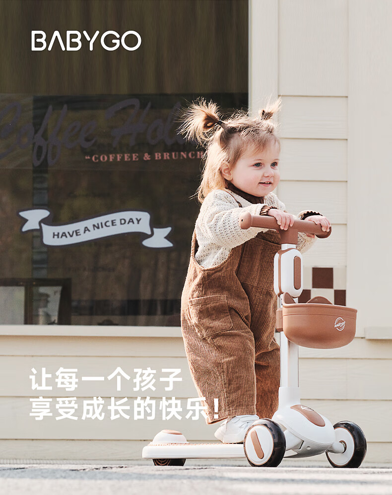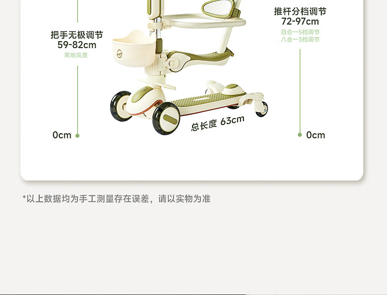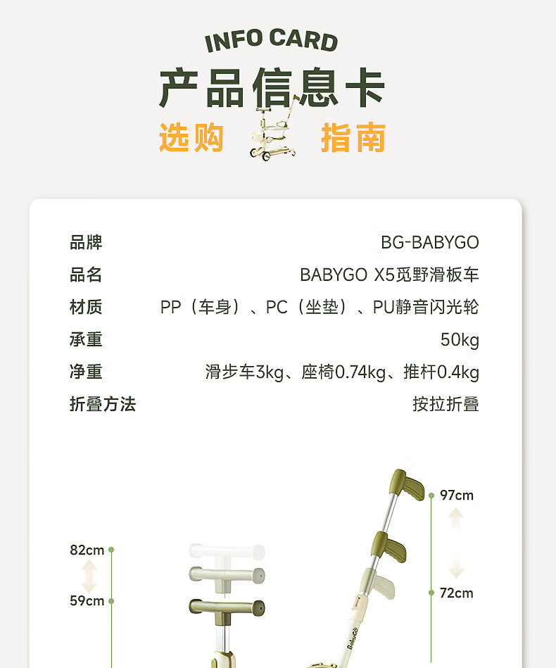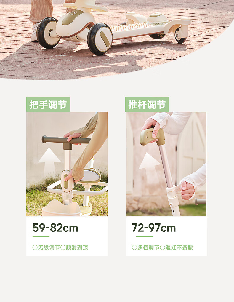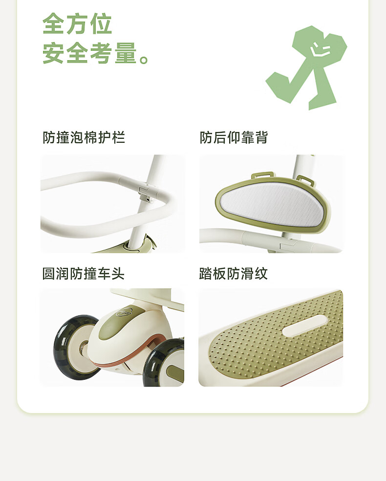 BG-BABYGO儿童滑板车1-3-6岁小孩宝宝踏板平衡车多功能滑滑溜溜车 【四合一推行款】山岚绿
