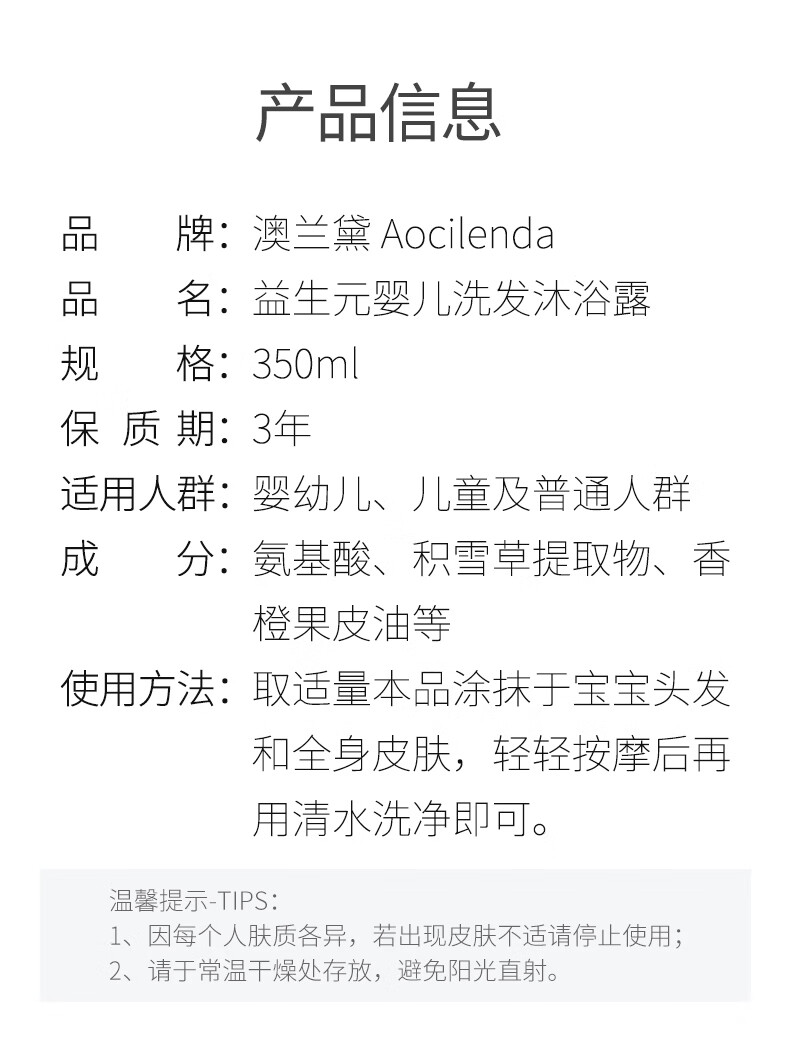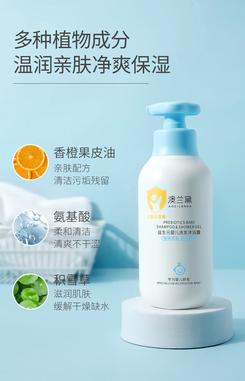 澳兰黛(AOCILENDA)婴儿洗发沐浴二合一儿童新生幼儿洗发水沐浴露宝宝抚触油洗头秋冬 婴儿洗发沐浴露二合一350ml