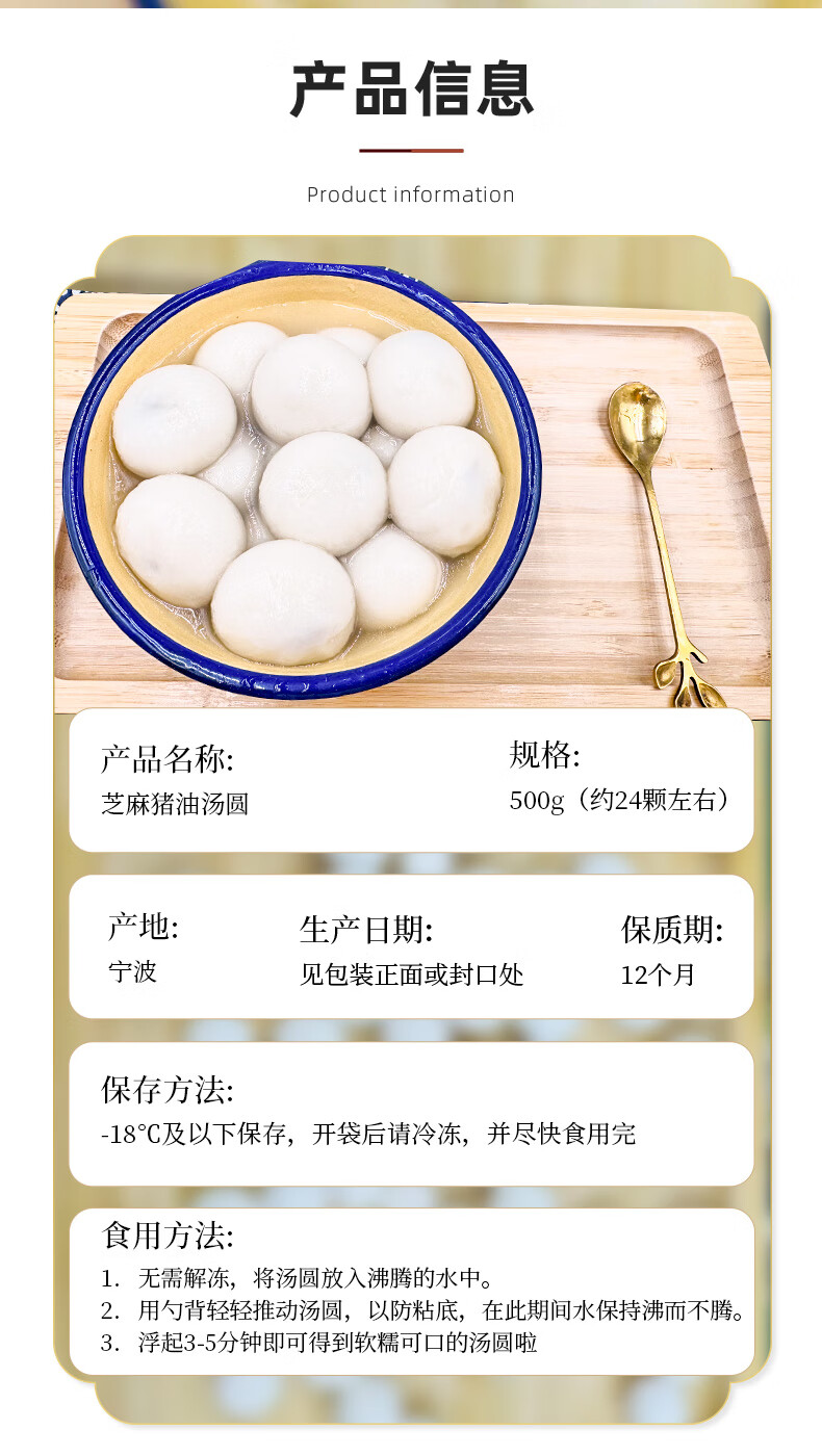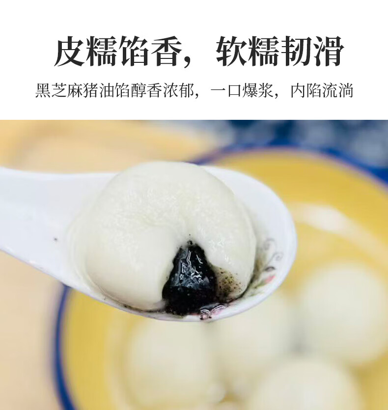 【浙一刻】正宗宁波黑芝麻猪油汤圆猪肉无馅小圆子水煮元宵大汤团 猪肉咸汤圆500g