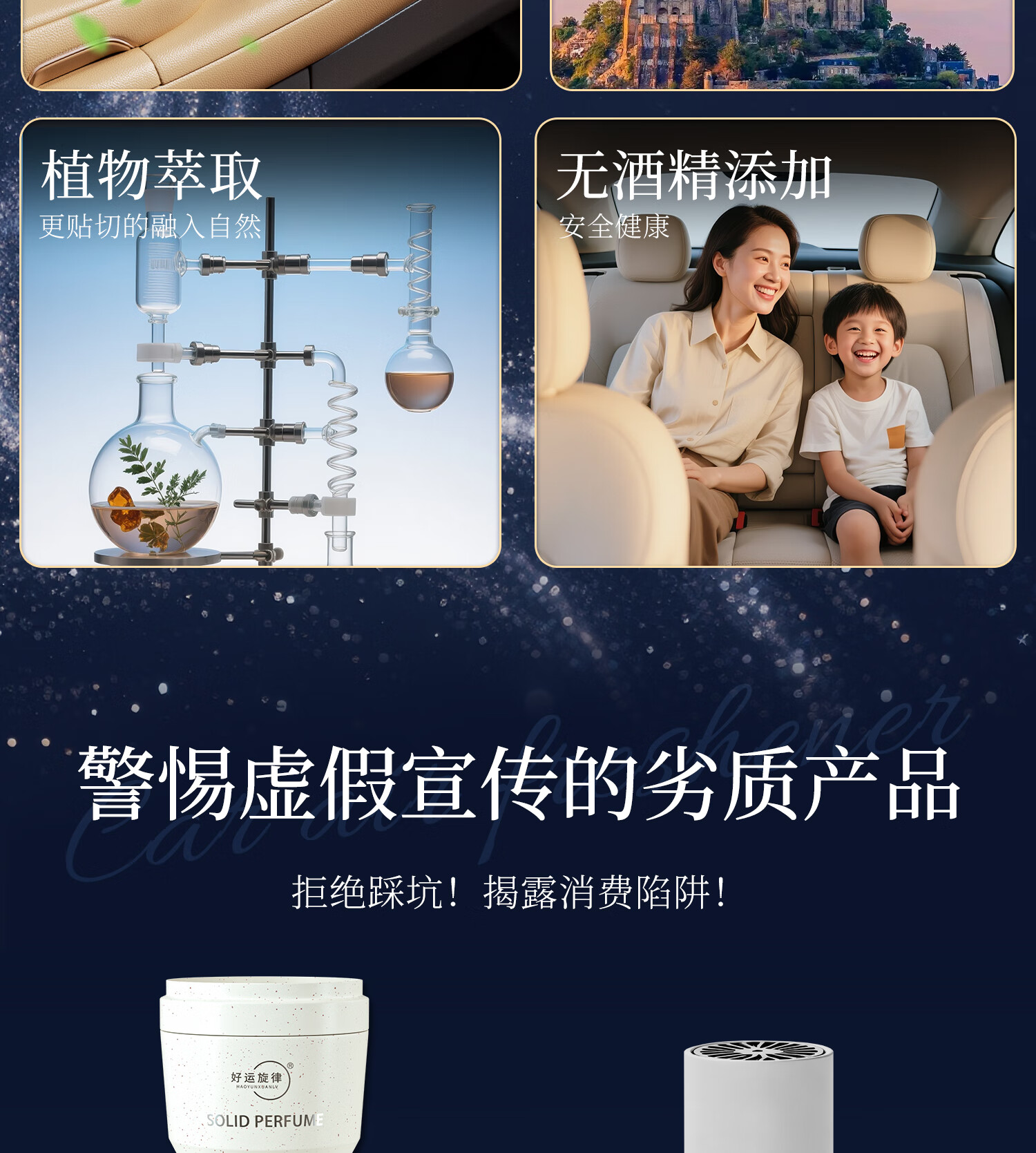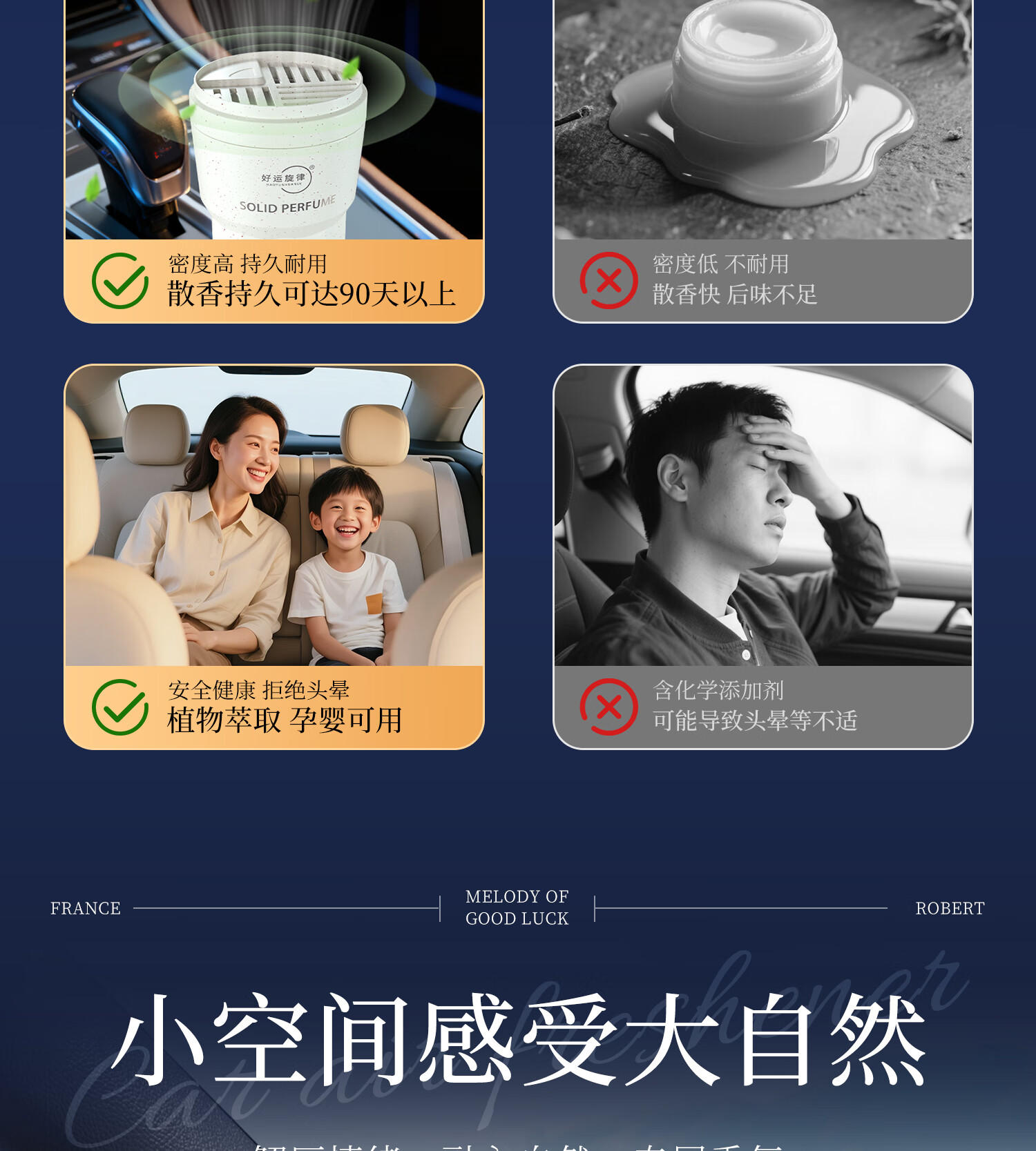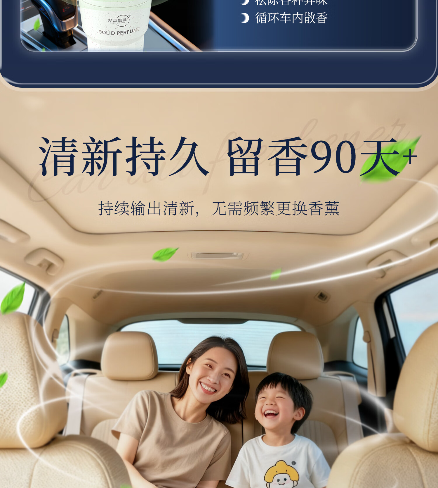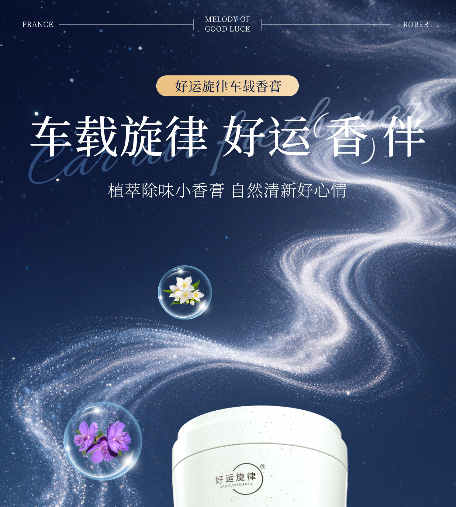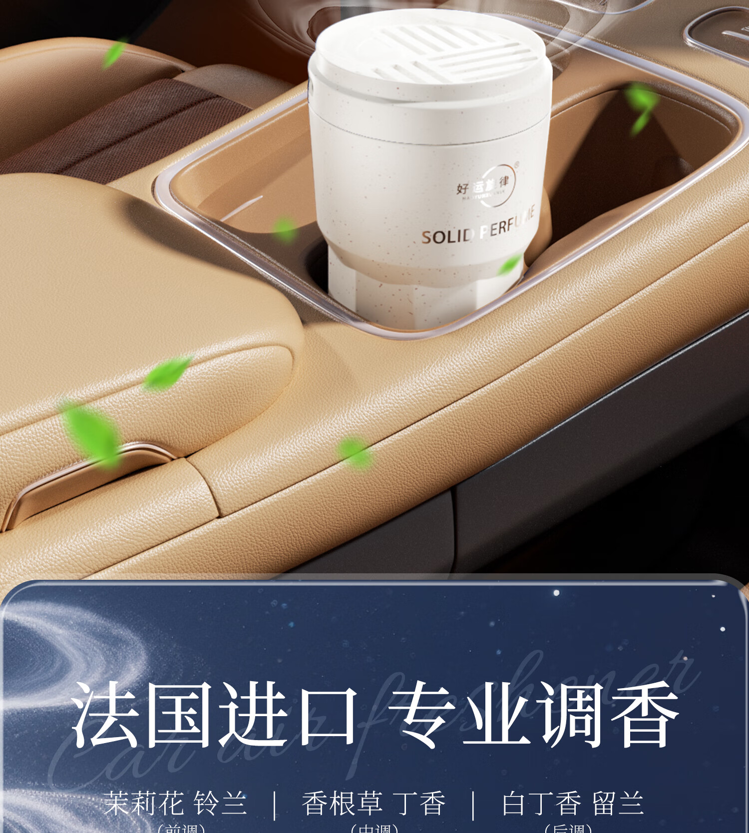好运旋律汽车固体车载香膏香水车内香薰除味净化空气2025新品国潮风 金枝玉叶(栀子花) +东方木韵(沉香)