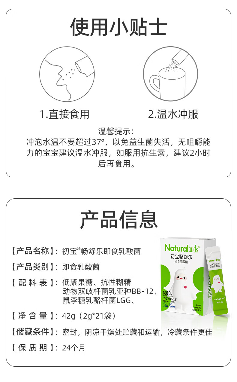 初宝畅舒乐益生菌科汉森明星BB12+LGG肠道益生菌宝宝儿童幼儿粉剂 80亿21条1盒装(送10条共31条) 42g*1盒