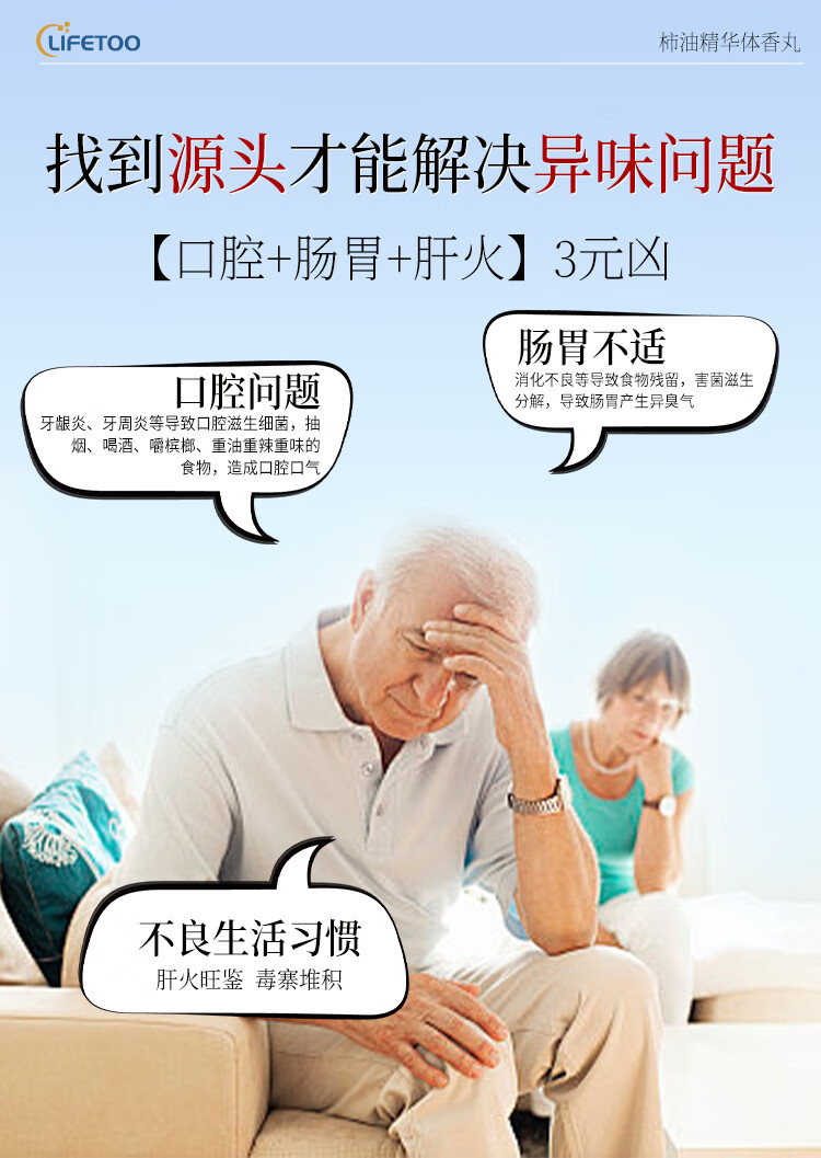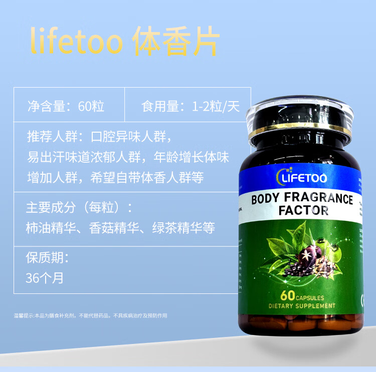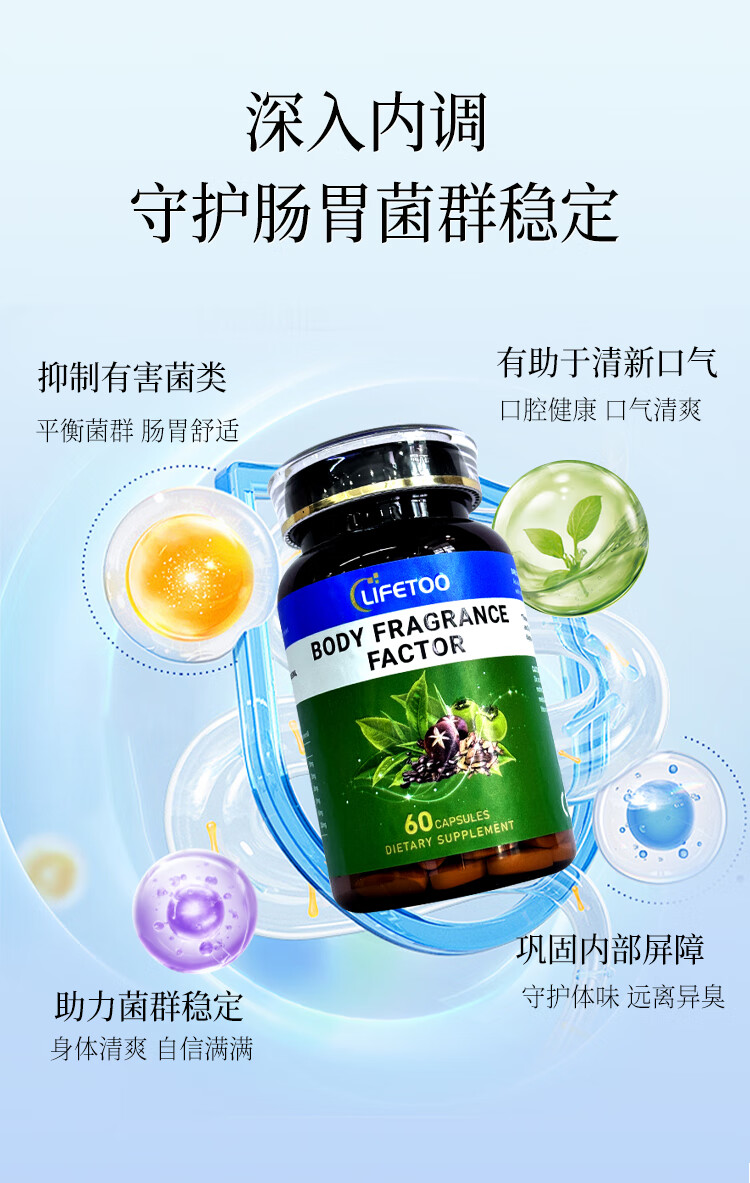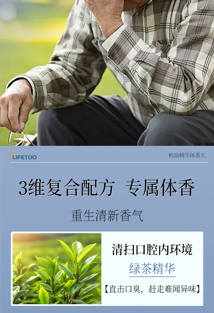 lifetoo柿油香体丸内调祛体味自带体香持久抑制狐臭腋臭老人味提高代谢 周期装【告别异味】 60粒*3瓶
