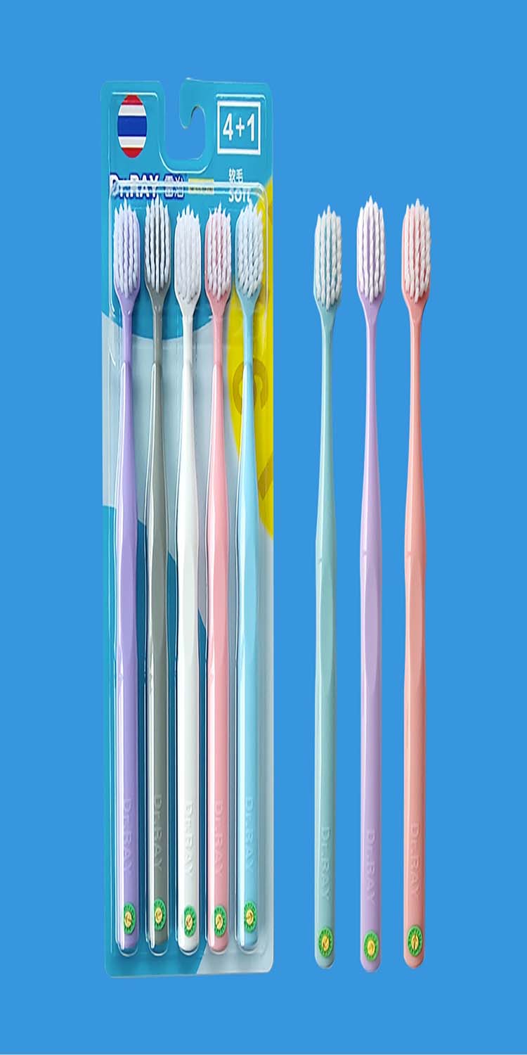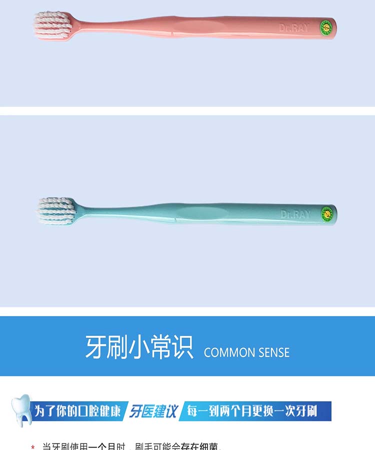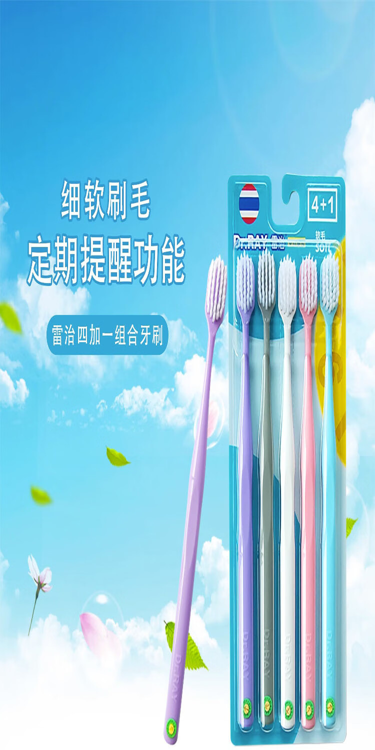 雷治(Dr.RAY)小宽头牙刷软细毛小头小清新学生牙刷五种颜色清洁牙渍 家庭装牙刷2盒(D20) 10支