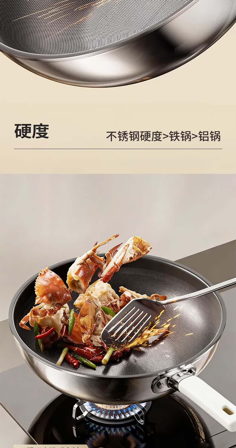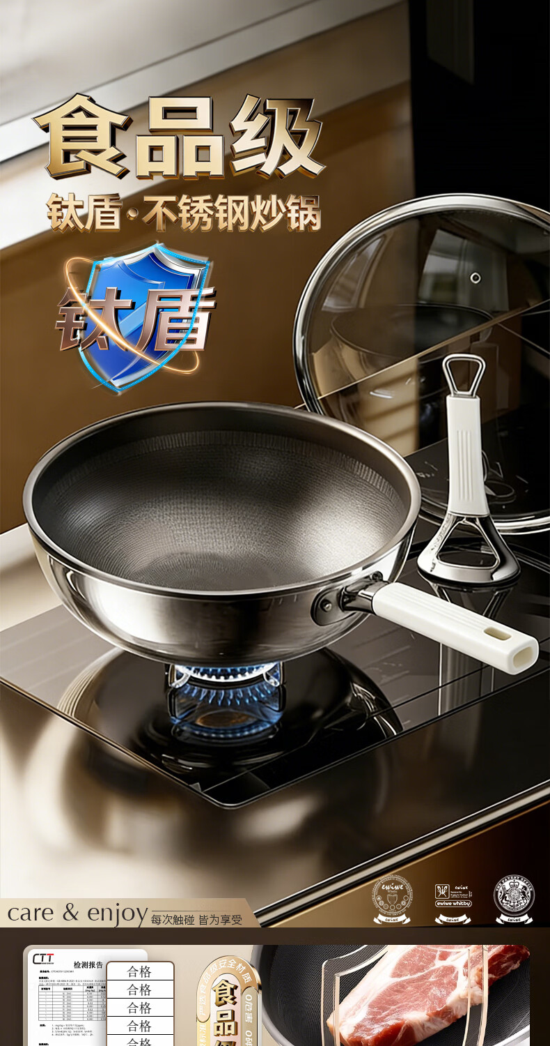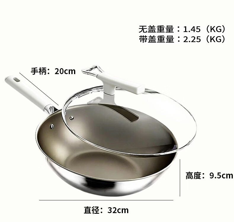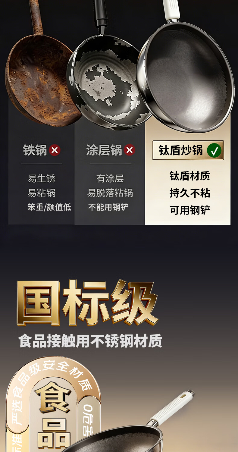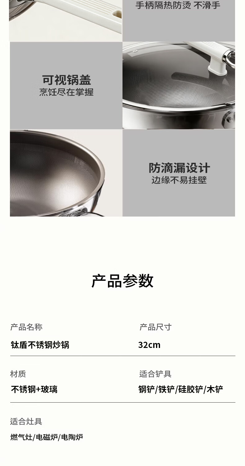 STABURG炒锅不粘锅平底锅家用炒菜锅不锈钢锅无涂层不粘煎锅纯钛盾电磁炉 国标食品级不锈钢/国标一级耐磨/国标级不粘性能 32cm