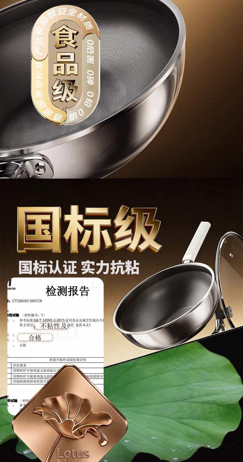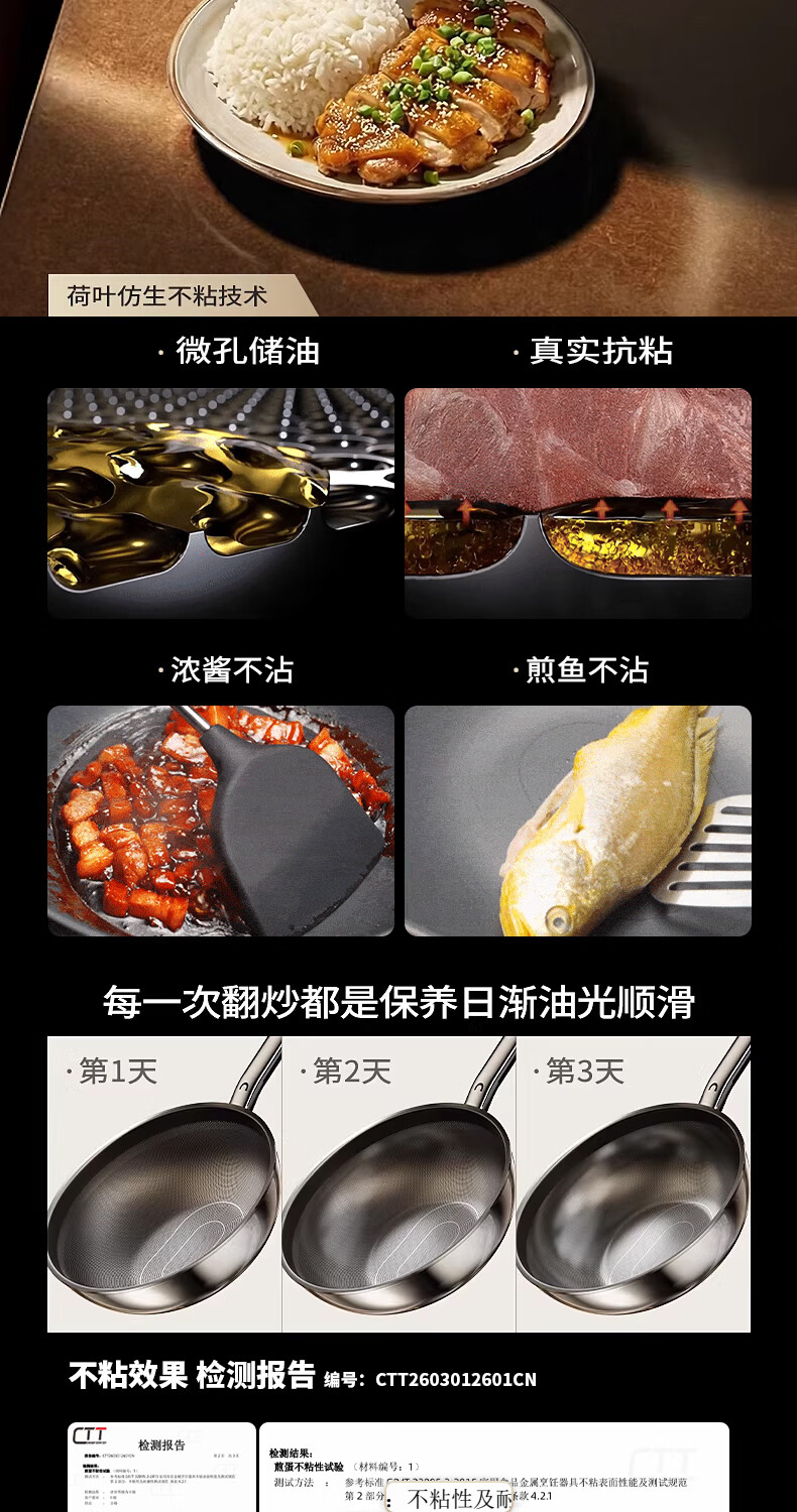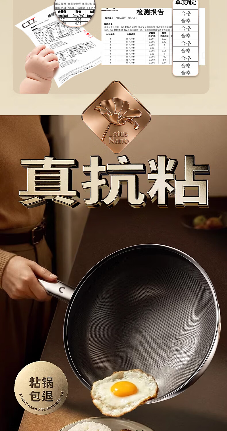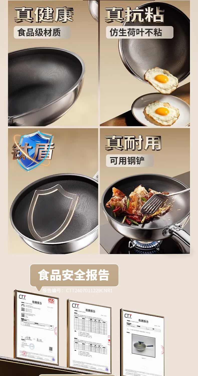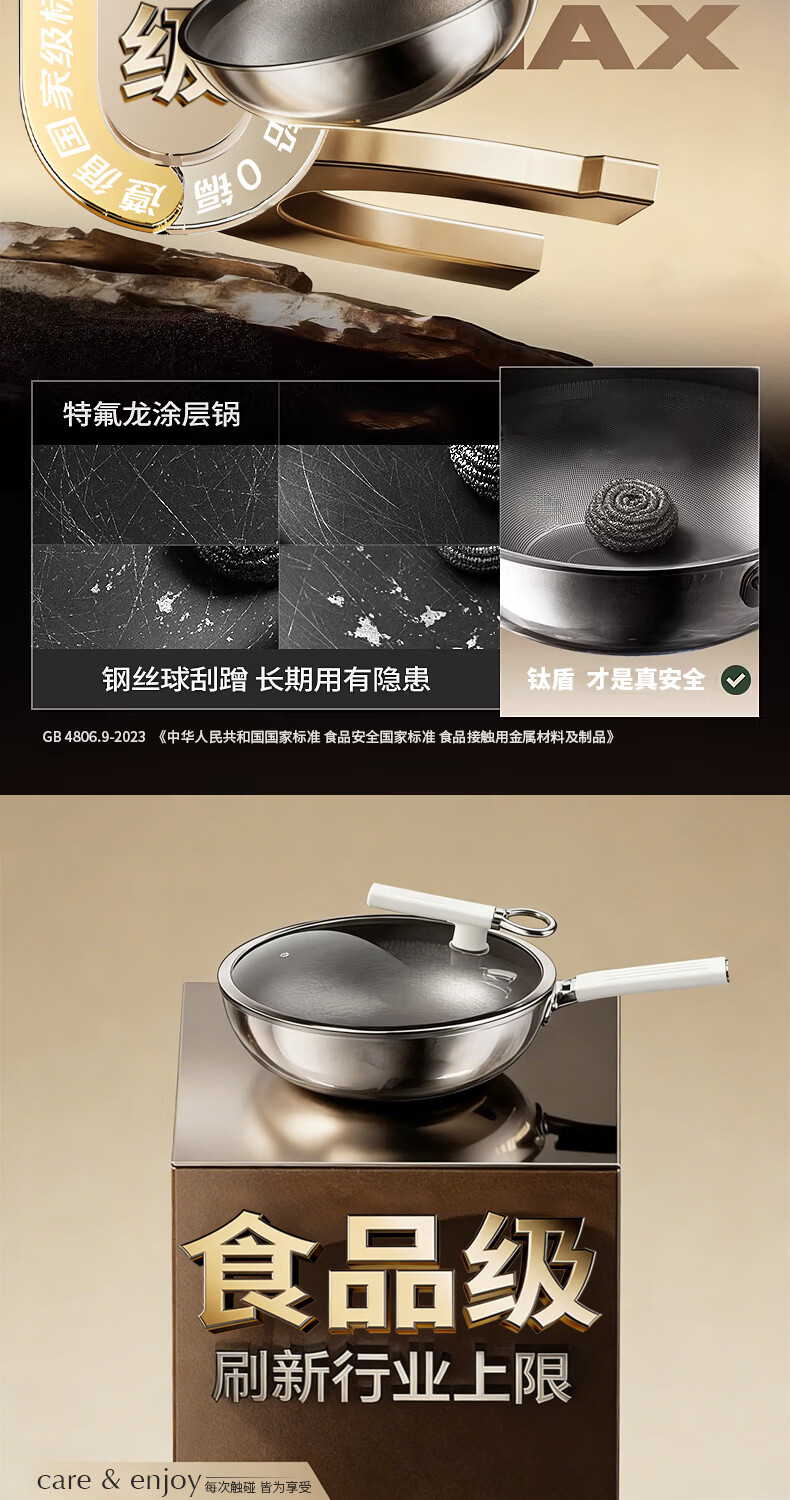 STABURG炒锅不粘锅平底锅家用炒菜锅不锈钢锅无涂层不粘煎锅纯钛盾电磁炉 国标食品级不锈钢/国标一级耐磨/国标级不粘性能 32cm