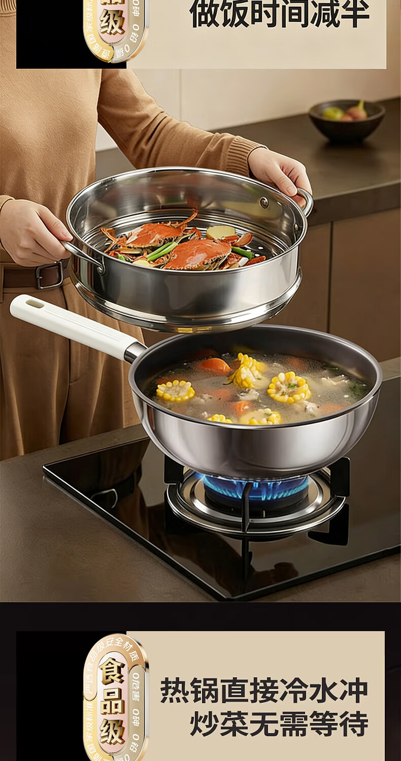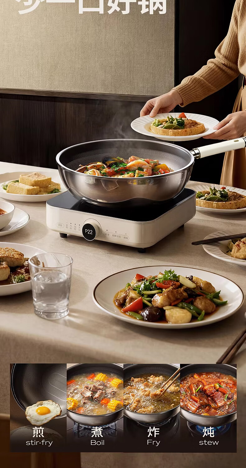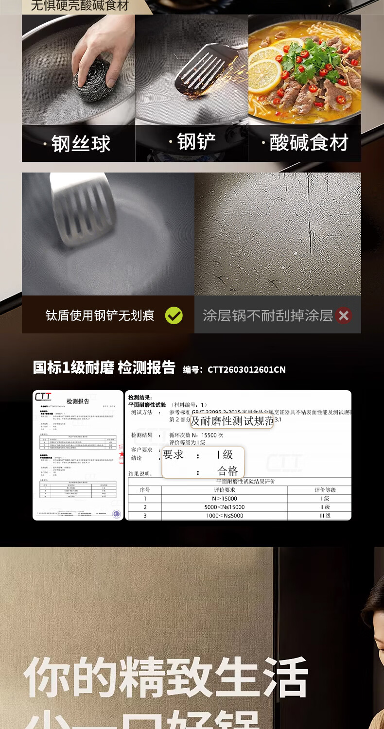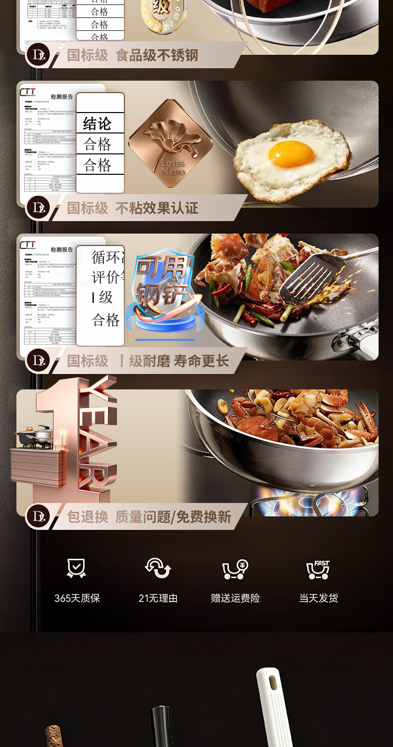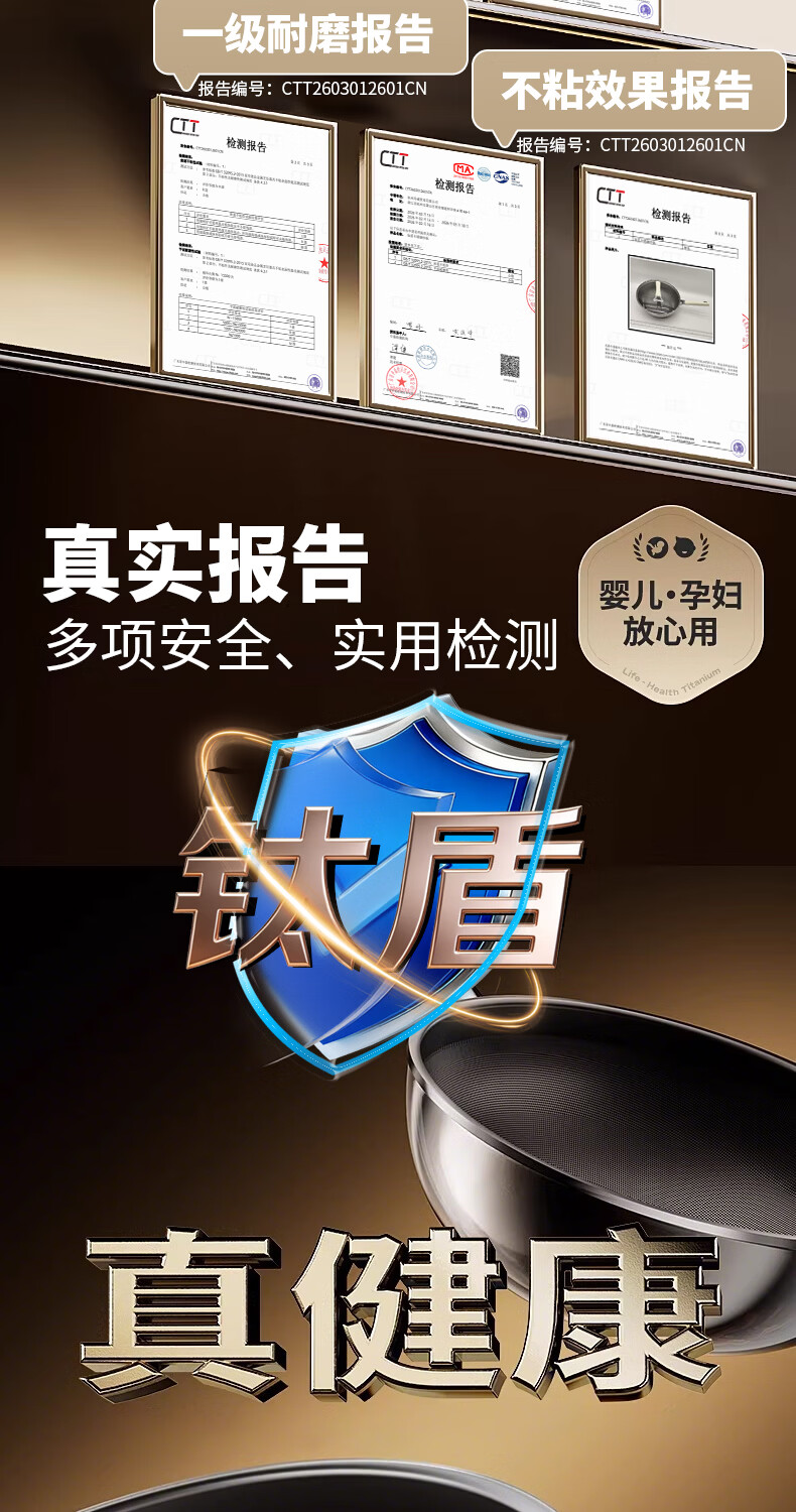 STABURG炒锅不粘锅平底锅家用炒菜锅不锈钢锅无涂层不粘煎锅纯钛盾电磁炉 国标食品级不锈钢/国标一级耐磨/国标级不粘性能 32cm