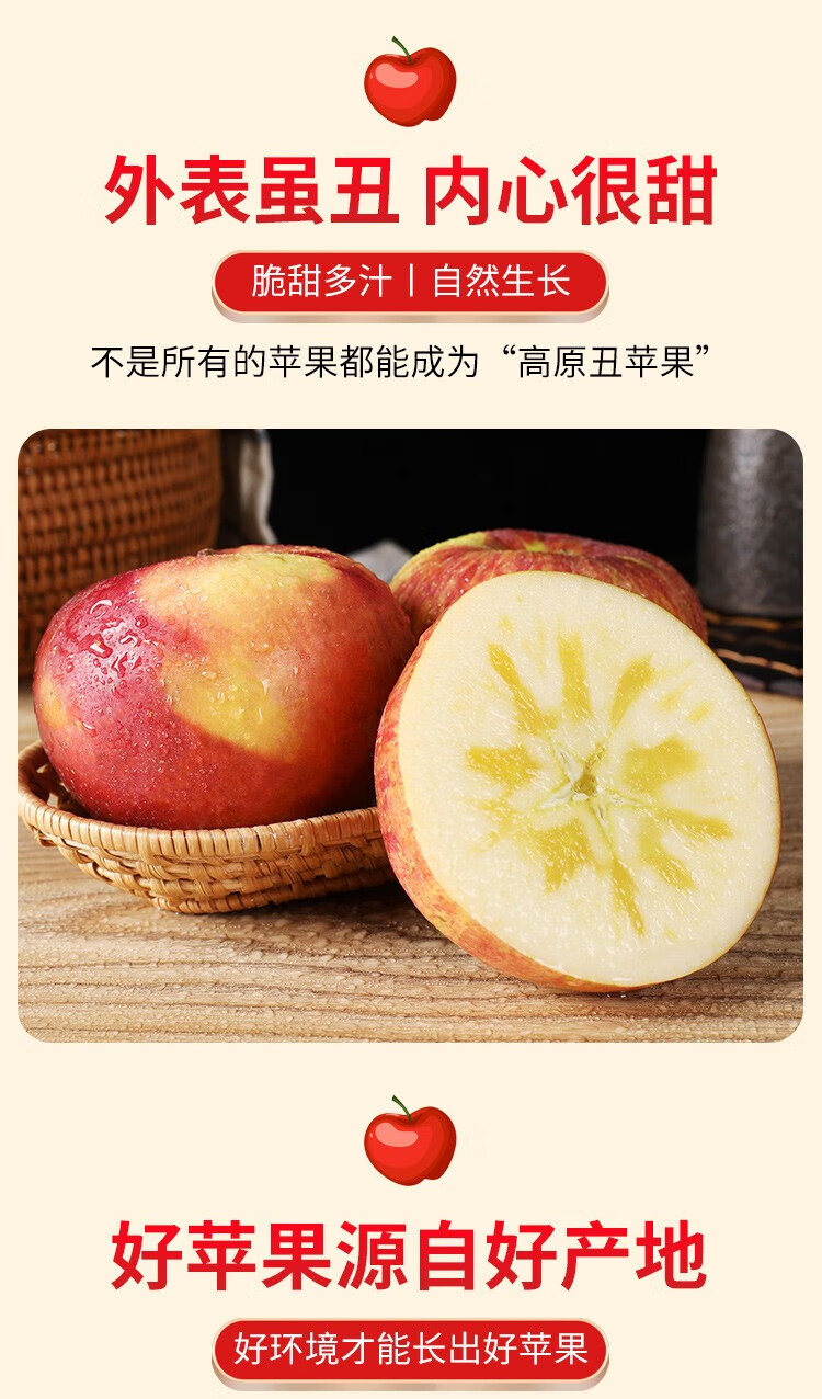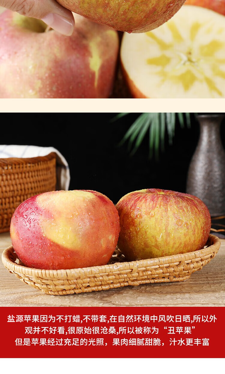 鲸咚亿农盐源冰糖心丑苹果四川大凉山糖心丑苹果脆甜新鲜水果年货礼盒 9.5-10斤大果精选带箱净重8.6斤