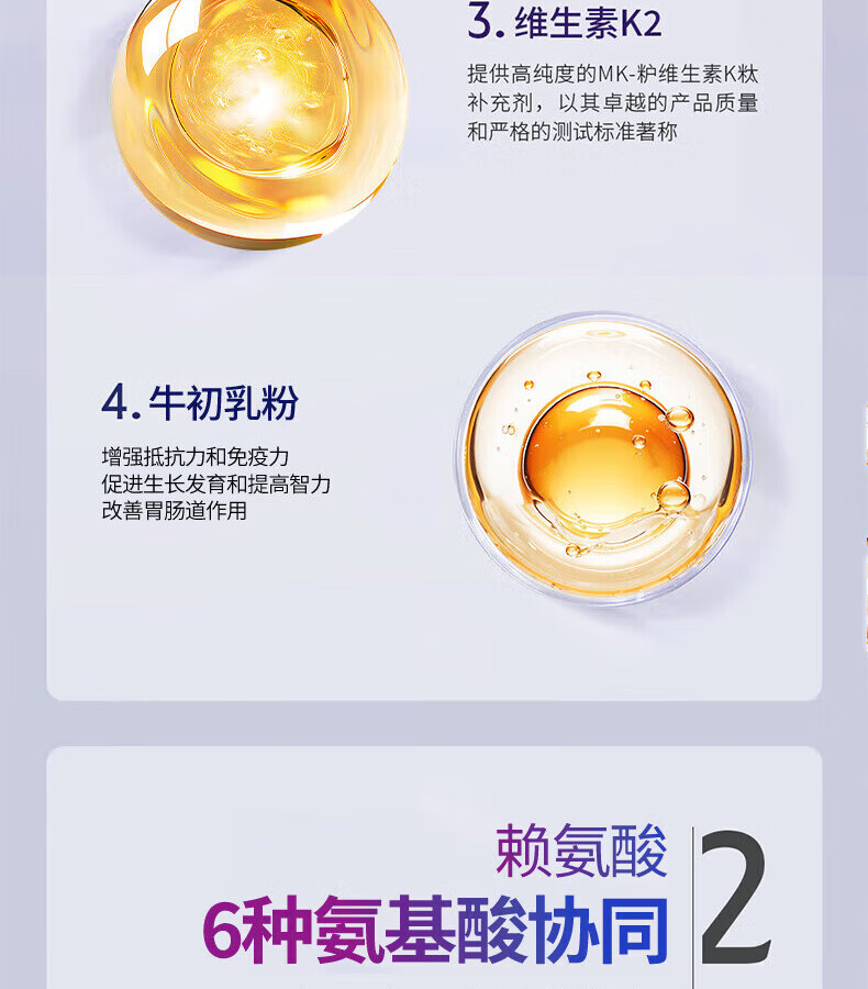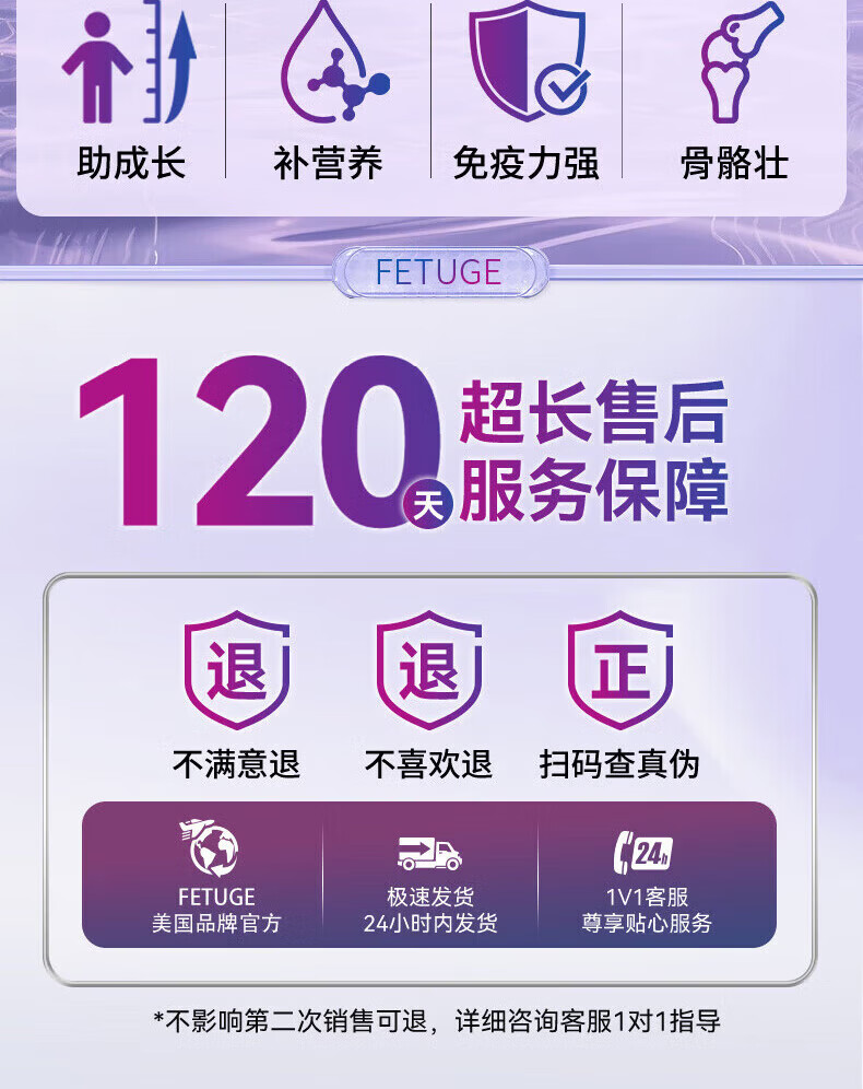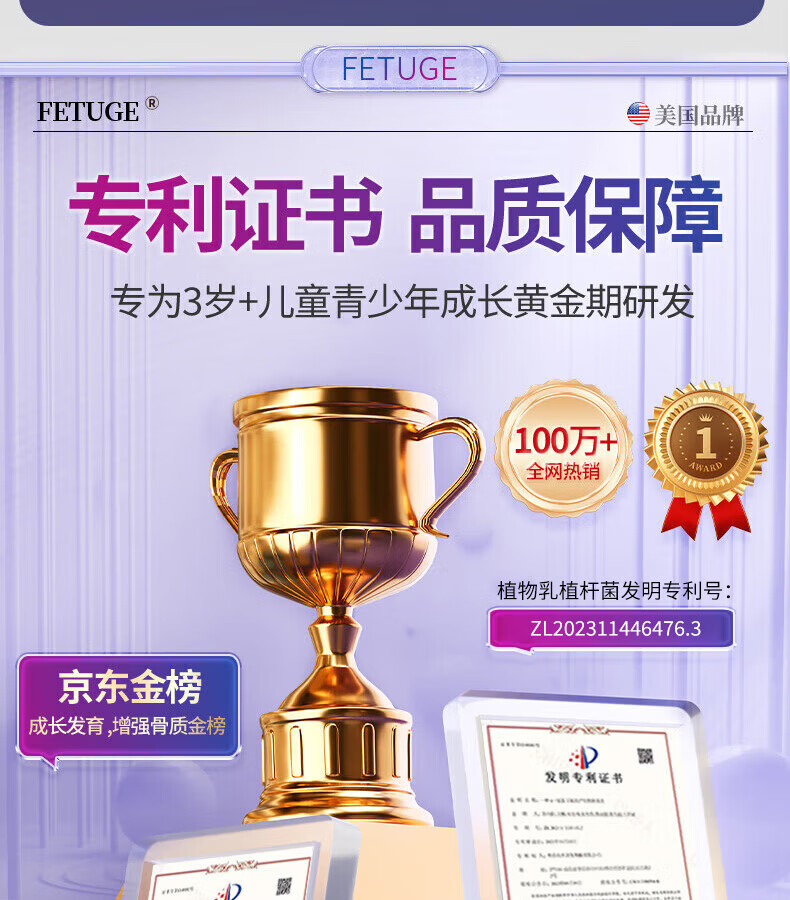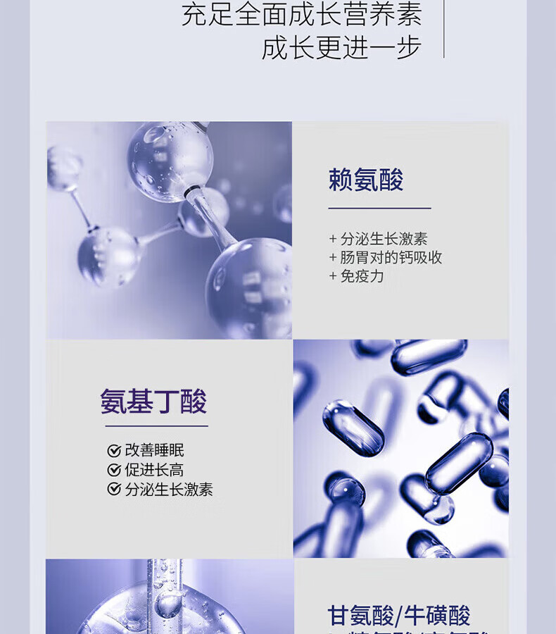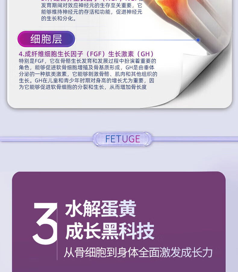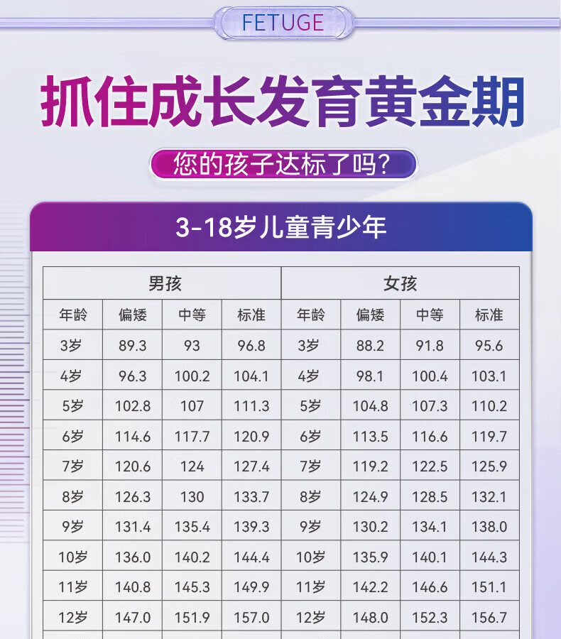 FETUGE牛初乳成长赖氨酸助长高钙铁锌氨基丁酸γ儿童青少年生长素钙片 三瓶进阶装【买二送一】 60粒*3瓶