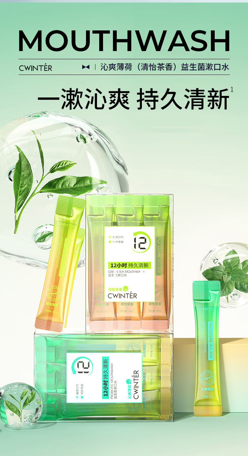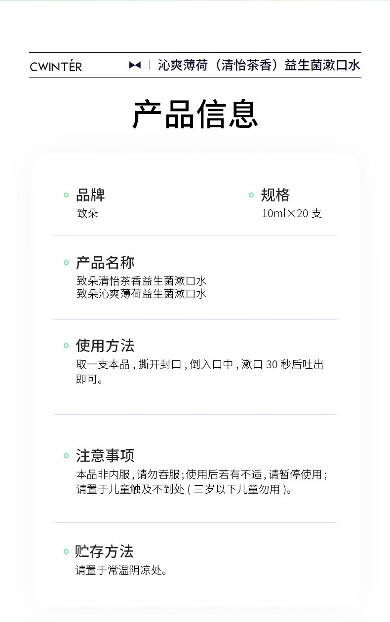 致朵(zhiduo)漱口水冰蓝薄荷劲爽清新口腔牙齿留香 茶香味+薄荷味组合装