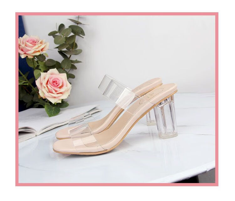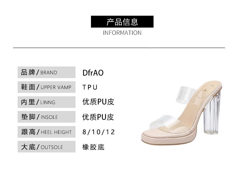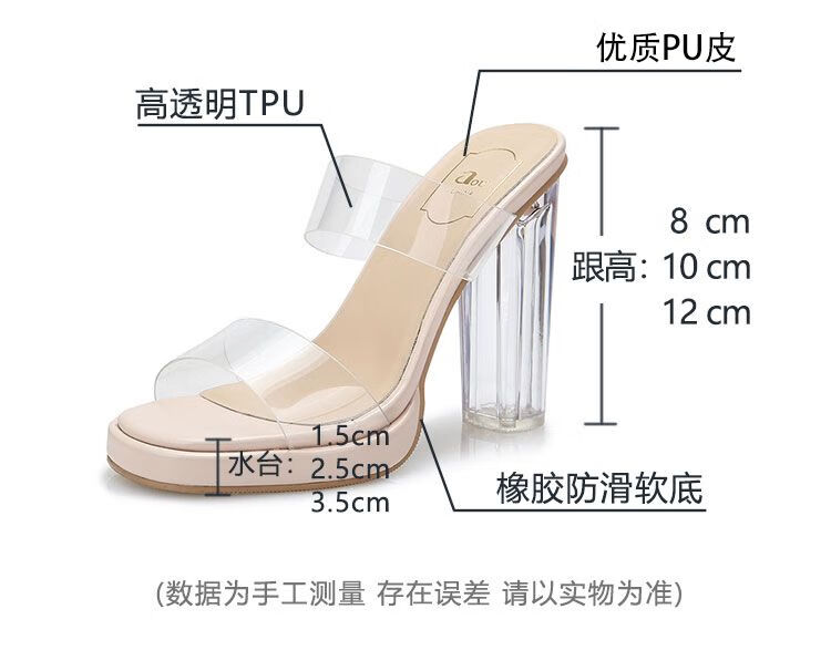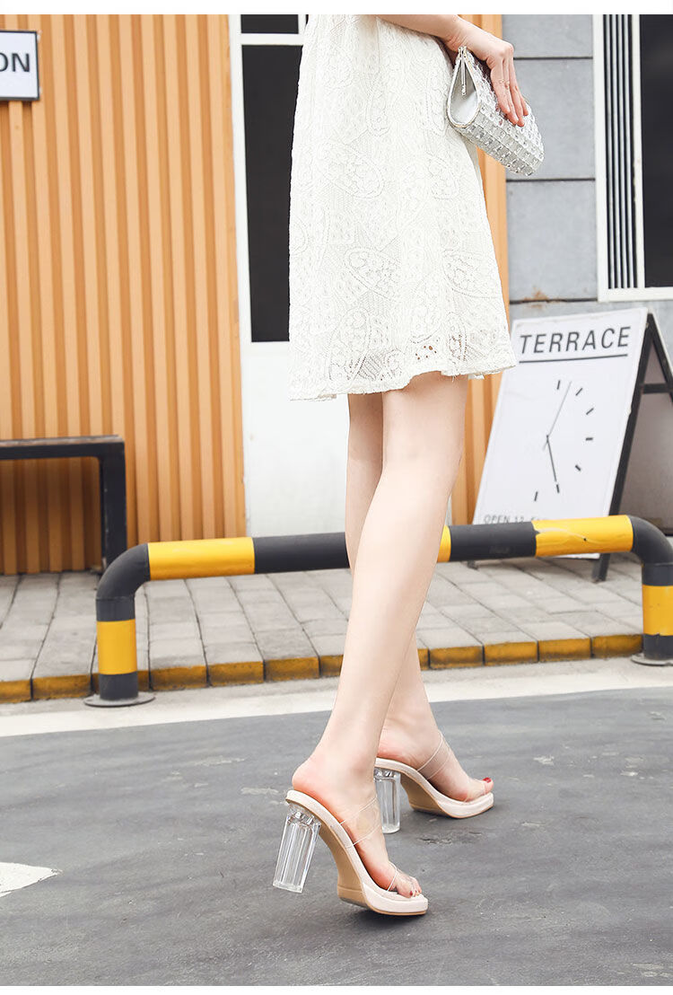 CARLOS KAYLA一字带透明水晶超高跟防水台粗跟凉拖鞋女2024年夏女士凉鞋 裸色11厘米 37