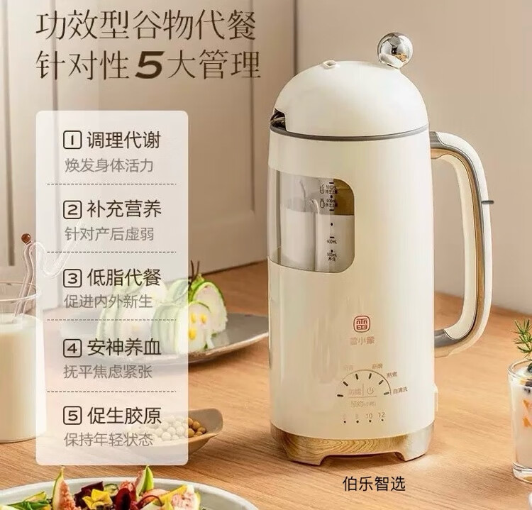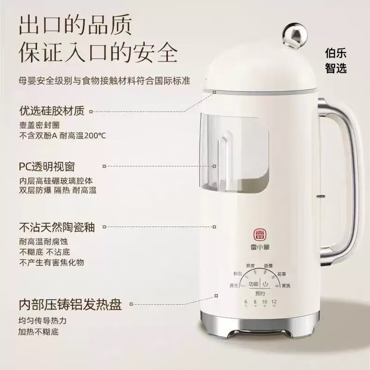 雷小蒙2025新款雷小蒙无渣破壁机豆浆机免过滤果汁机家用 全自动预约 米白色