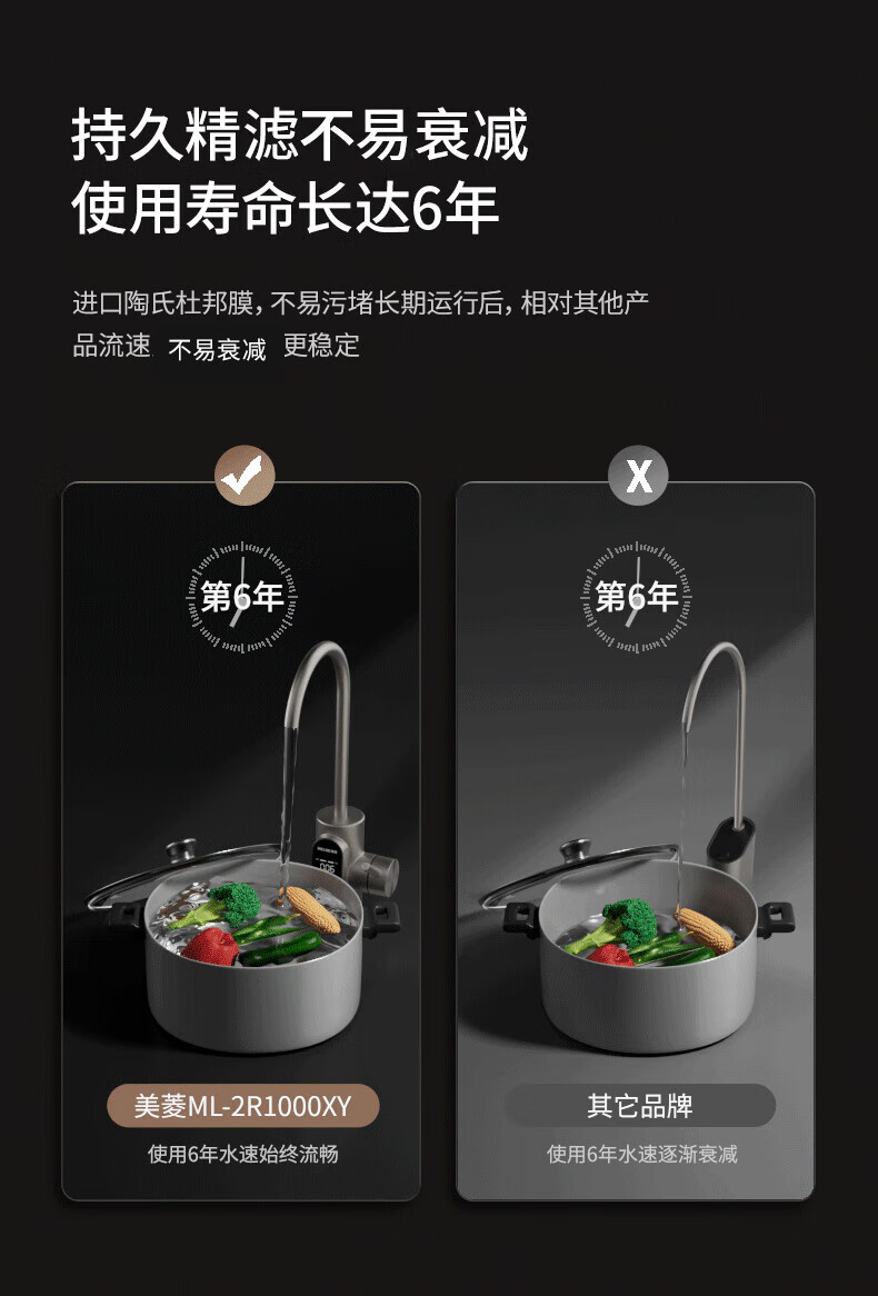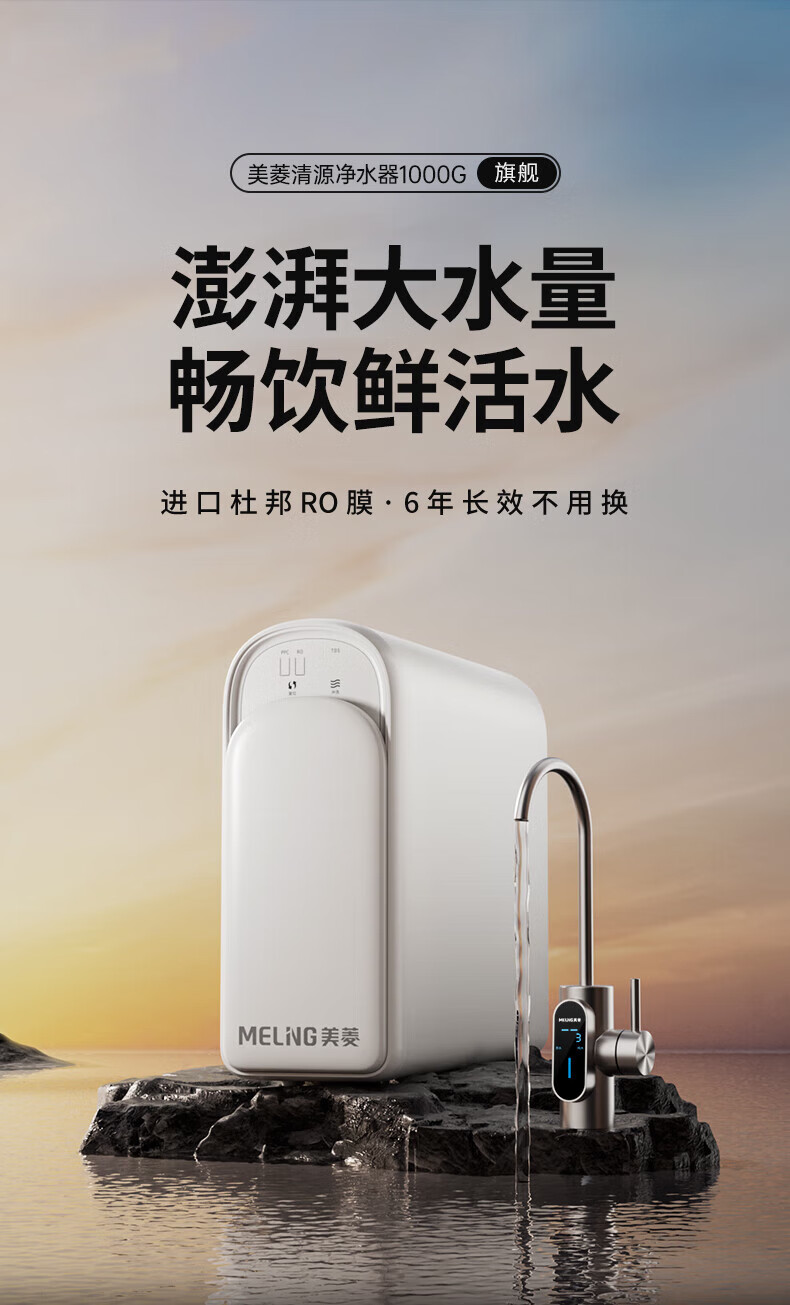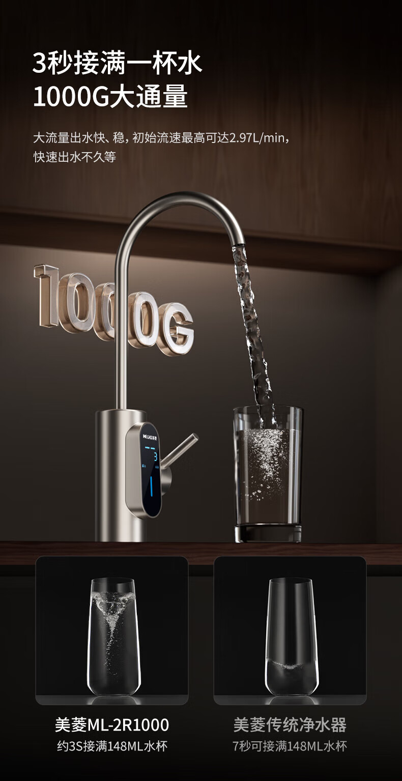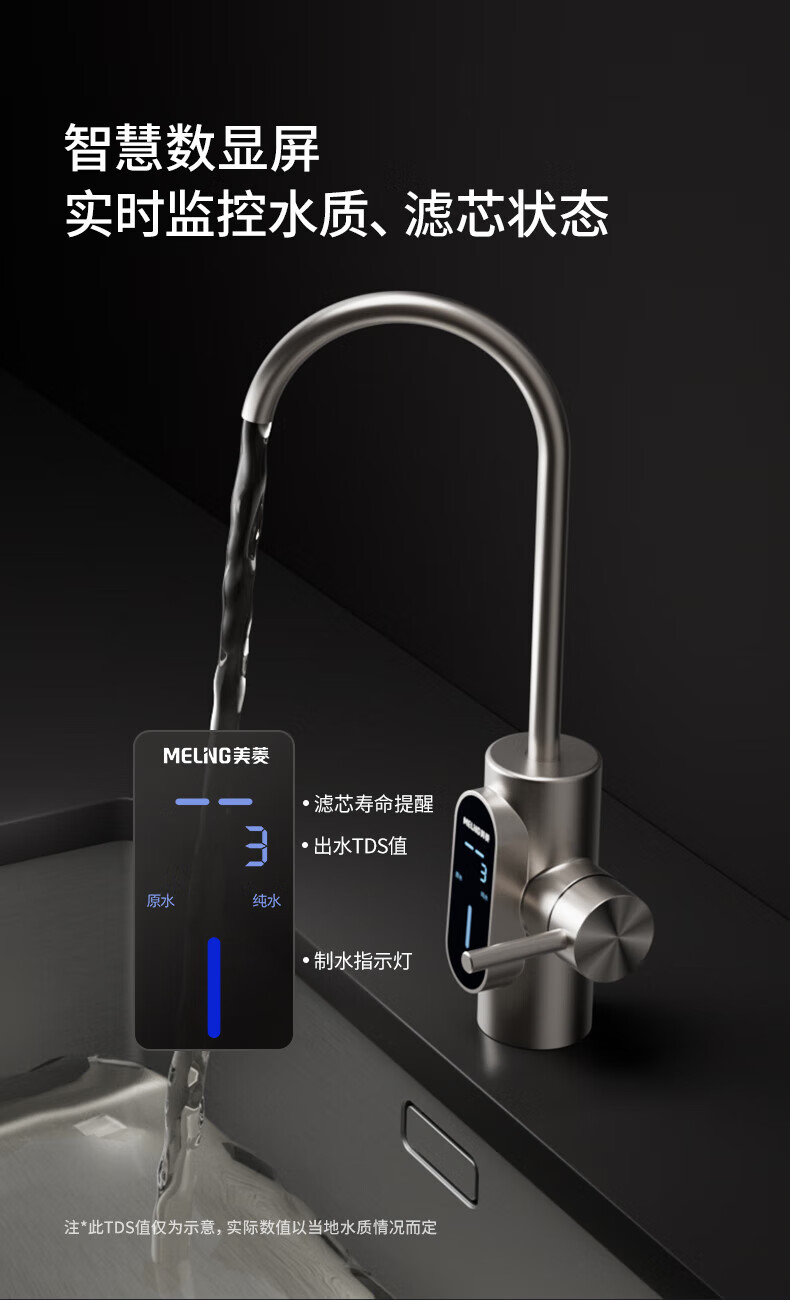 美菱(MeiLing)净水器家用净水机直饮1000GTDS数显龙头厨下式净饮机6年RO反渗透ML-2R1000XY 【TDS数显龙头】1000G-指导安装