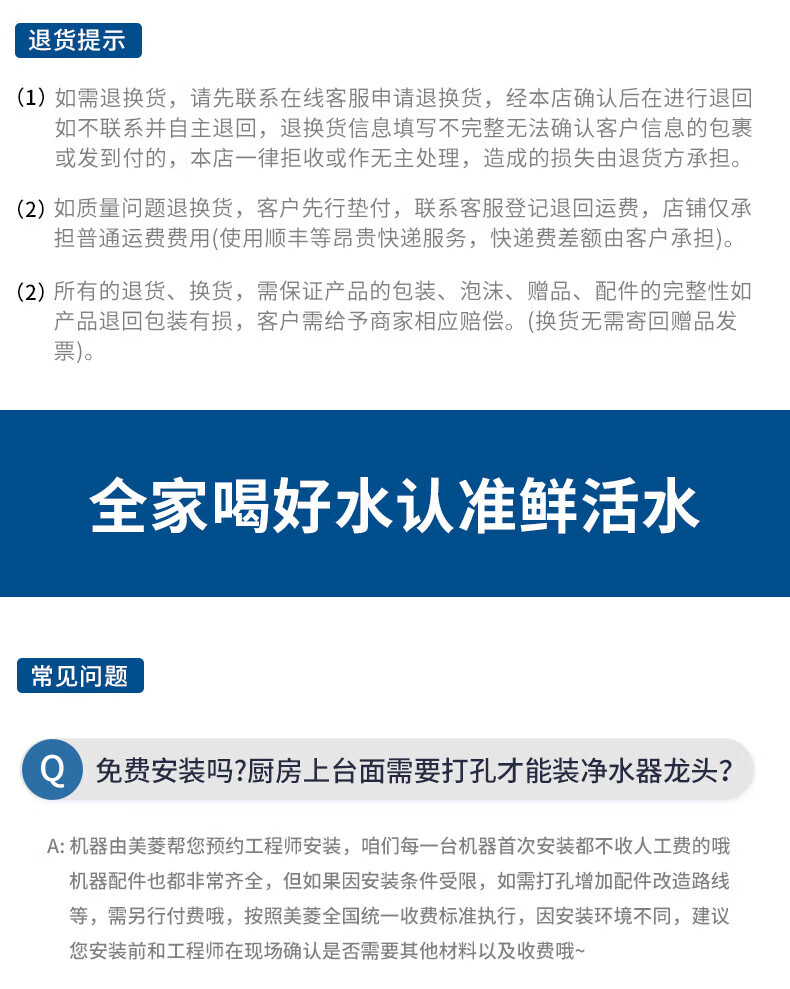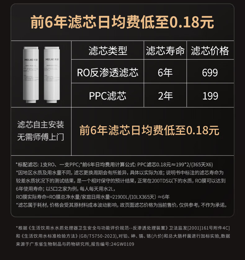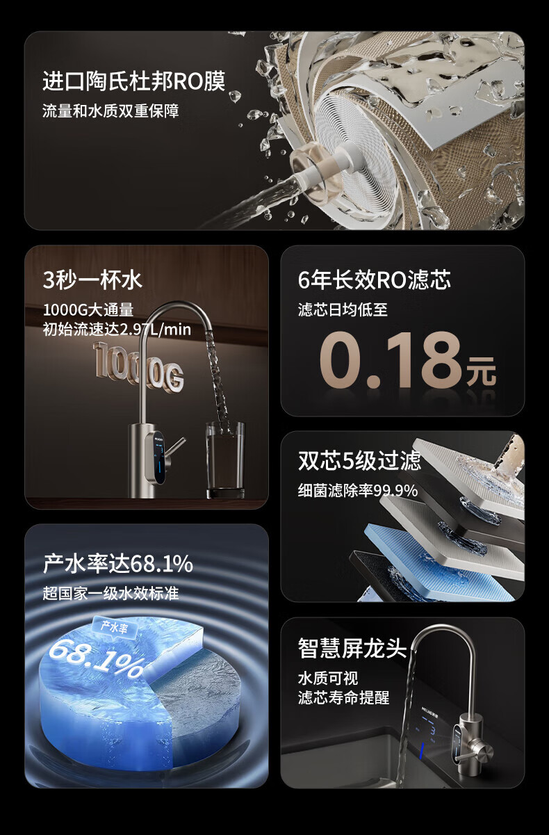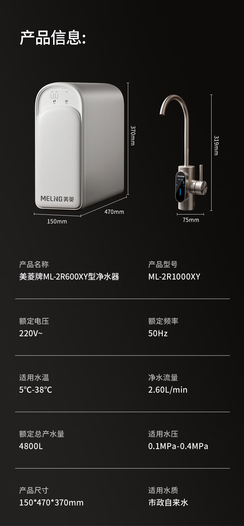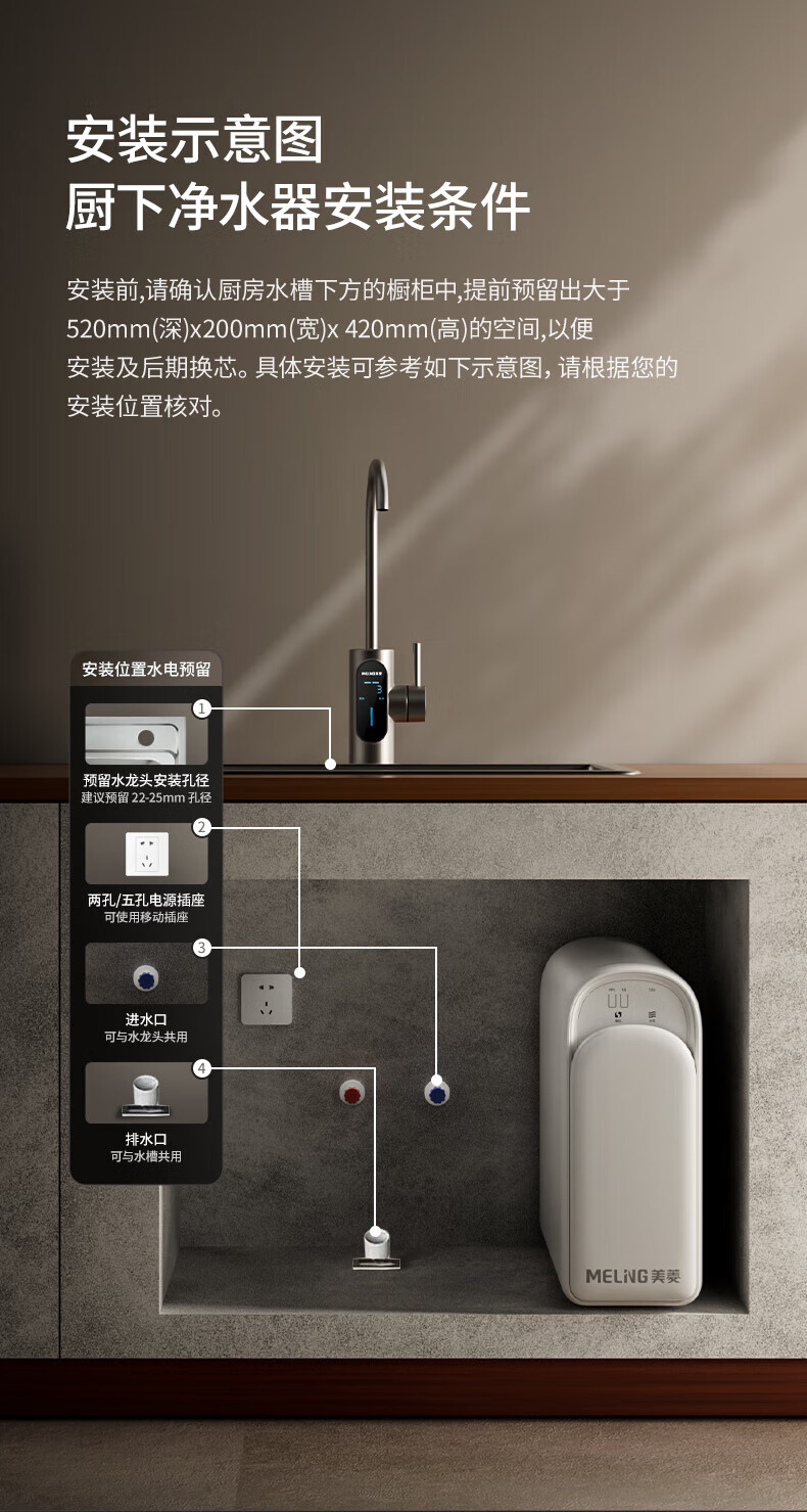 美菱(MeiLing)净水器家用净水机直饮1000GTDS数显龙头厨下式净饮机6年RO反渗透ML-2R1000XY 【TDS数显龙头】1000G-指导安装