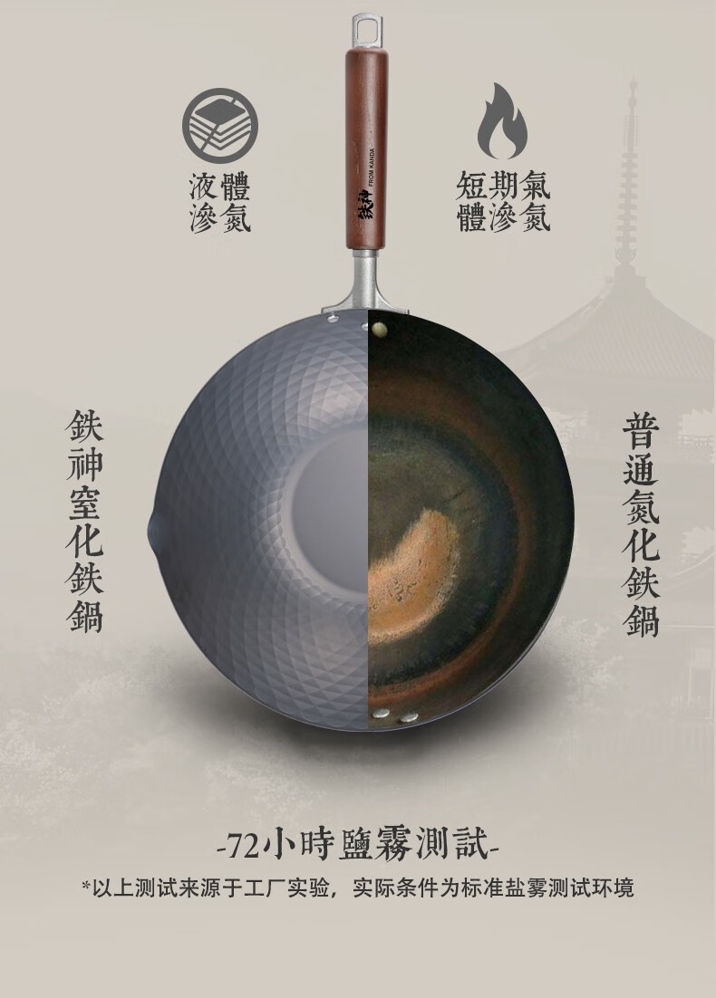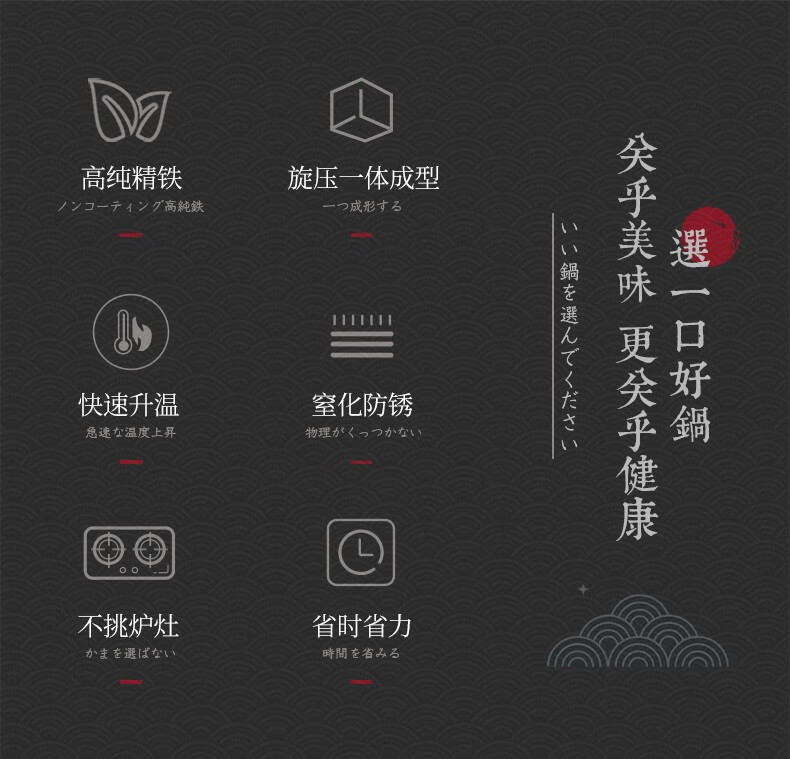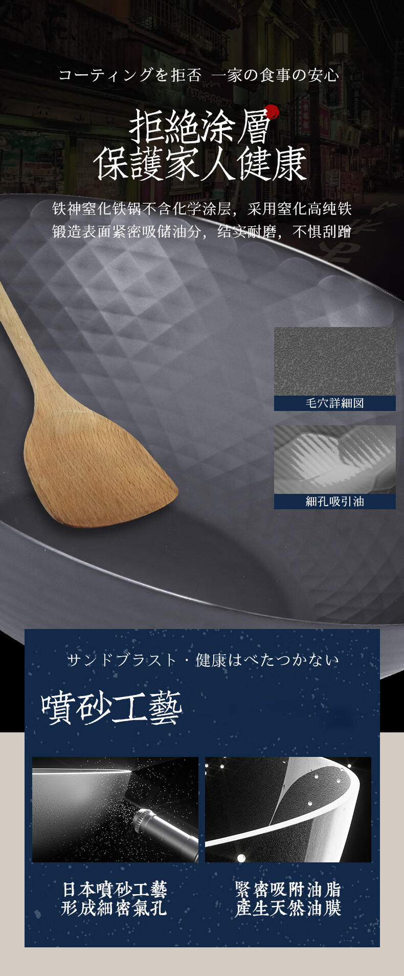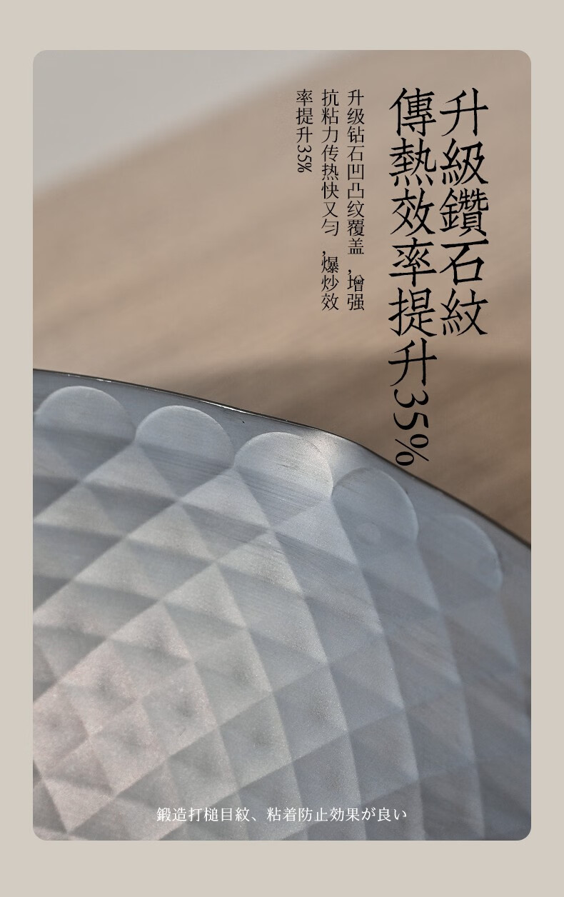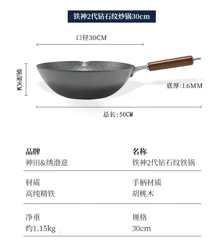 神田日本神田铁锅纯铁锅无涂层不易粘锅不易生锈平底炒锅家用炒菜锅 神田钻石纹铁锅(含玻璃盖) 33cm