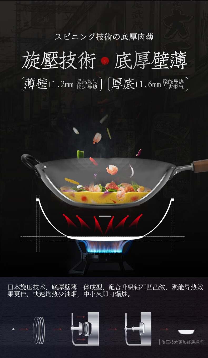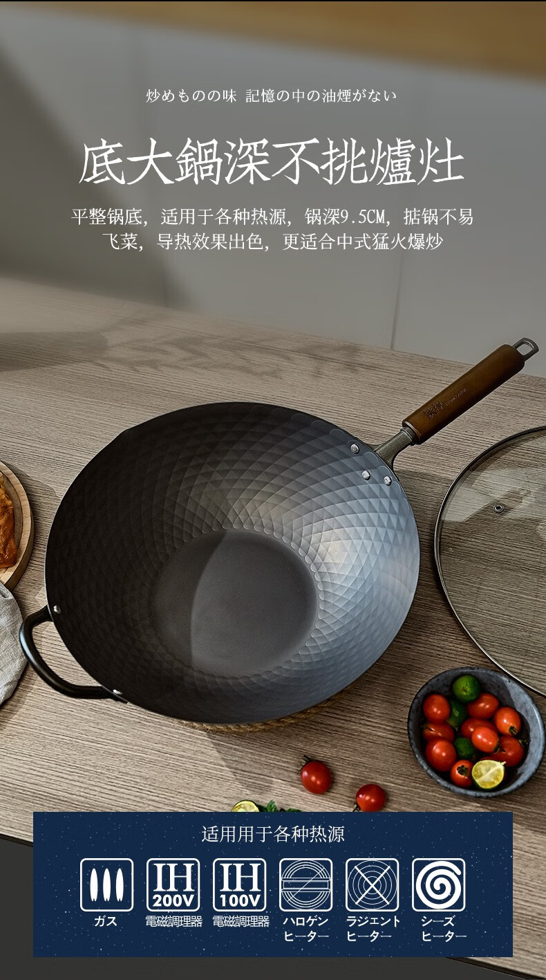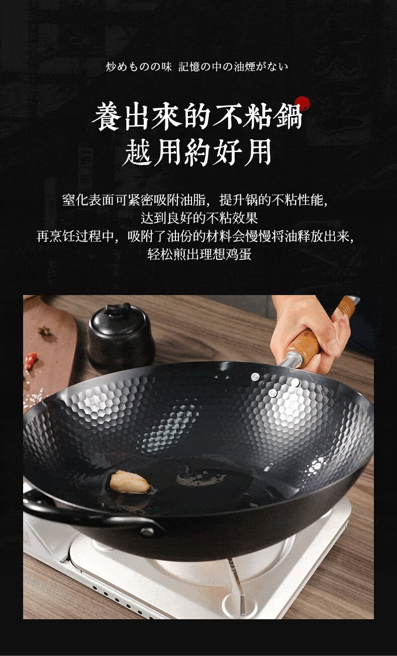 万代传铁锅章丘款炒锅不粘锅锻打无涂层老式炒锅燃气煤气灶通用圆底锅 【4-8人使用】 36cm 手工锻打古法黑锅